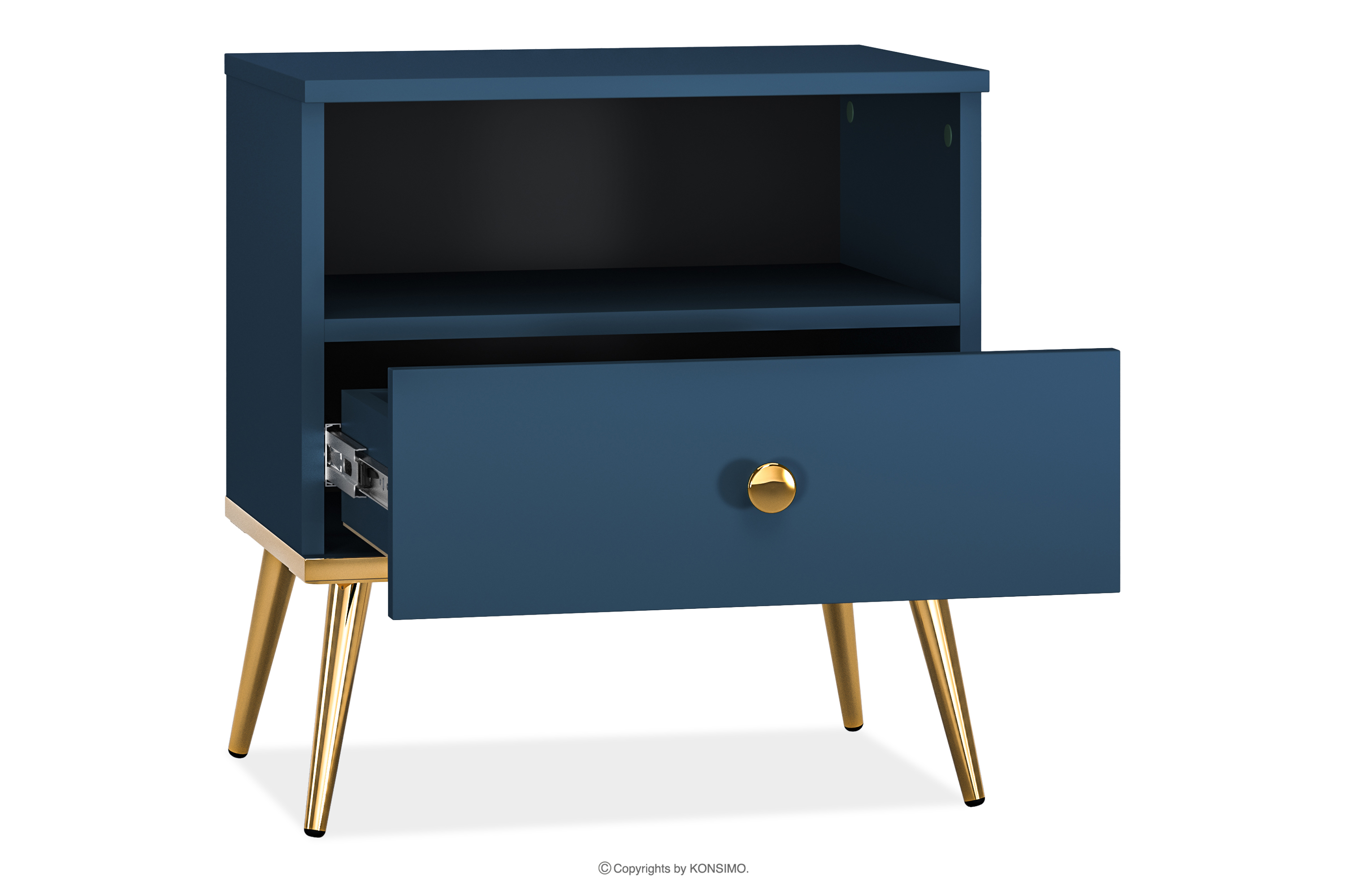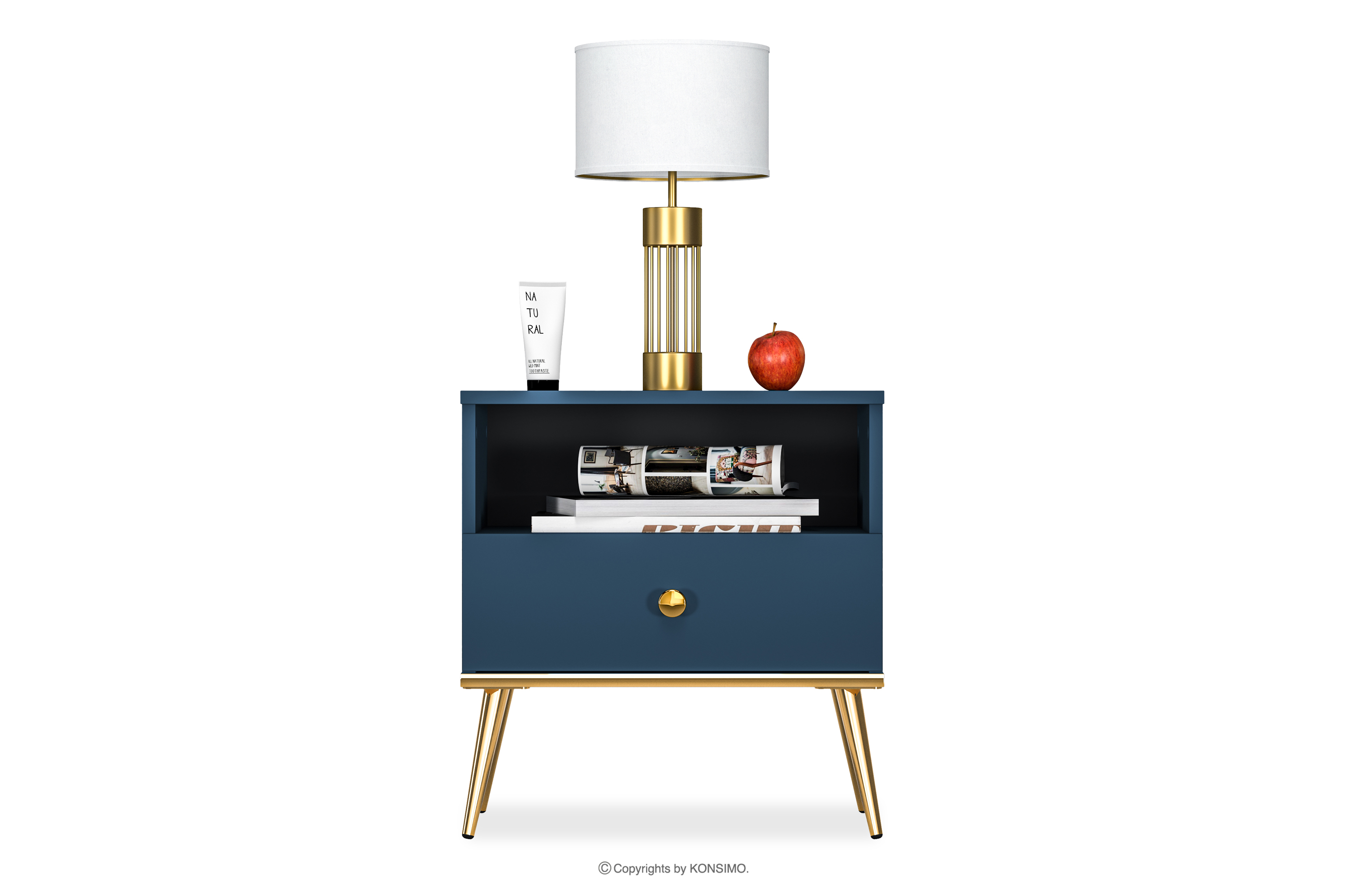 für das Produkt Nachttisch auf hohen goldfarbenen Beinen in marineblau