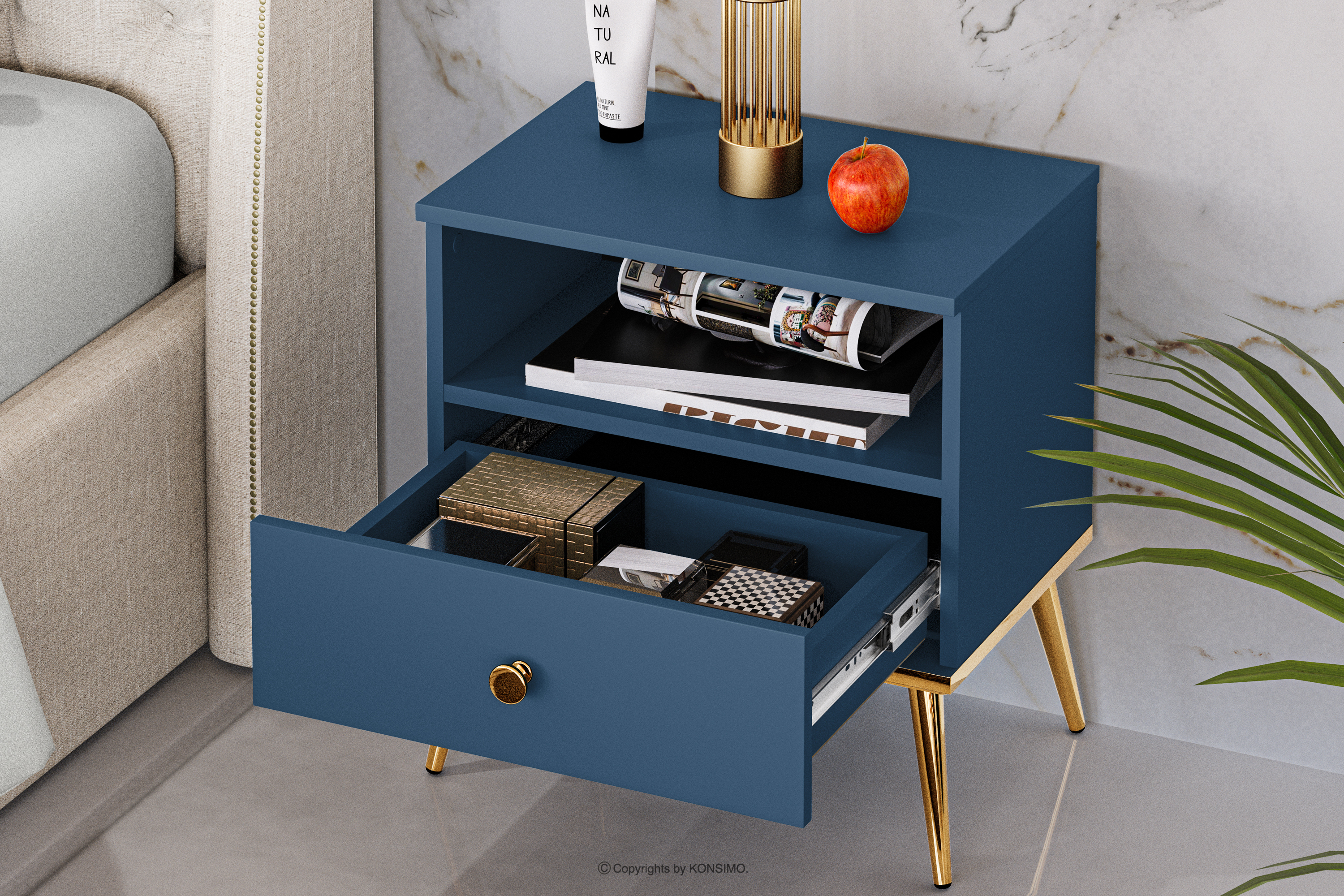 ARICIA Mehr aus der Kollektion Nachttisch auf hohen goldfarbenen Beinen in marineblau- Farbe marineblau
