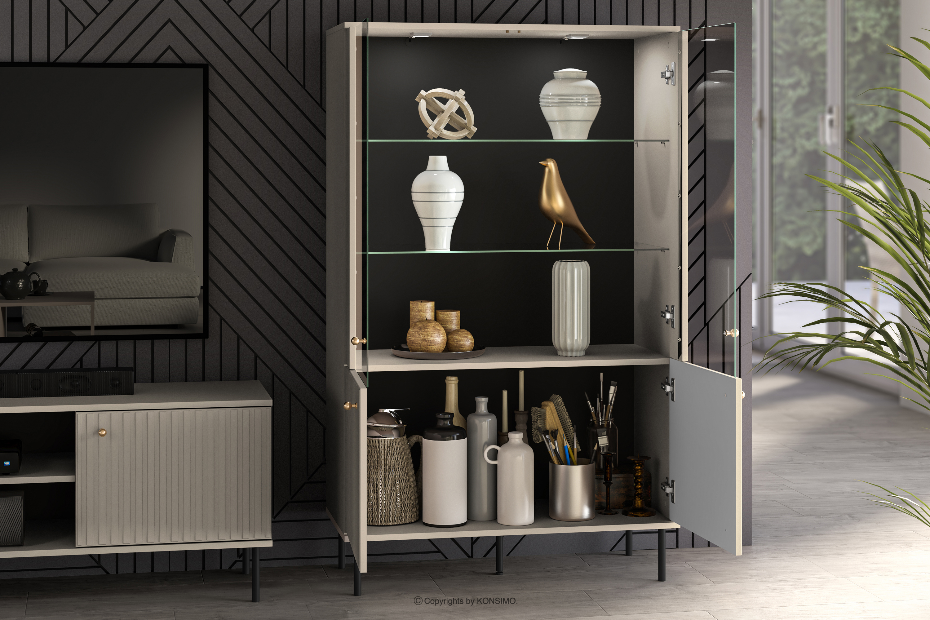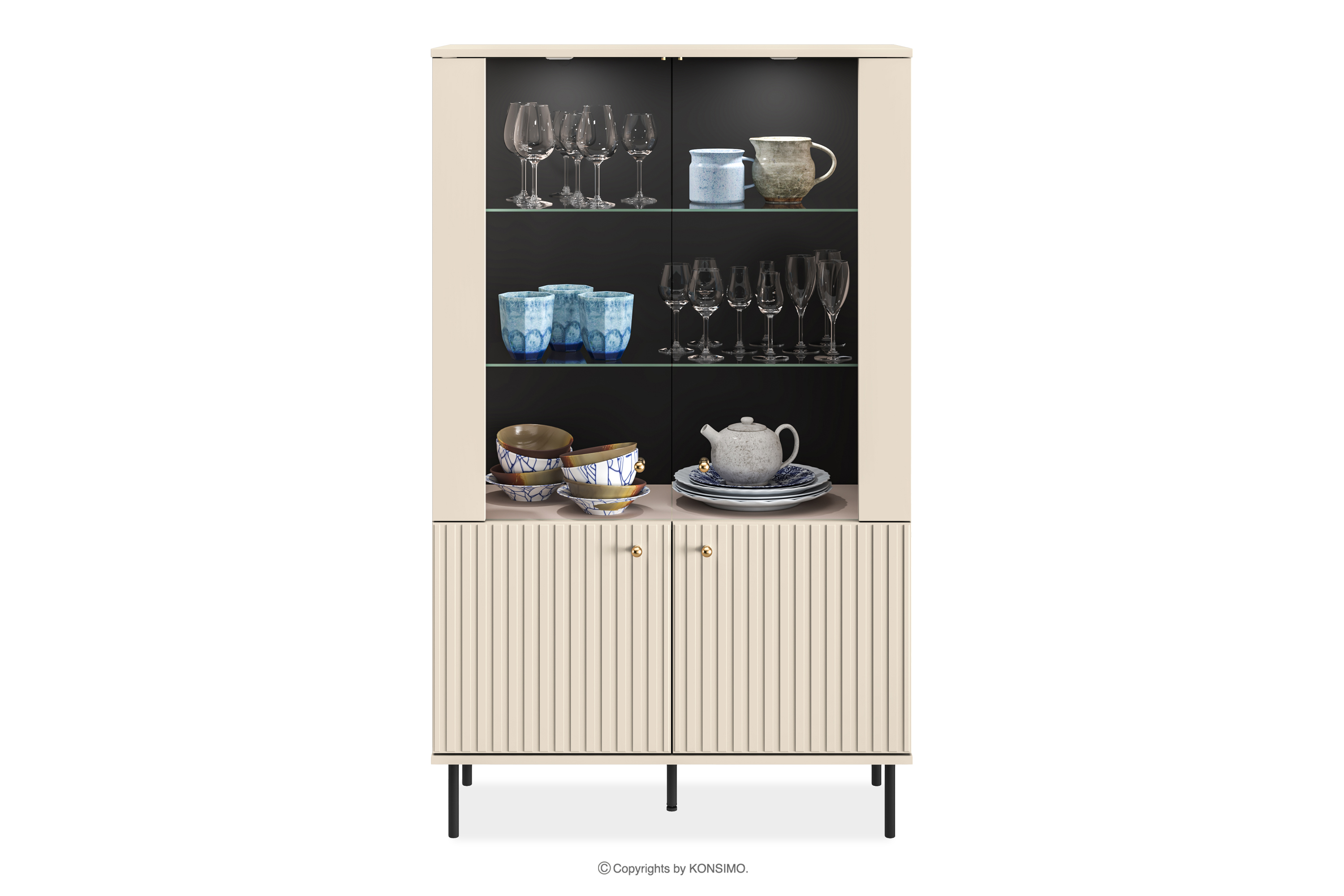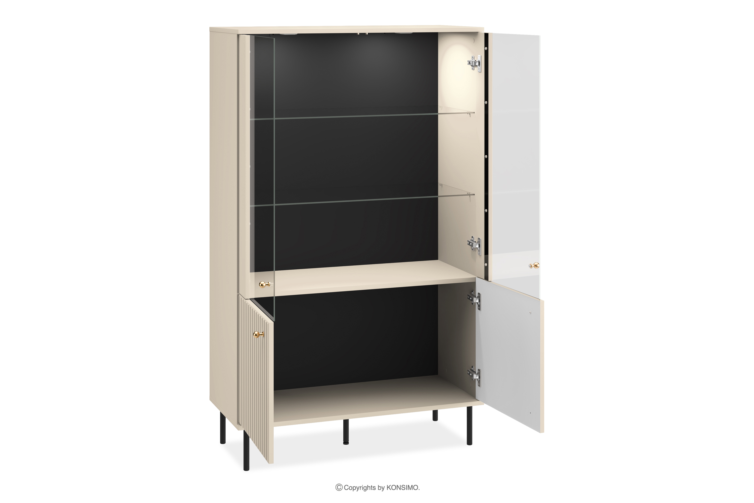 Eleganter großer Vitrinenschrank in cremefarben DROMA - Farbe Creme