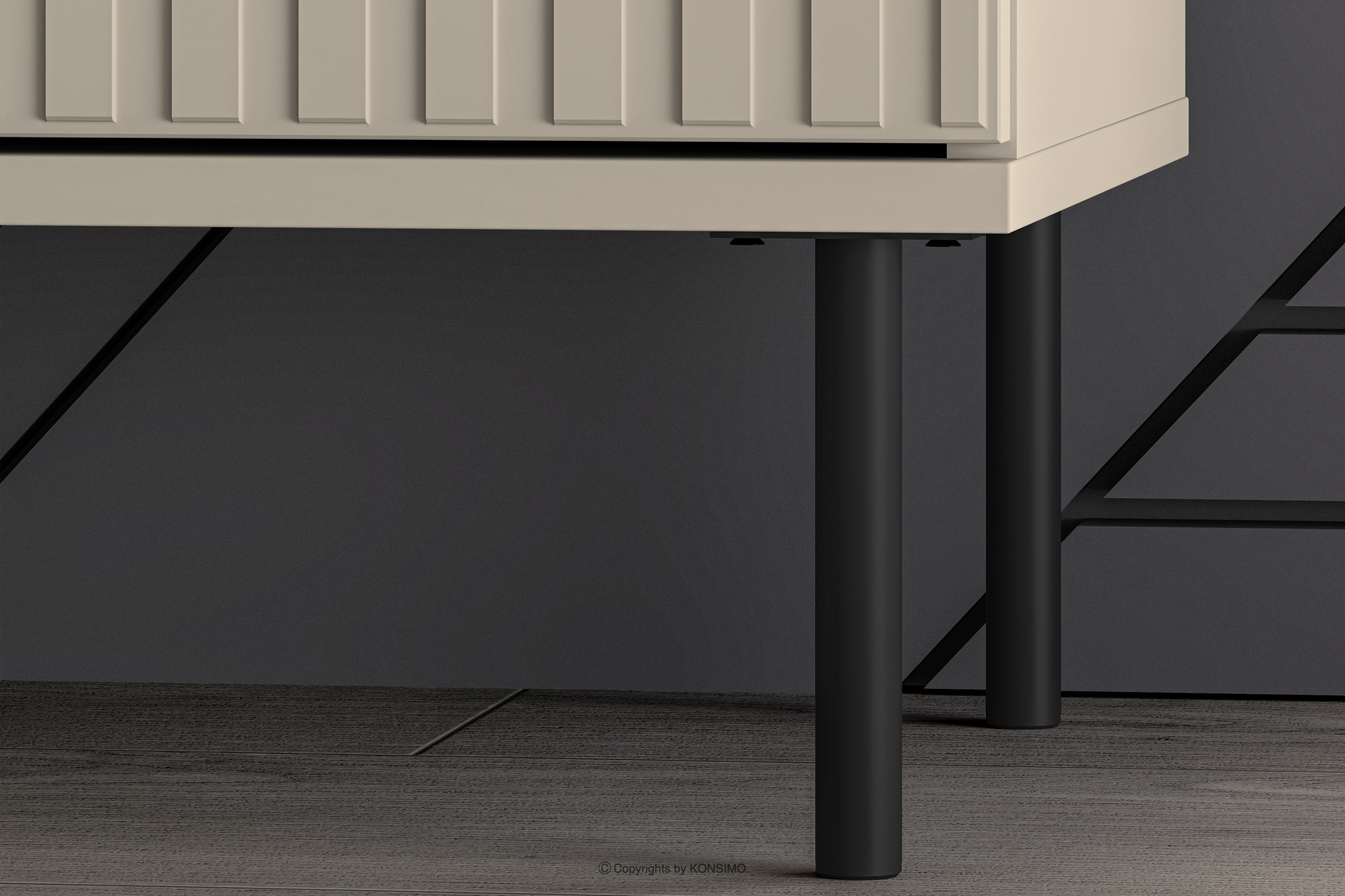 Die laminierte Platte/MDF-Front ist nicht nur ein optischer Blickfang, sondern garantiert auch ein unverändertes Aussehen über viele Jahre. Die schwarzen Metallbeine und die goldenen Griffe tragen nicht nur zum Charme des Möbels bei, sondern zieren auch das Massivholz. Die solide Konstruktion und die sorgfältige Verarbeitung lassen ihn nicht nur seine Funktion erfüllen, sondern auch zum Hauptdarsteller einer eleganten Einrichtung in der Wohnung werden.
