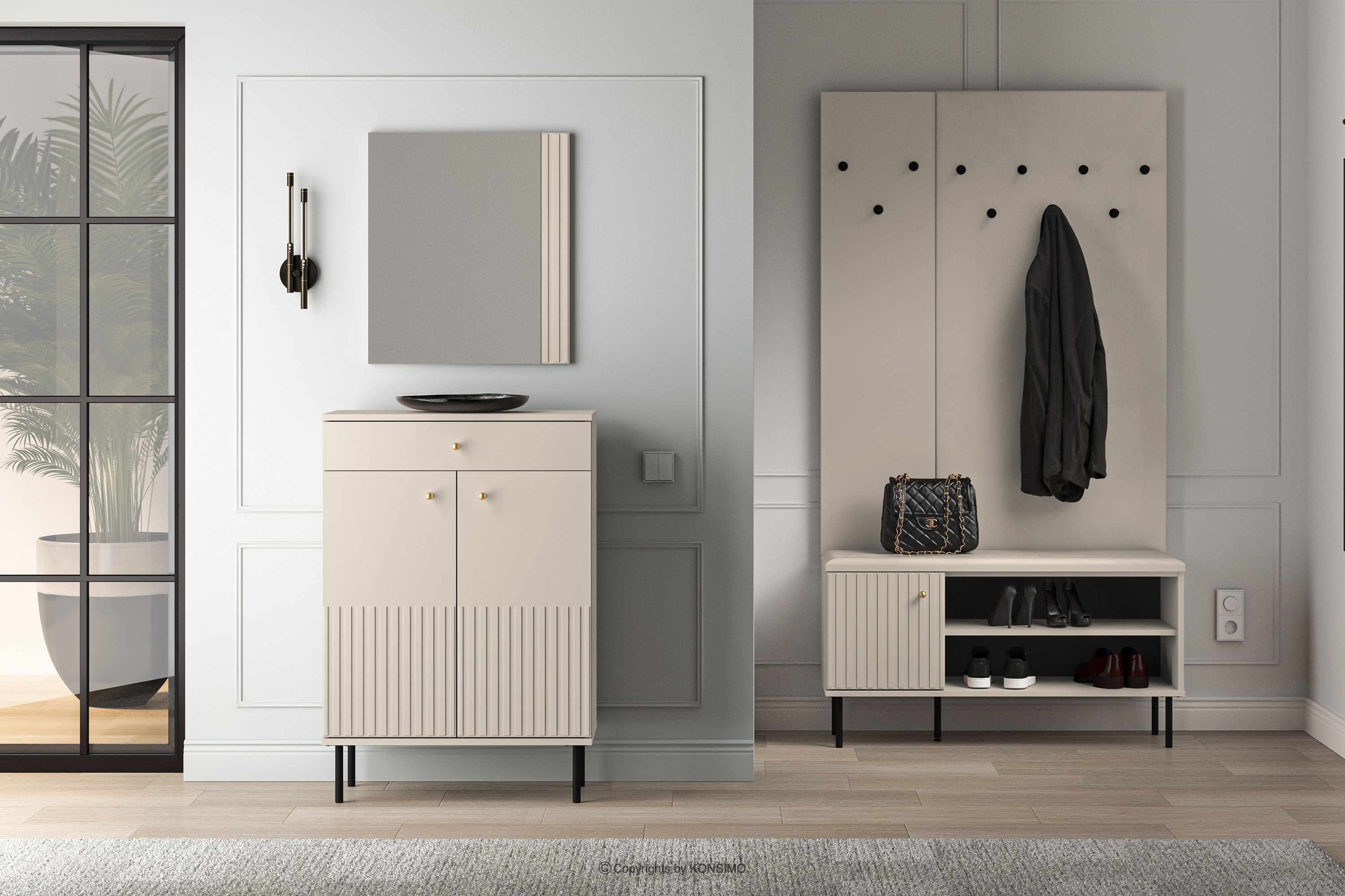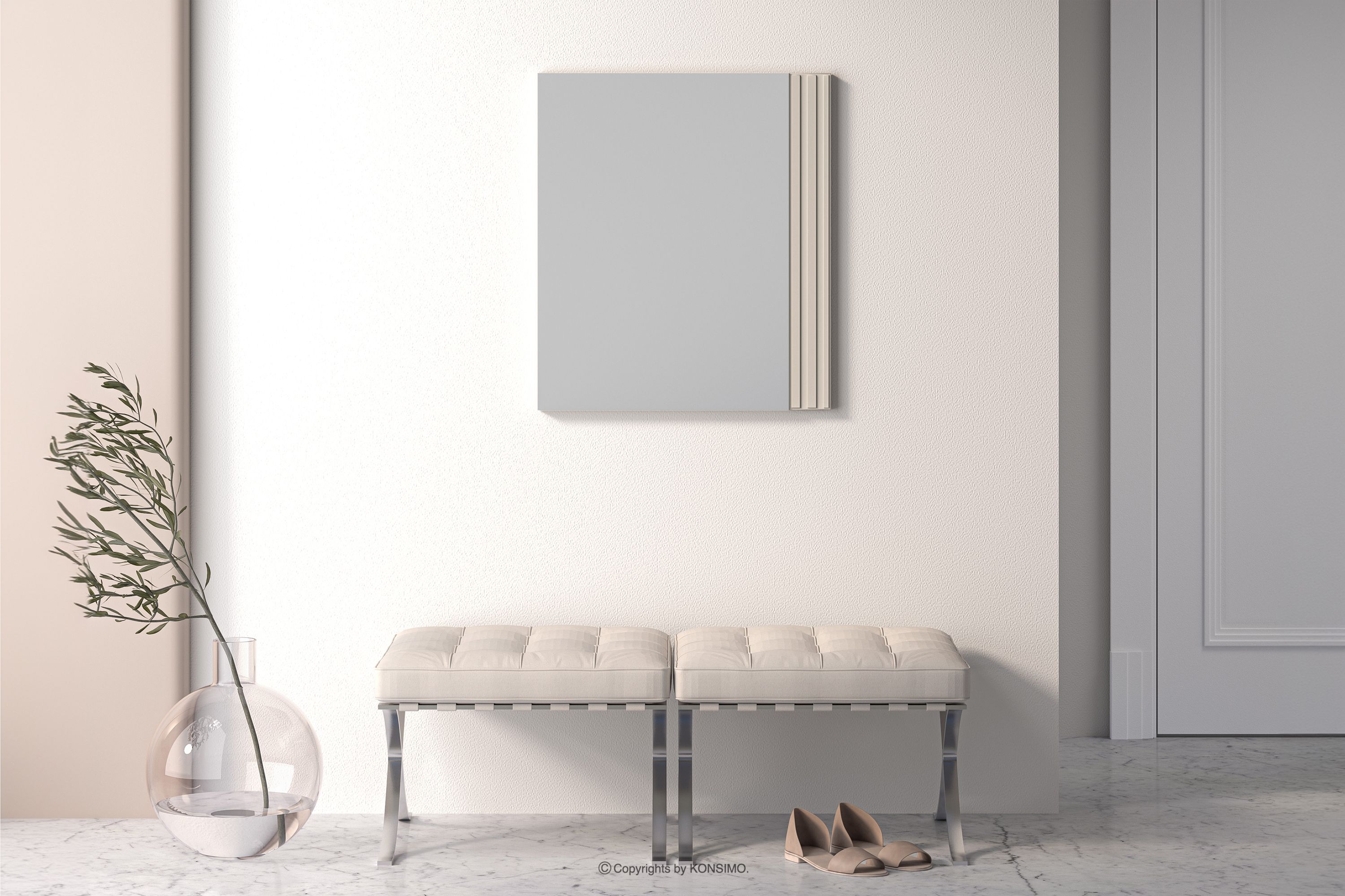 DROMA Mehr aus der Kollektion Geriffelter Wandspiegel- Farbe cremefarben