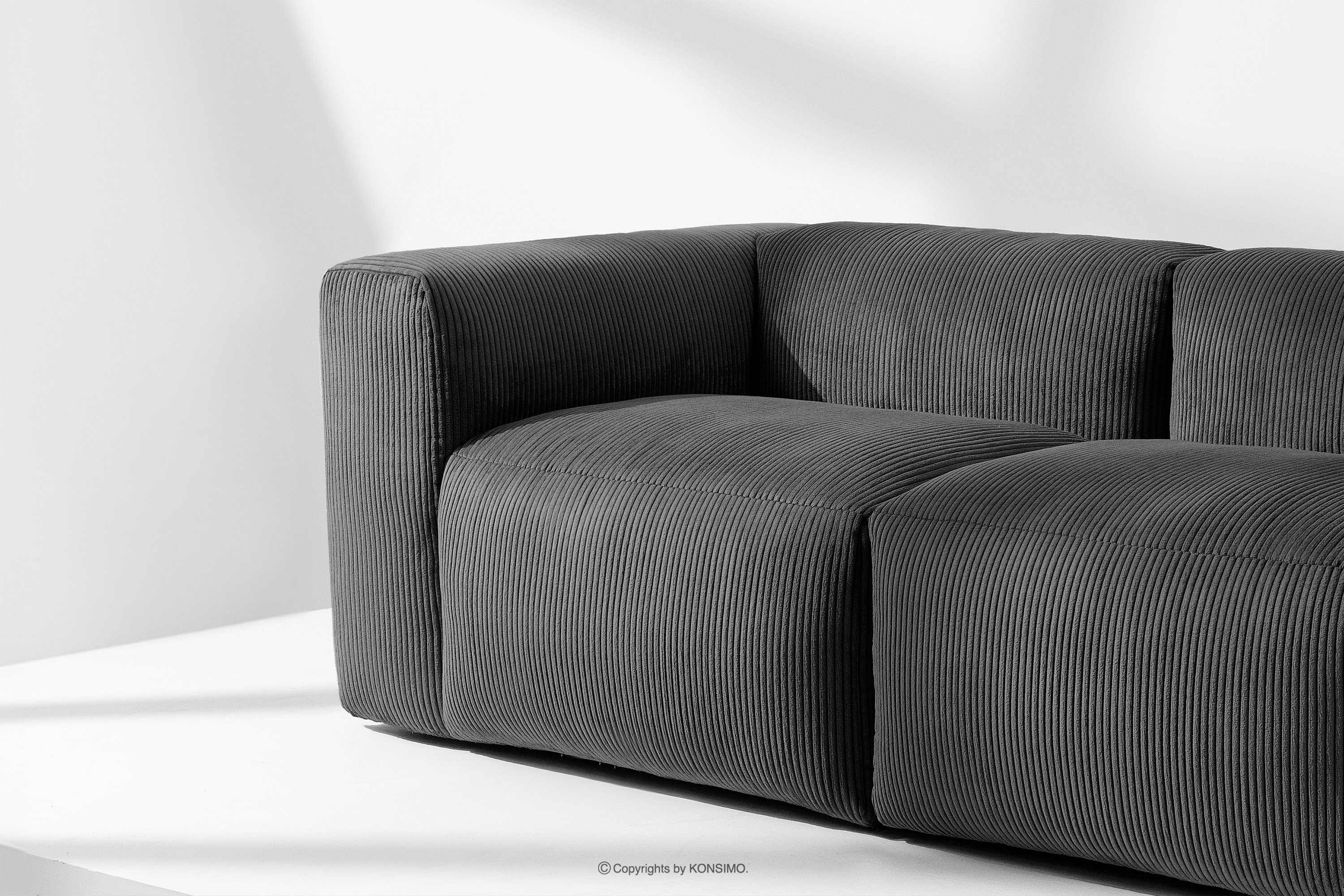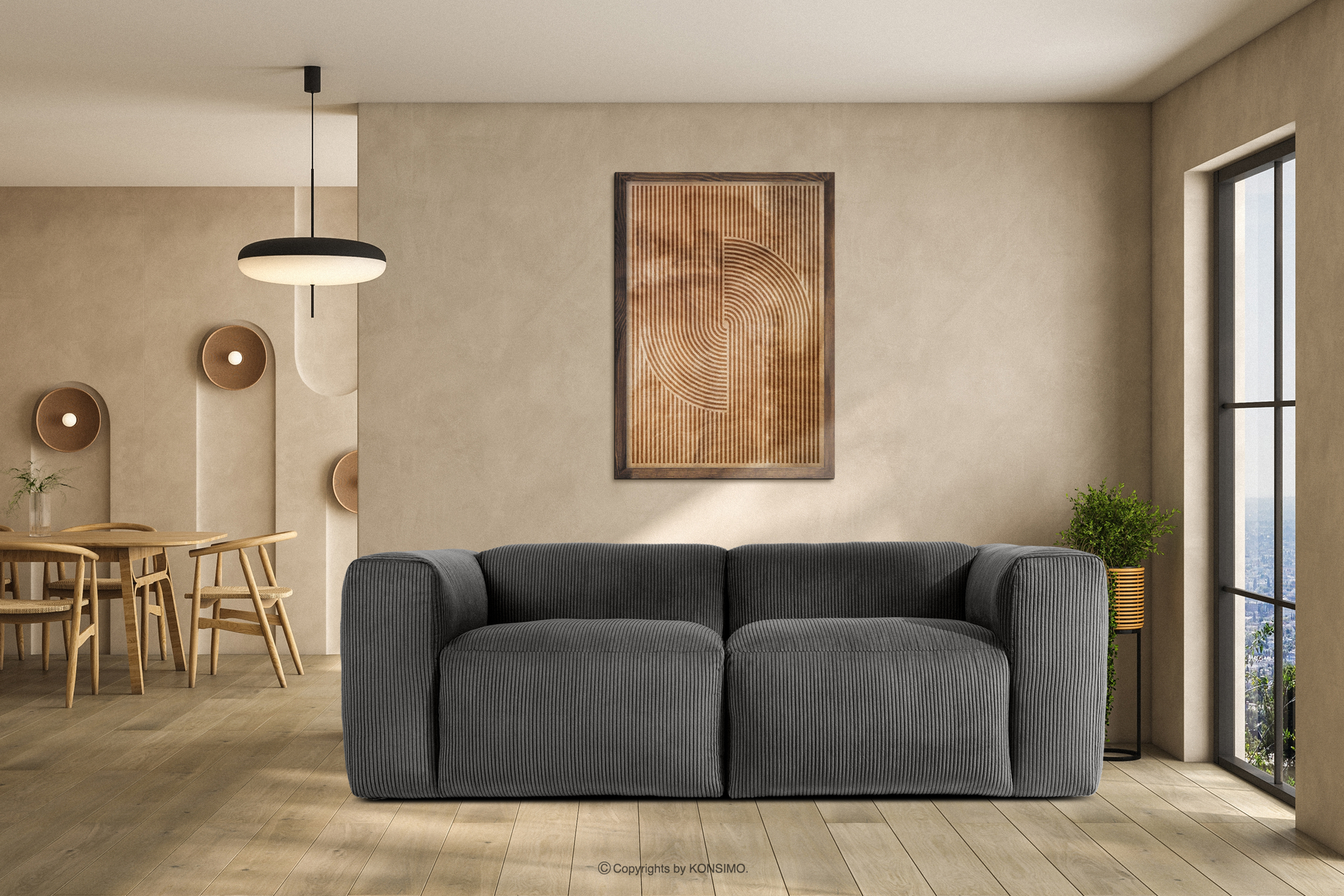 Das modulare Zweisitzer-Sofa aus grauem Kordstoff wird mit Sicherheit zum Mittelpunkt jedes Wohnzimmers. Das Gestell ist aus langlebigem Kiefern- und Buchenholz gefertigt, das nicht nur Stabilität, sondern auch Ästhetik garantiert. Darüber hinaus erhöht die Verwendung von langlebigen Span- und Faserplatten die Stabilität und Langlebigkeit des Möbels. So bleiben sie auch bei intensiver Nutzung formstabil und widerstandsfähig gegen alle Herausforderungen des täglichen Lebens.