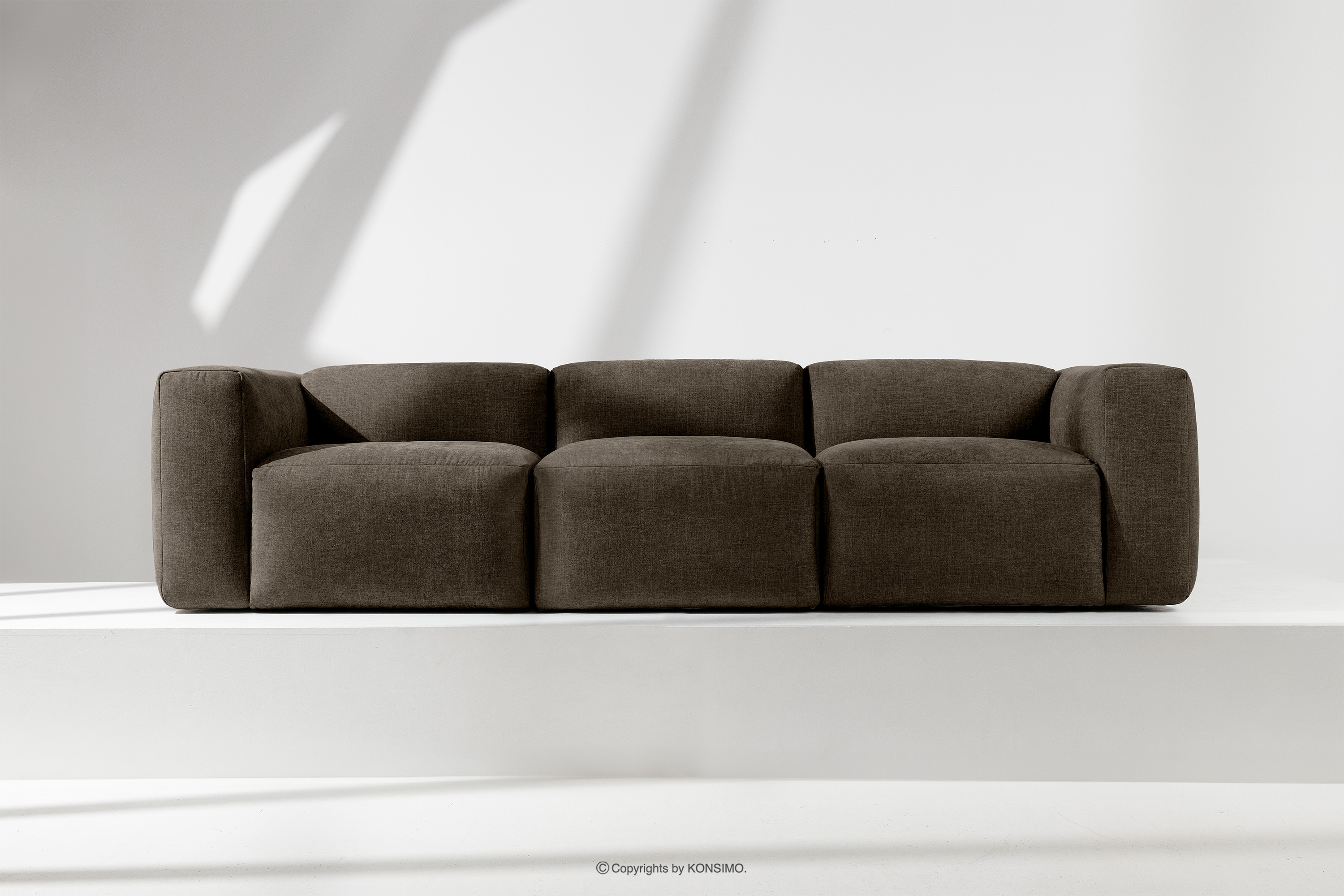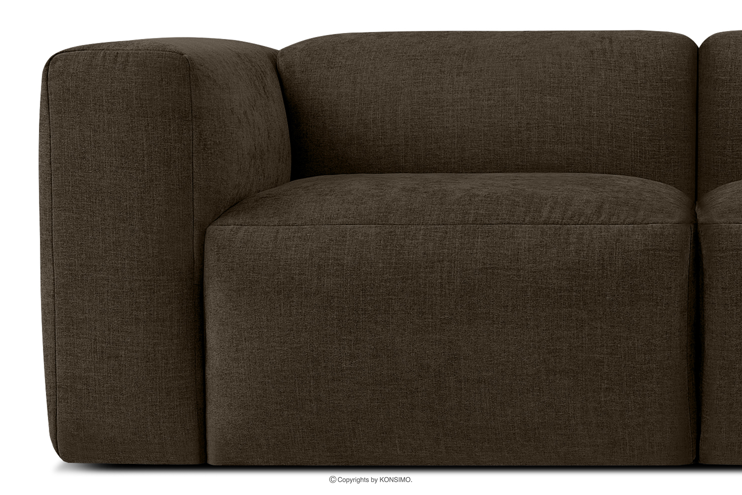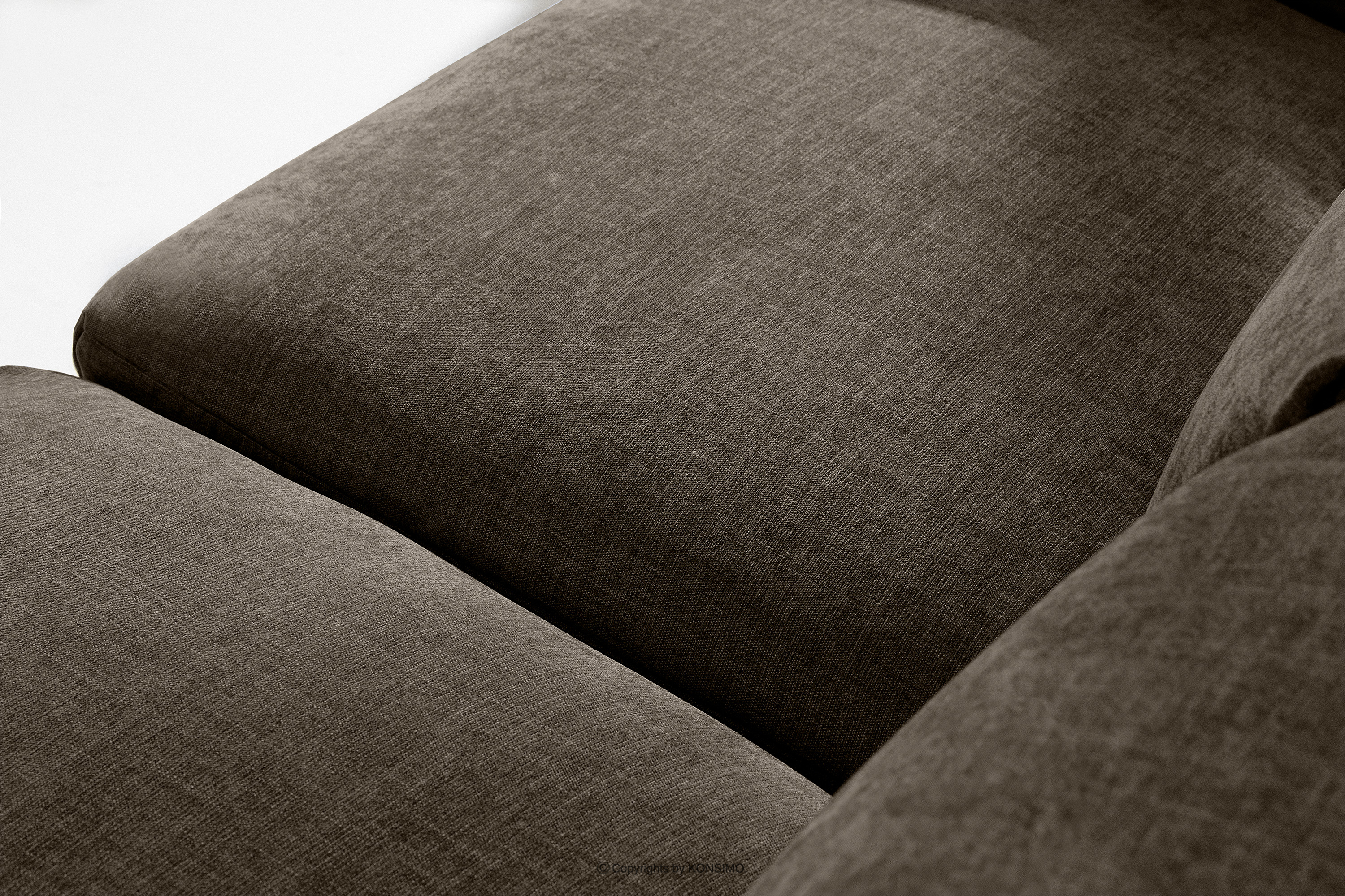 Das modulare Sofa 3 boho in braunem Gewebestoff wird mit Sicherheit zum Mittelpunkt eines jeden Wohnzimmers. Das Gestell ist aus langlebigem Kiefern- und Buchenholz gefertigt, das nicht nur für Stabilität, sondern auch für Ästhetik sorgt. Darüber hinaus erhöht die Verwendung von langlebigen Span- und Faserplatten die Stabilität und Langlebigkeit des Möbels.