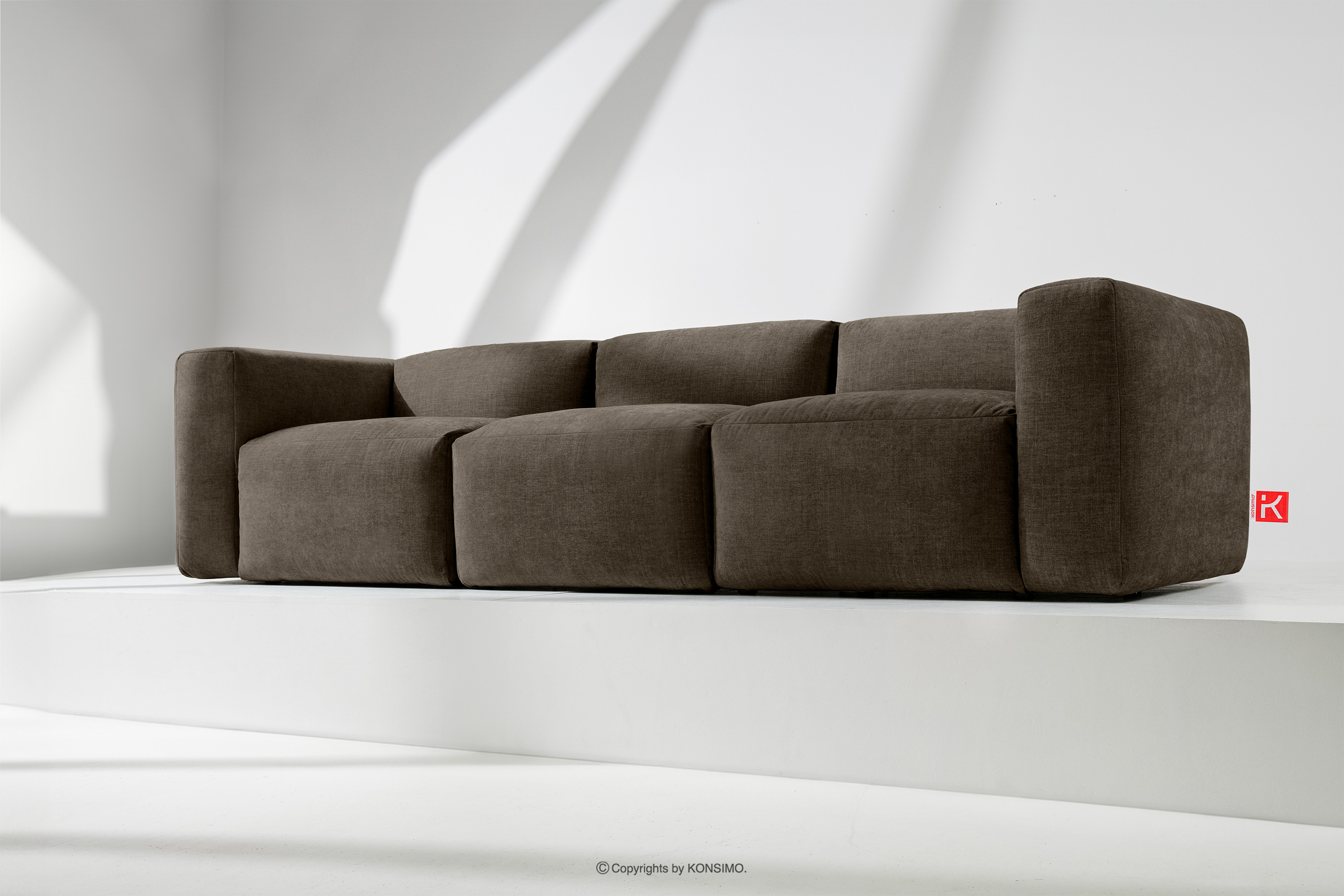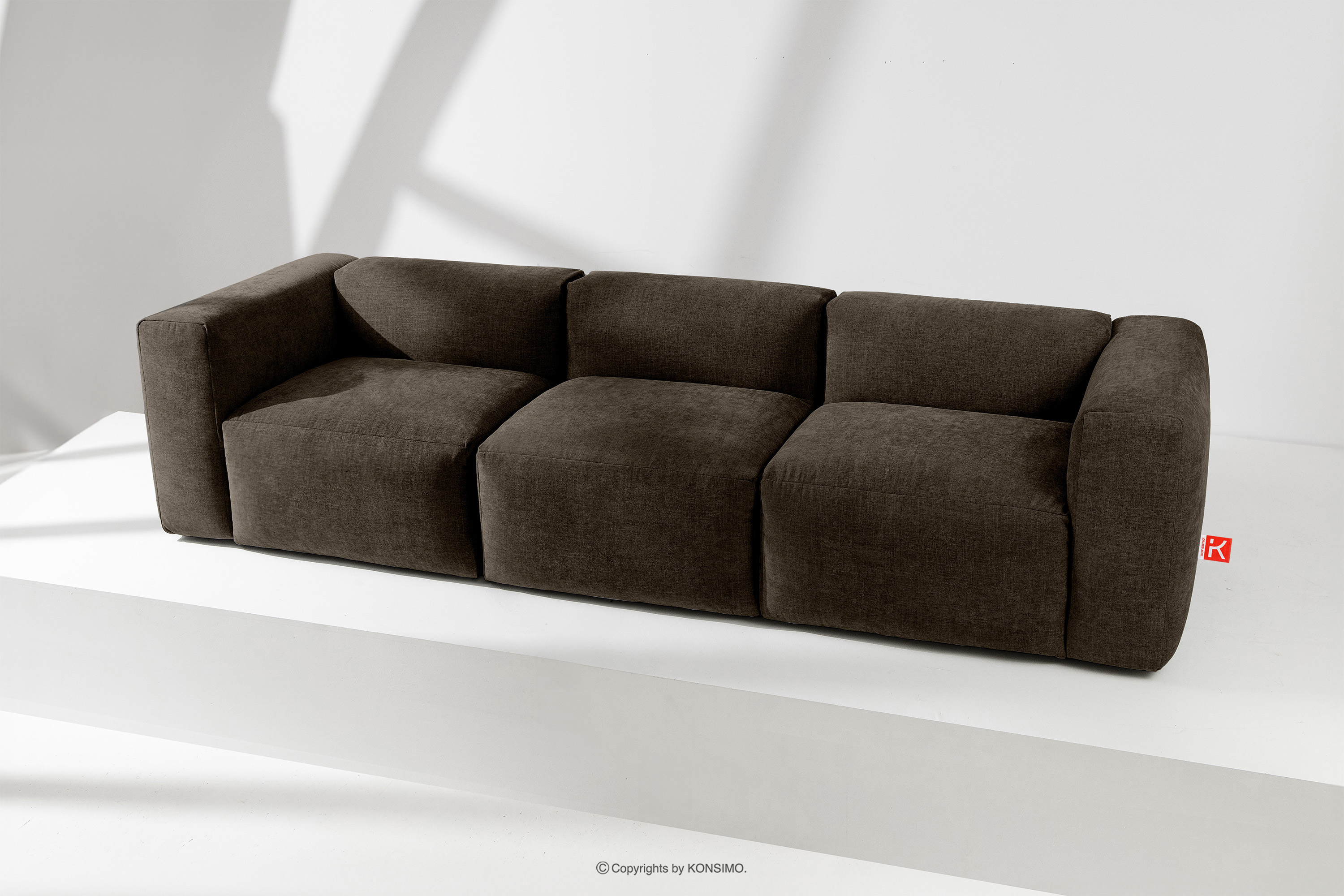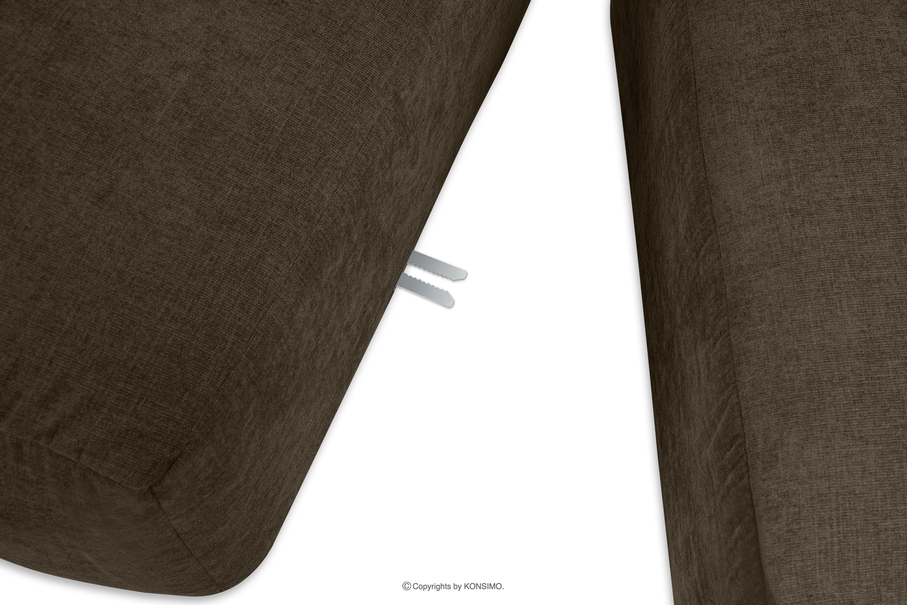 Das modulare Sofa 3 boho in braunem Gewebestoff wird mit Sicherheit zum Mittelpunkt eines jeden Wohnzimmers. Das Gestell ist aus langlebigem Kiefern- und Buchenholz gefertigt, das nicht nur für Stabilität, sondern auch für Ästhetik sorgt. Darüber hinaus erhöht die Verwendung von langlebigen Span- und Faserplatten die Stabilität und Langlebigkeit des Möbels.