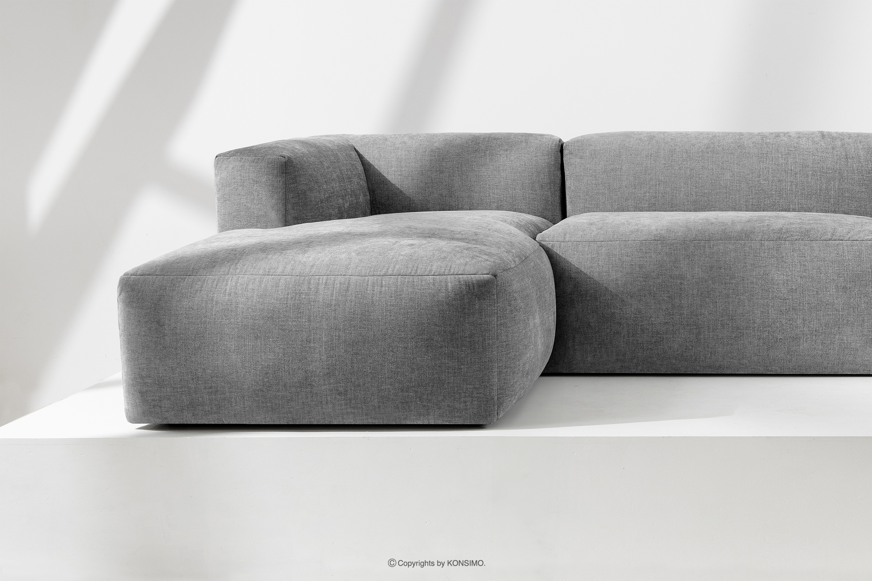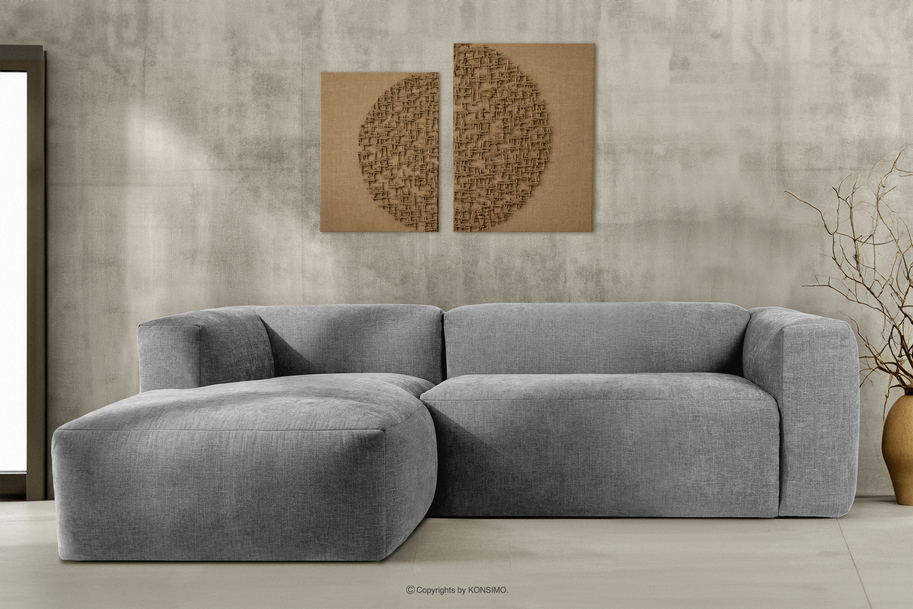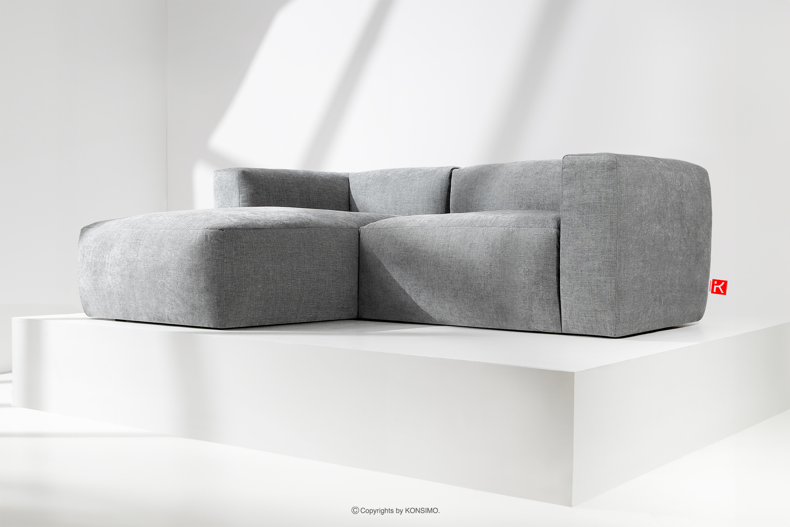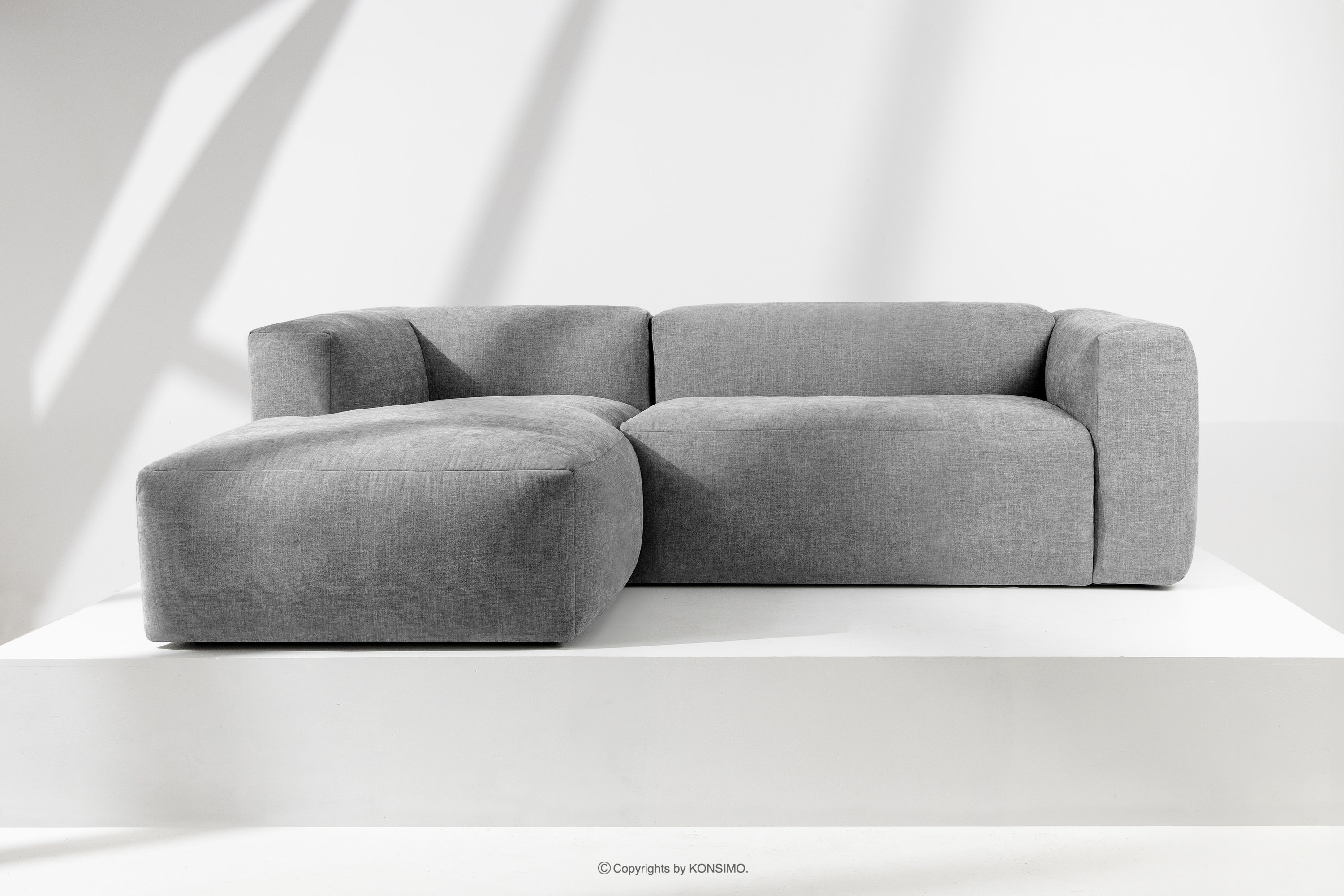 BUFFO Modulares Wohnzimmer-Ecksofa aus hellgrauem Gewebestoff, links