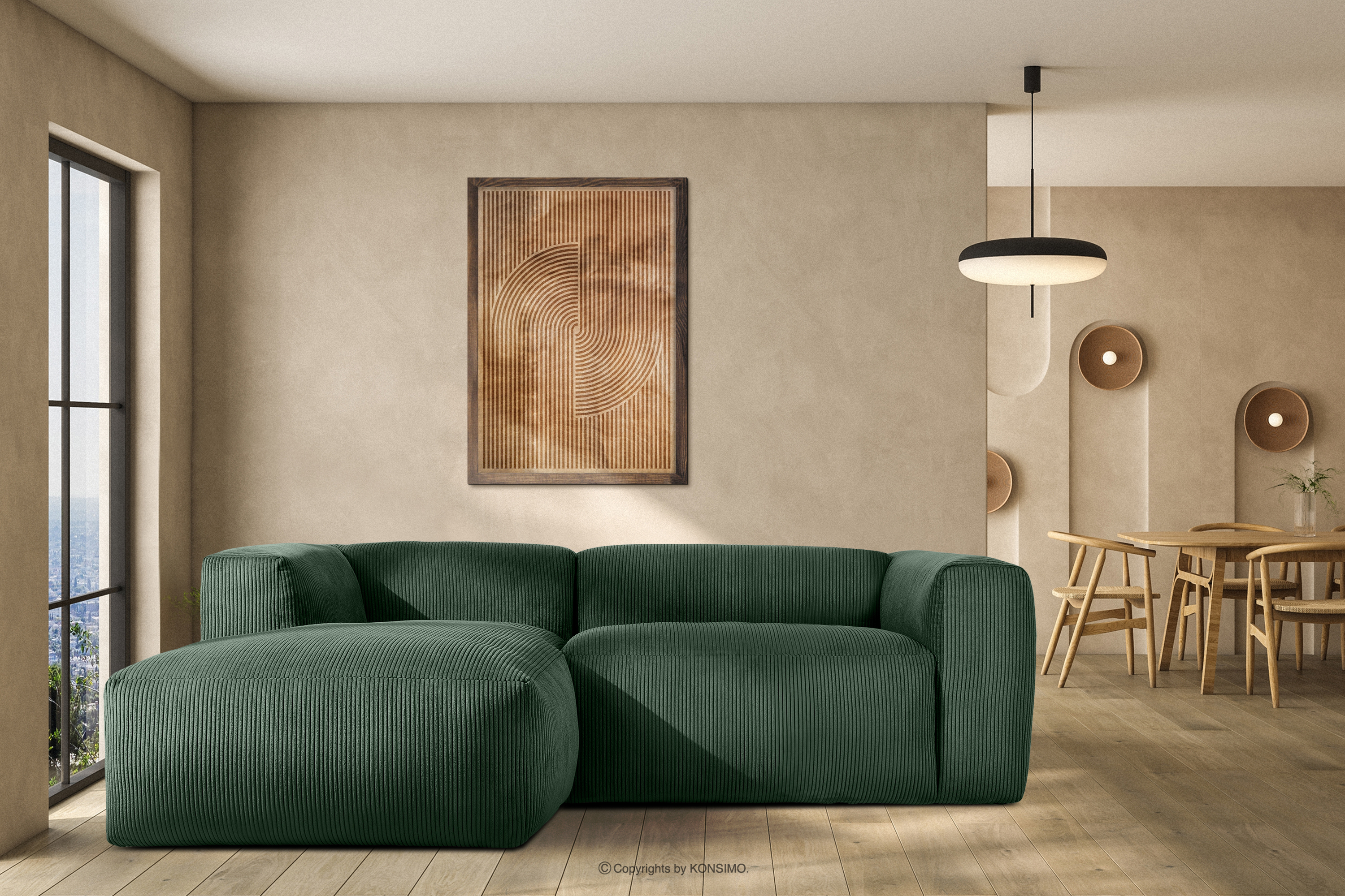 Das modulare Ecksofa für das Wohnzimmer in Kordstoff dunkelgrün links wird mit Sicherheit zum Mittelpunkt eines jeden Wohnzimmers. Das Gestell ist aus langlebigem Kiefern- und Buchenholz gefertigt, das nicht nur Robustheit, sondern auch Ästhetik gewährleistet. Darüber hinaus erhöht die Verwendung von langlebigen Span- und Faserplatten die Stabilität und Haltbarkeit des Möbels.