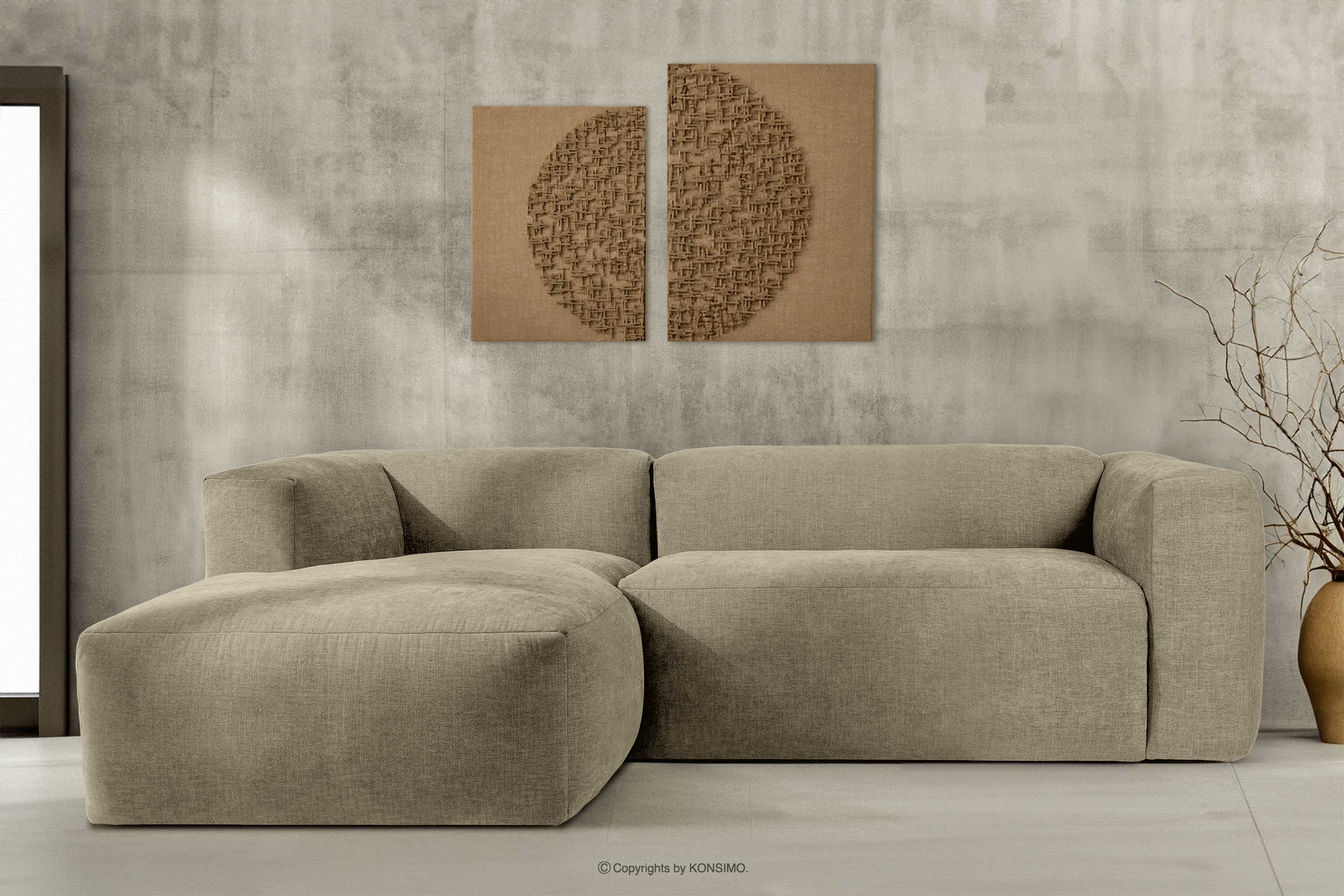 BUFFO Mehr aus der Kollektion Modulares Lounge-Ecksofa aus sandgrauem Gewebestoff, links- Farbe sandfarben