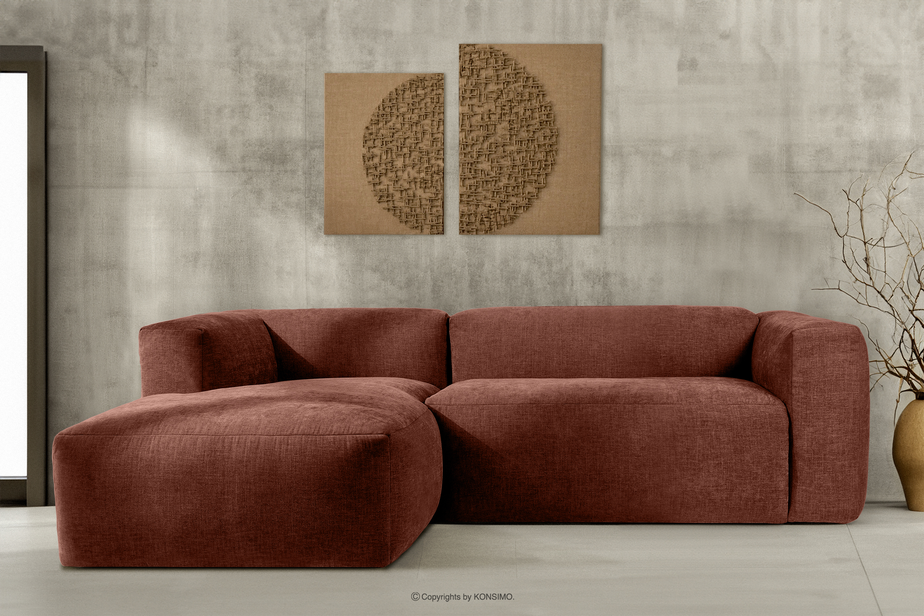 Das modulare Ecksofa für das Wohnzimmer aus Gewebestoff orange links wird mit Sicherheit zum Mittelpunkt eines jeden Wohnzimmers. Das Gestell ist aus langlebigem Kiefern- und Buchenholz gefertigt, das nicht nur für Robustheit, sondern auch für Ästhetik sorgt. Darüber hinaus erhöht die Verwendung von langlebigen Span- und Faserplatten die Stabilität und Langlebigkeit des Möbels.