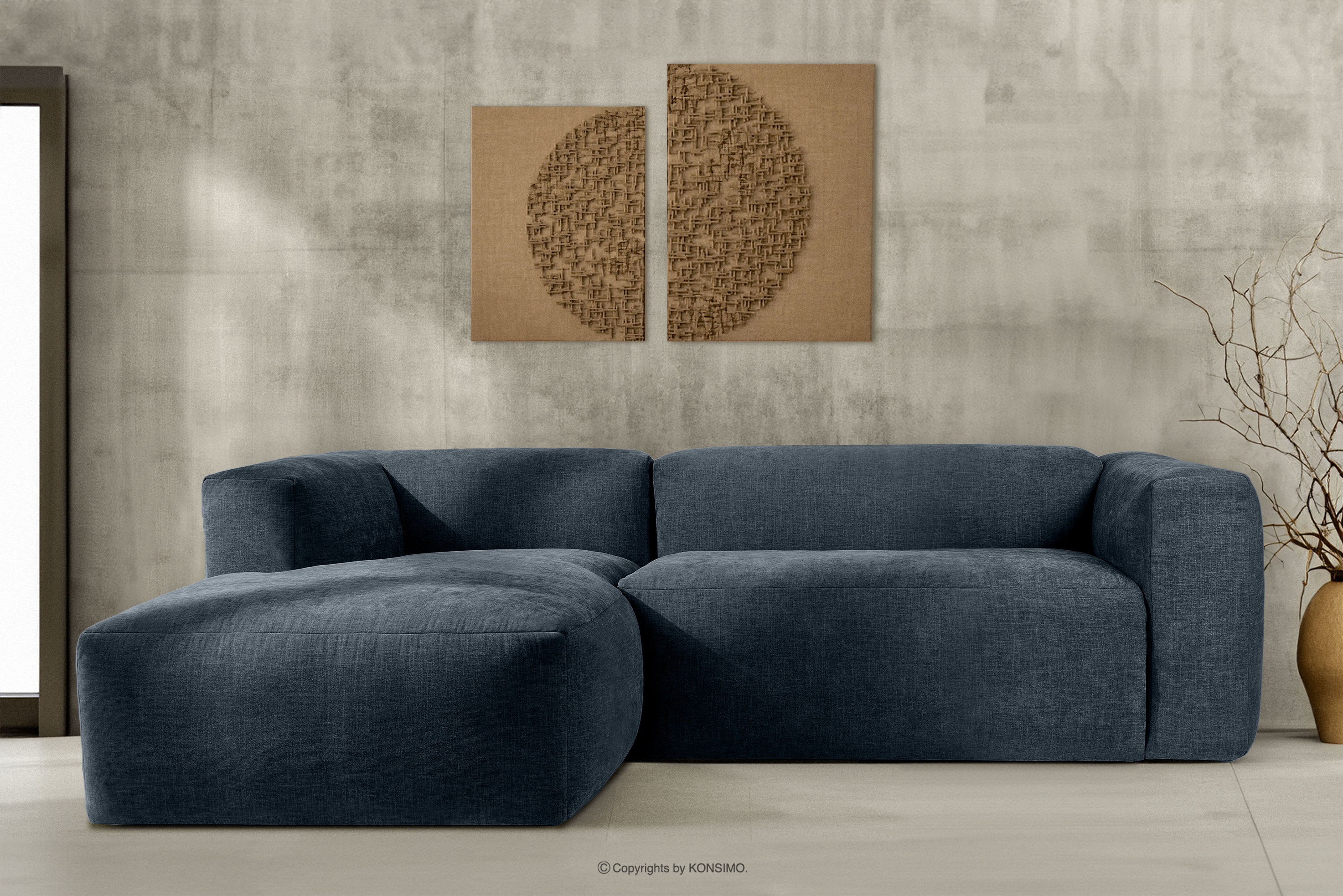 BUFFO Modulares Lounge-Ecksofa aus dunkelblauem Gewebestoff, links
