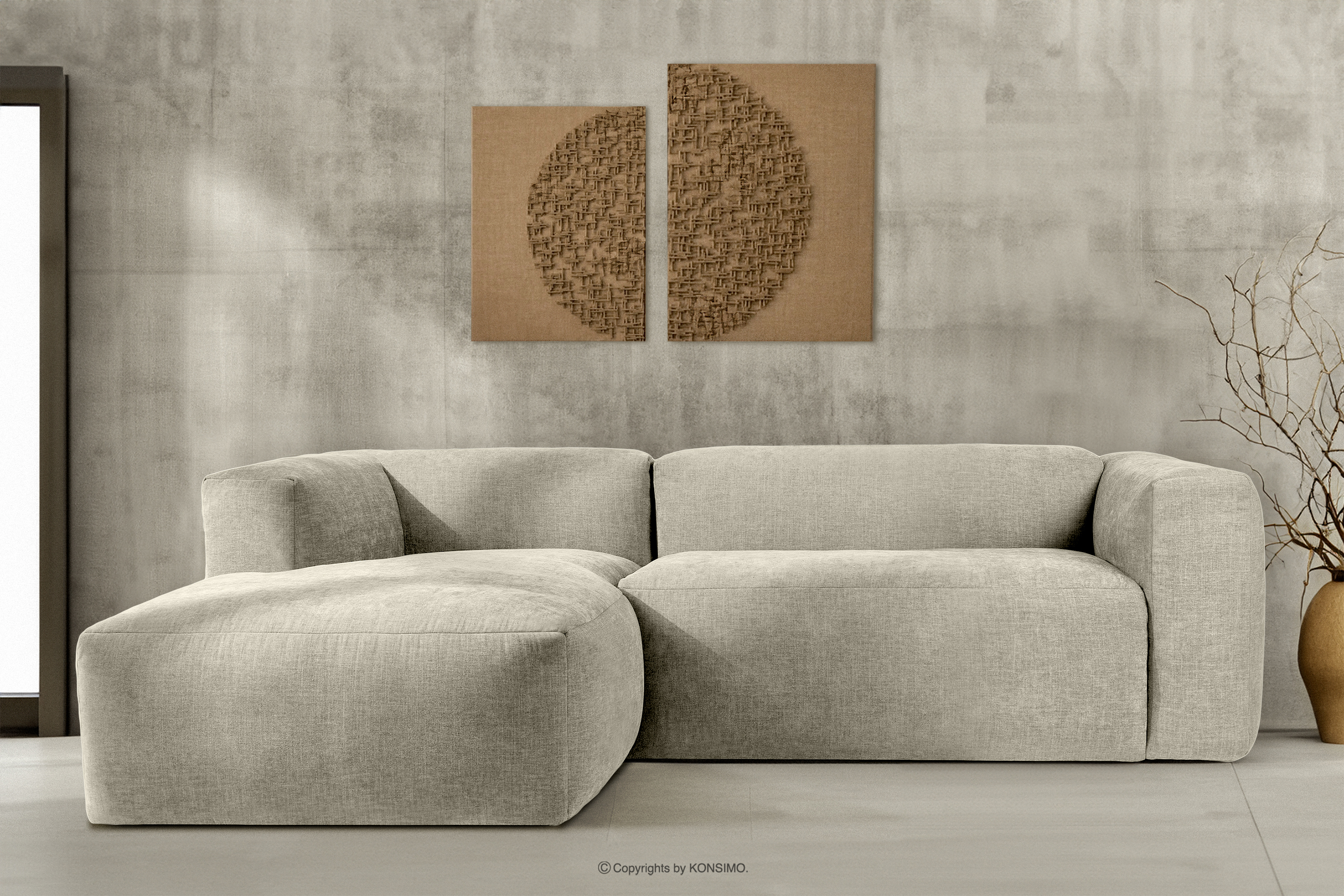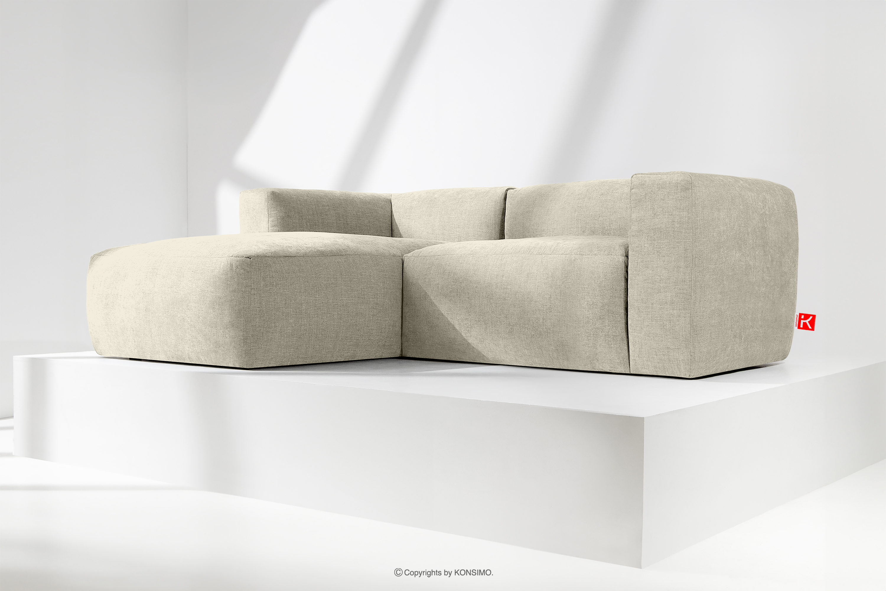 BUFFO Modulares Wohnzimmer-Ecksofa aus ecrufarbenem Kordstoff, links