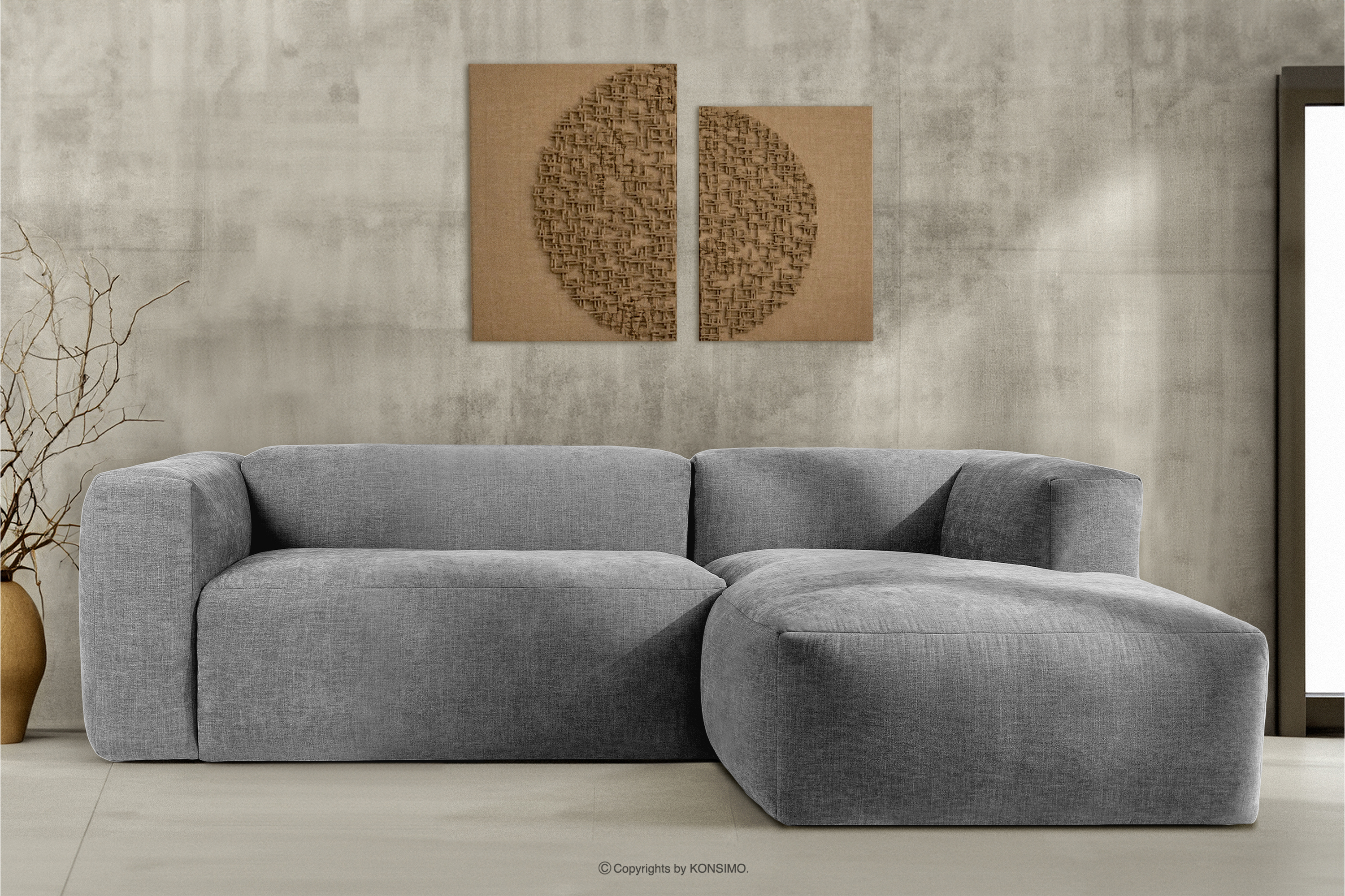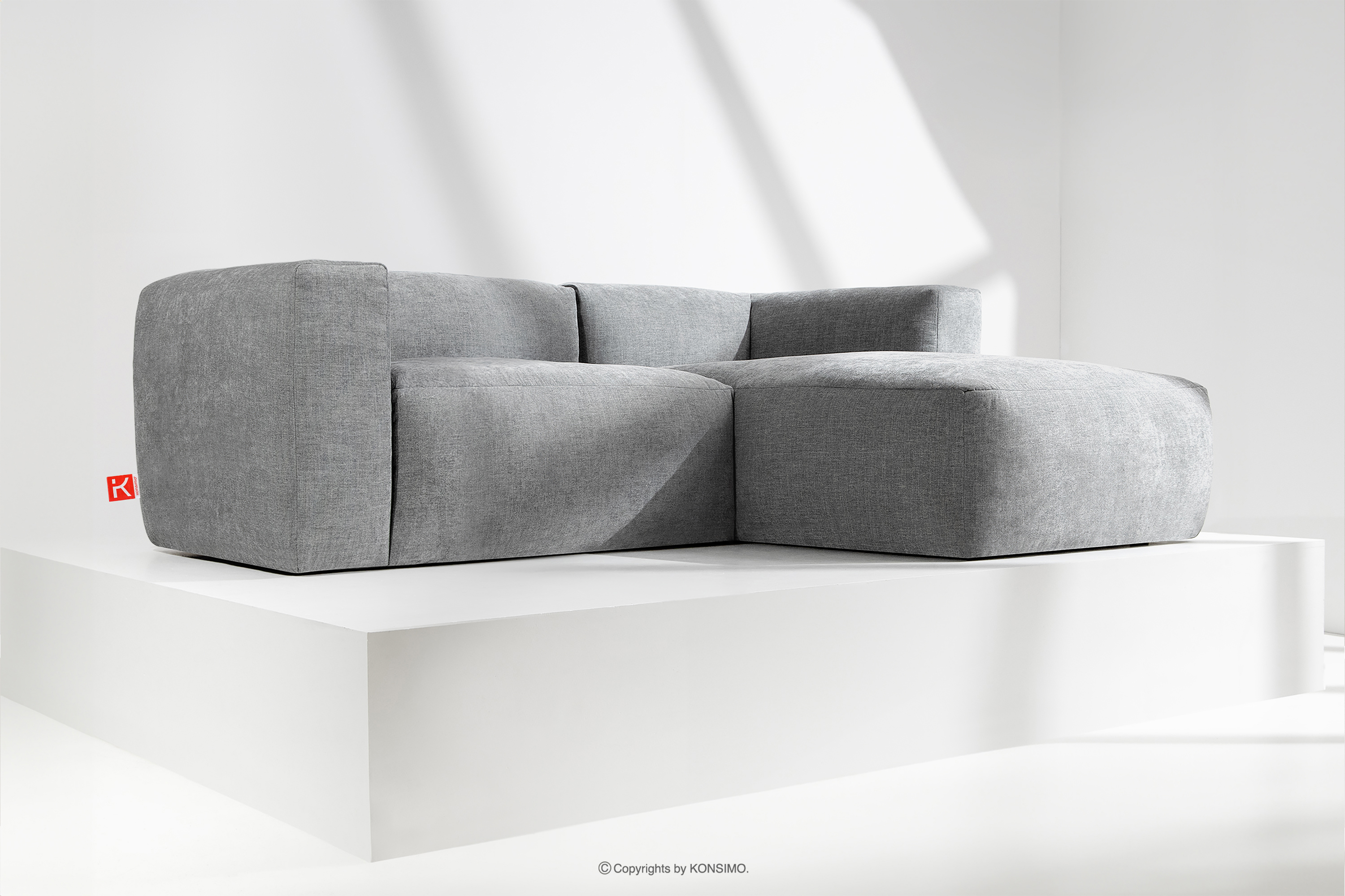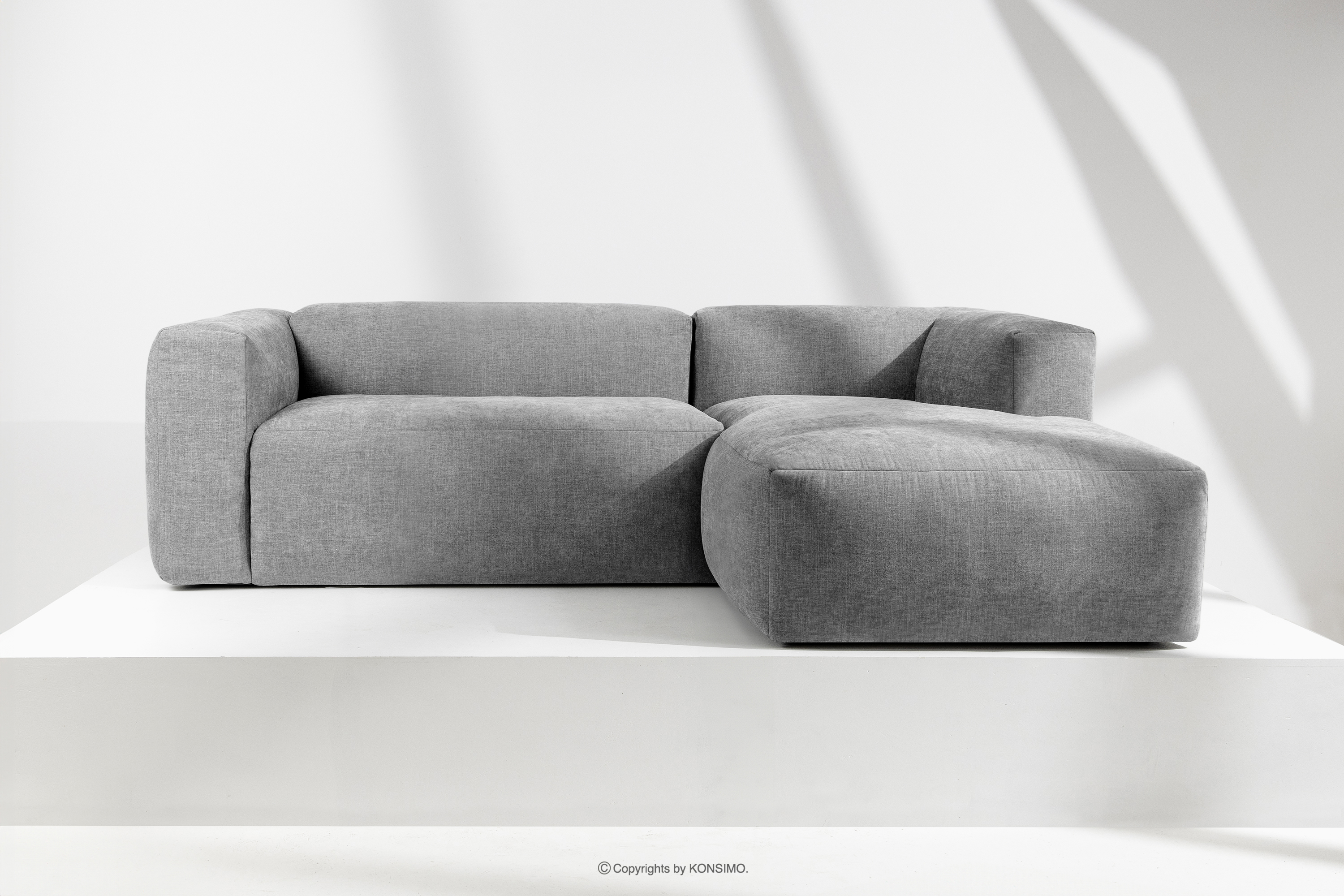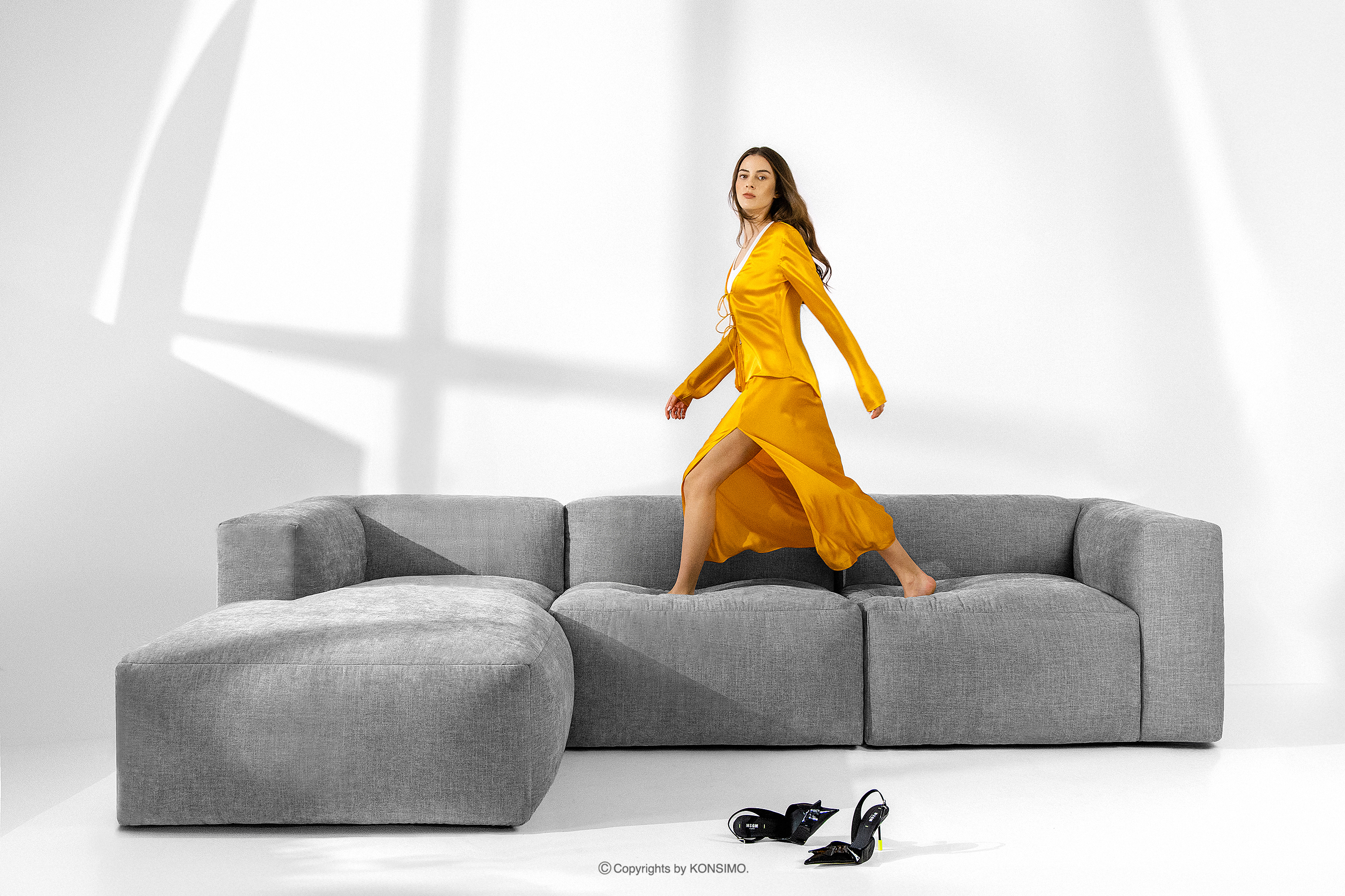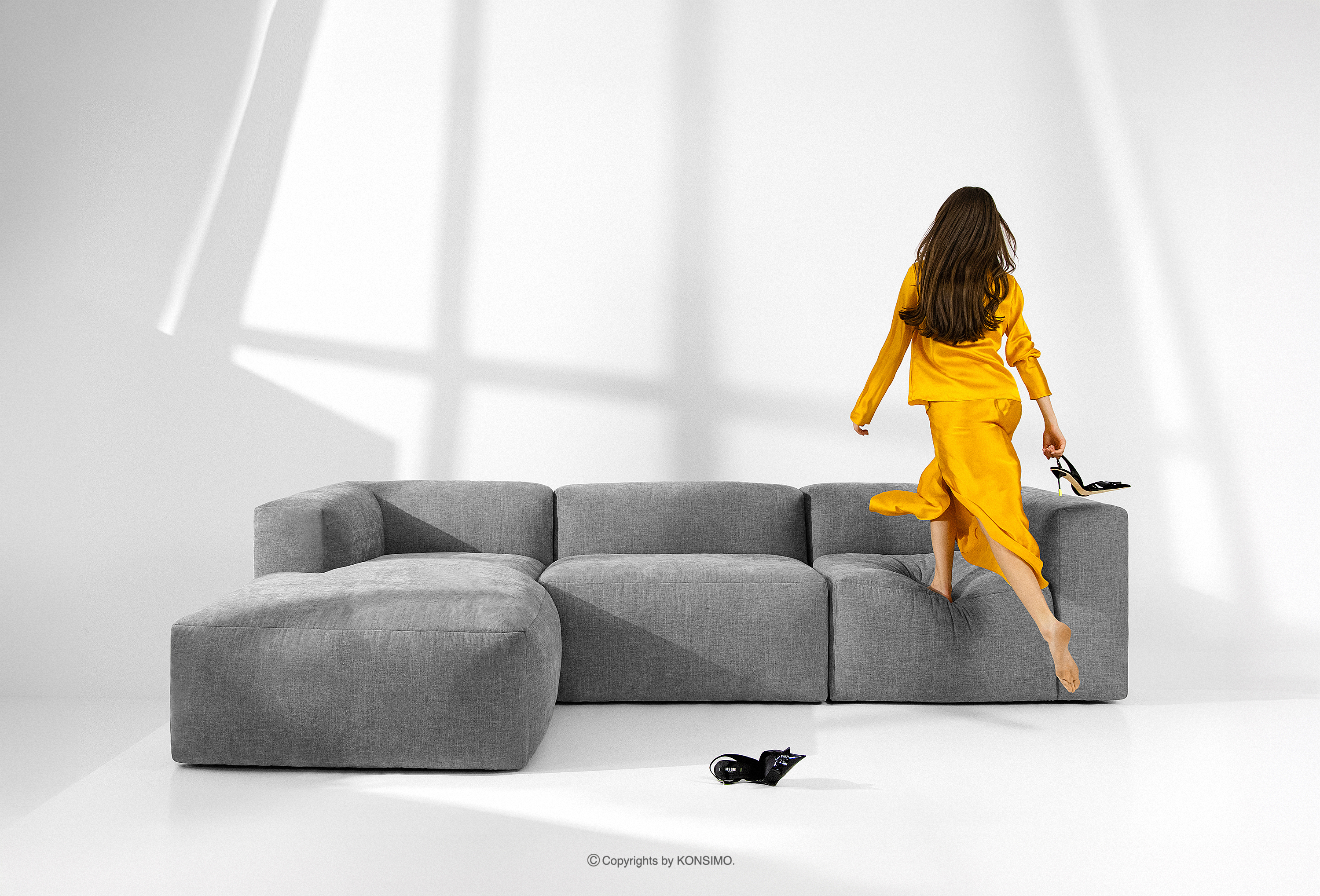 BUFFO Modulares Wohnzimmer-Ecksofa aus hellgrauem Gewebestoff, rechts