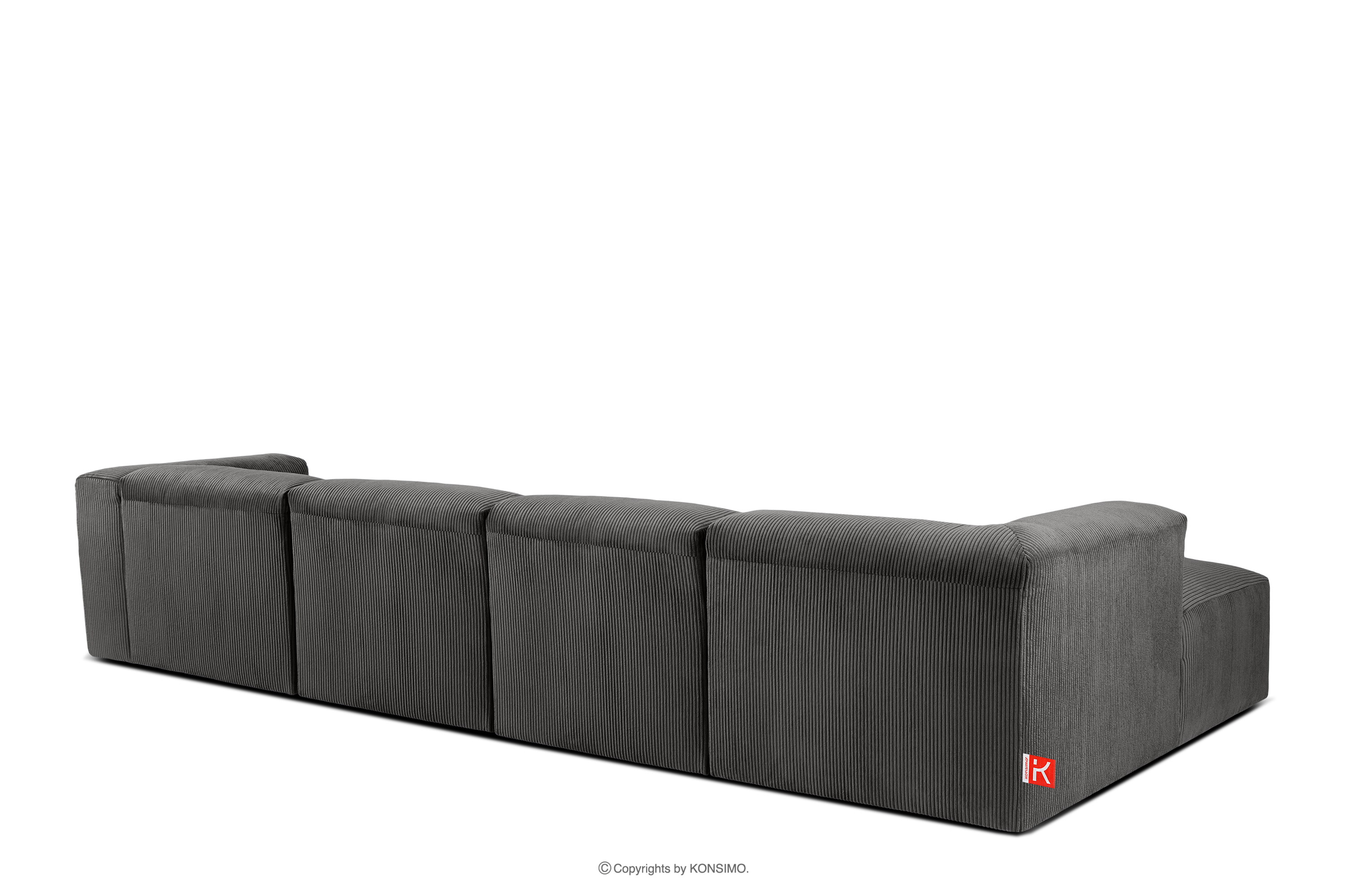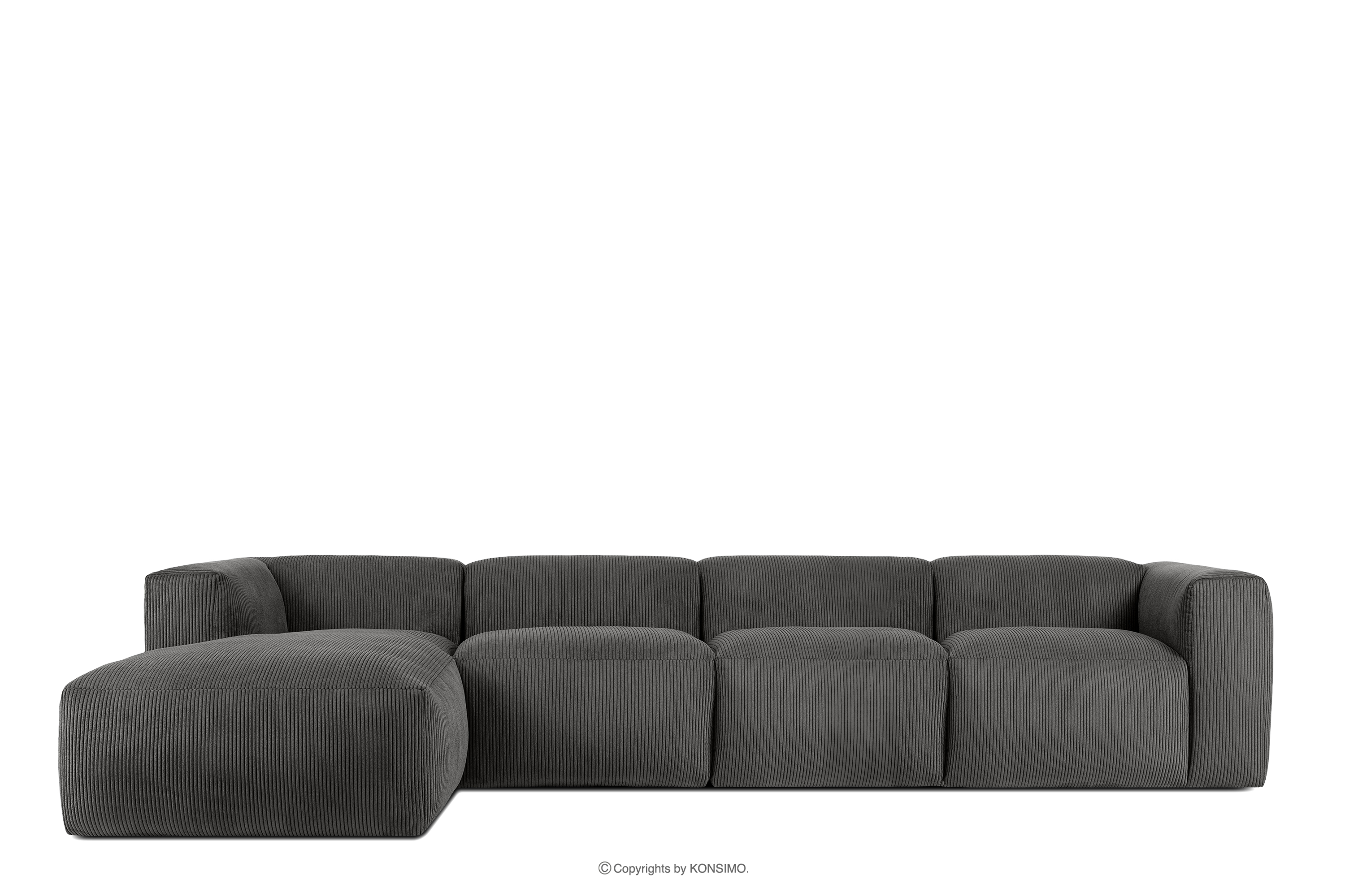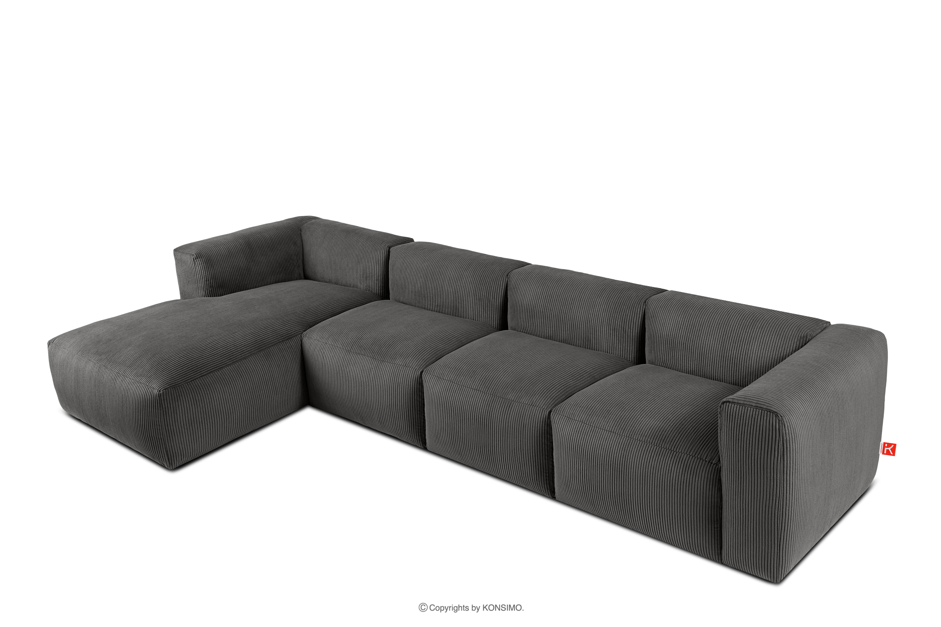 BUFFO Großes modulares Ecksofa für das Wohnzimmer aus grauem Kordstoff links
