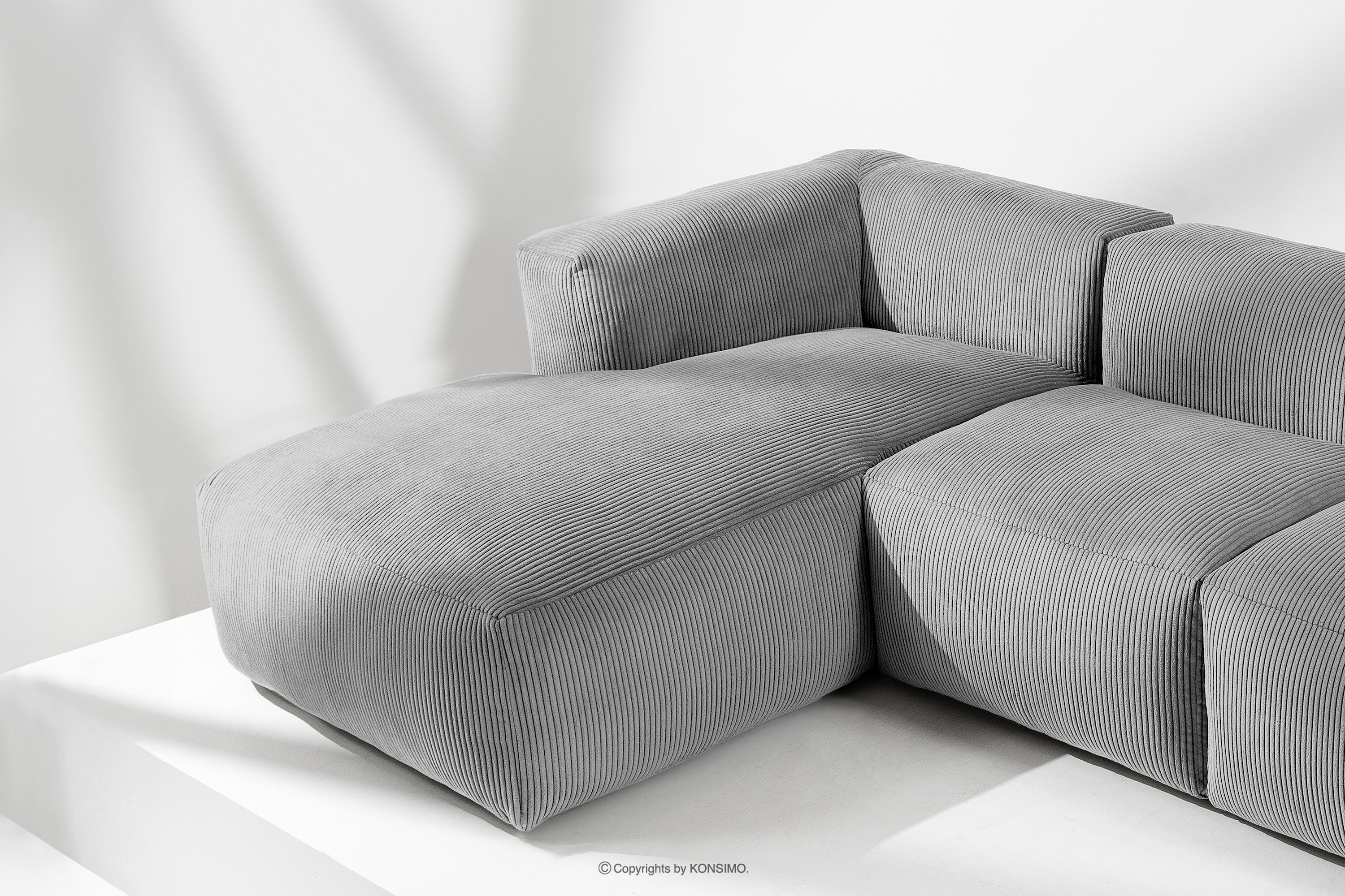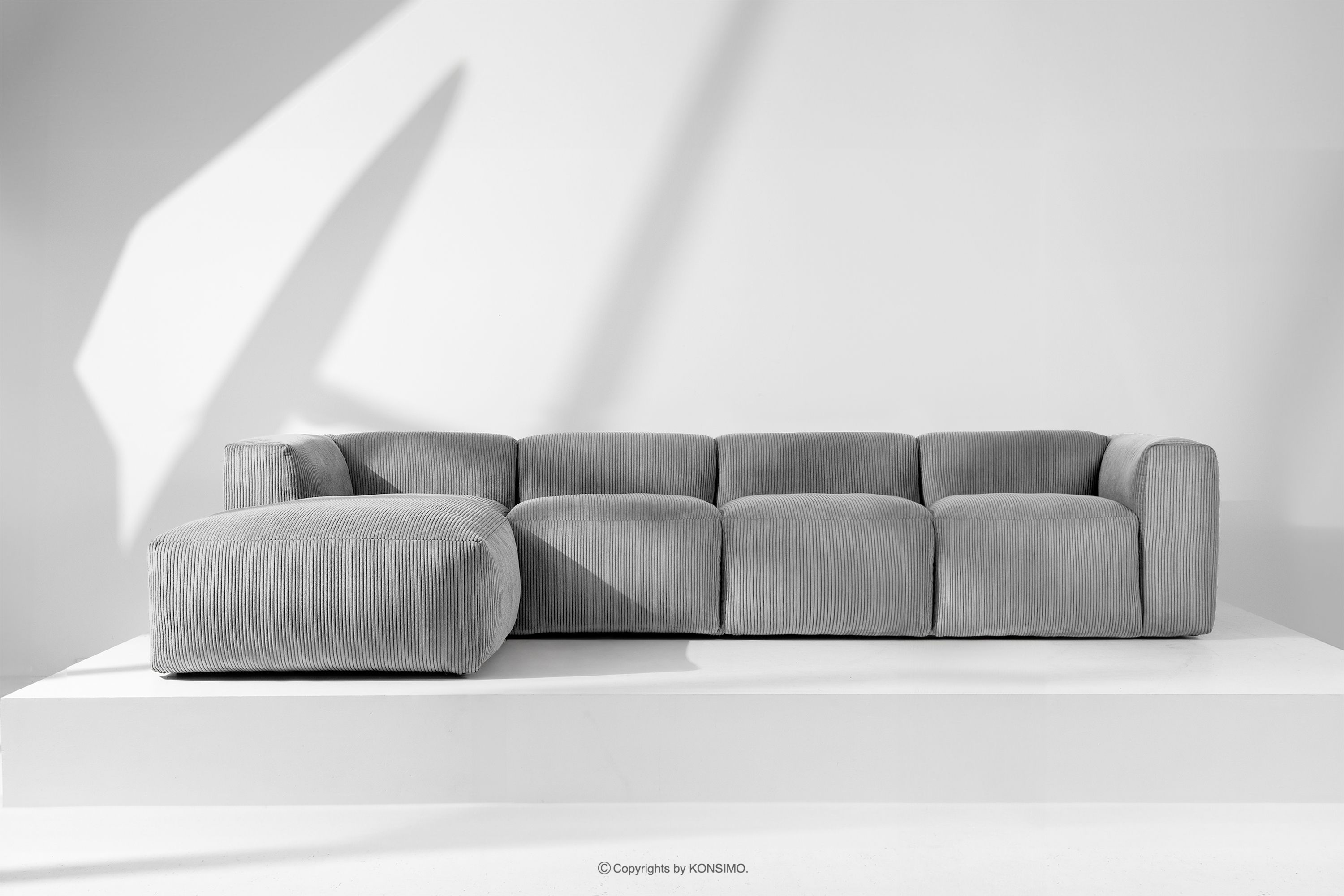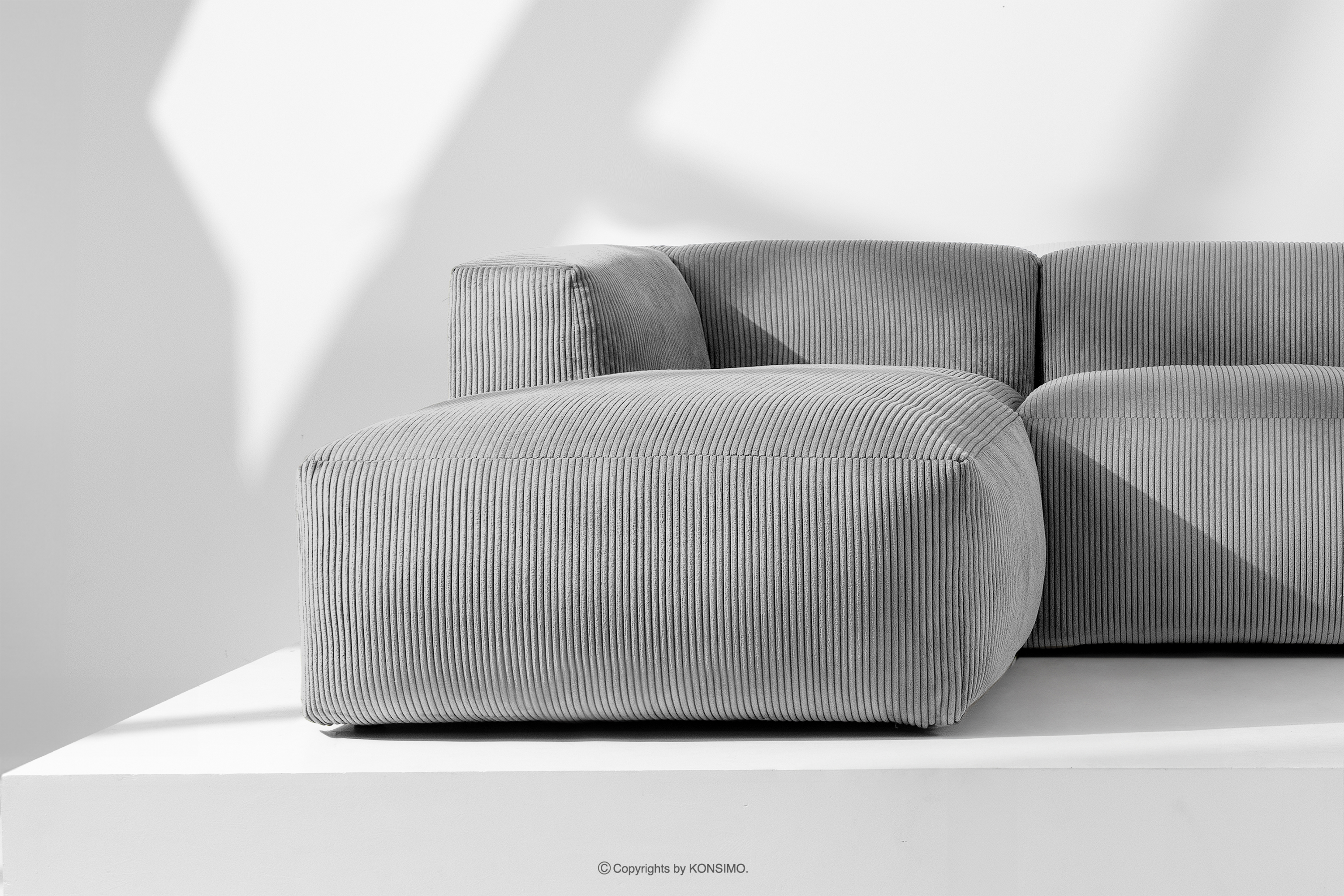 BUFFO Großes modulares Ecksofa für das Wohnzimmer aus hellgrauem Kordstoff links