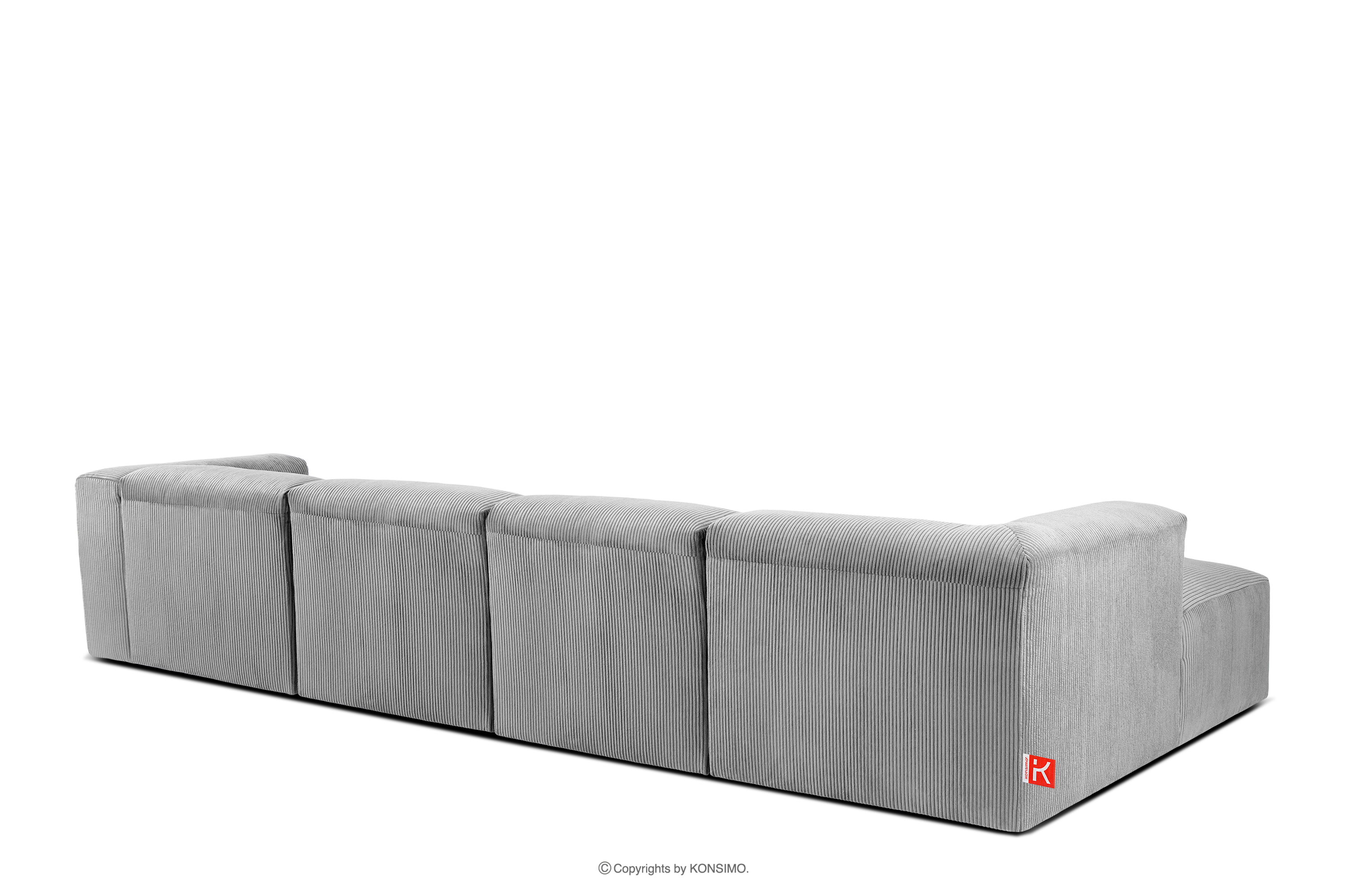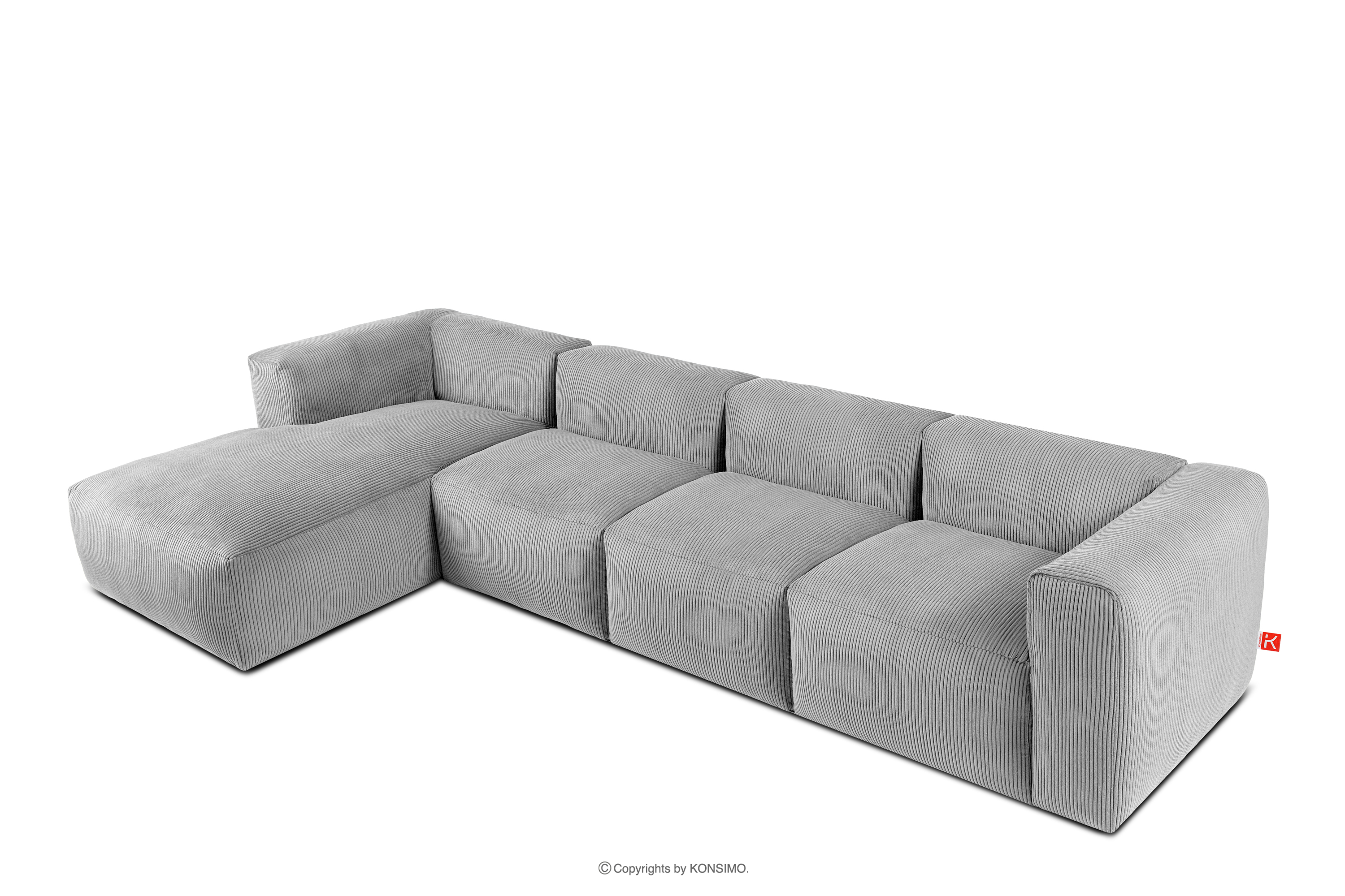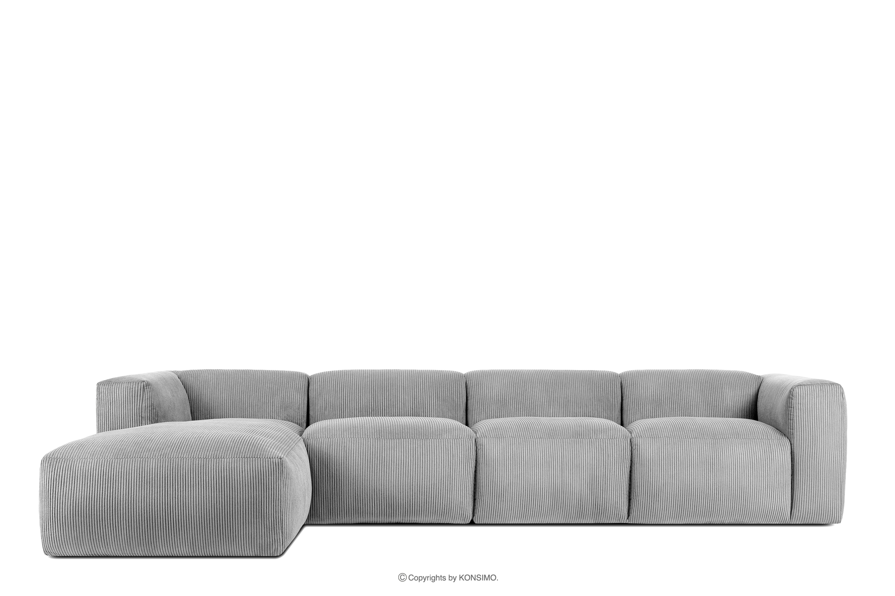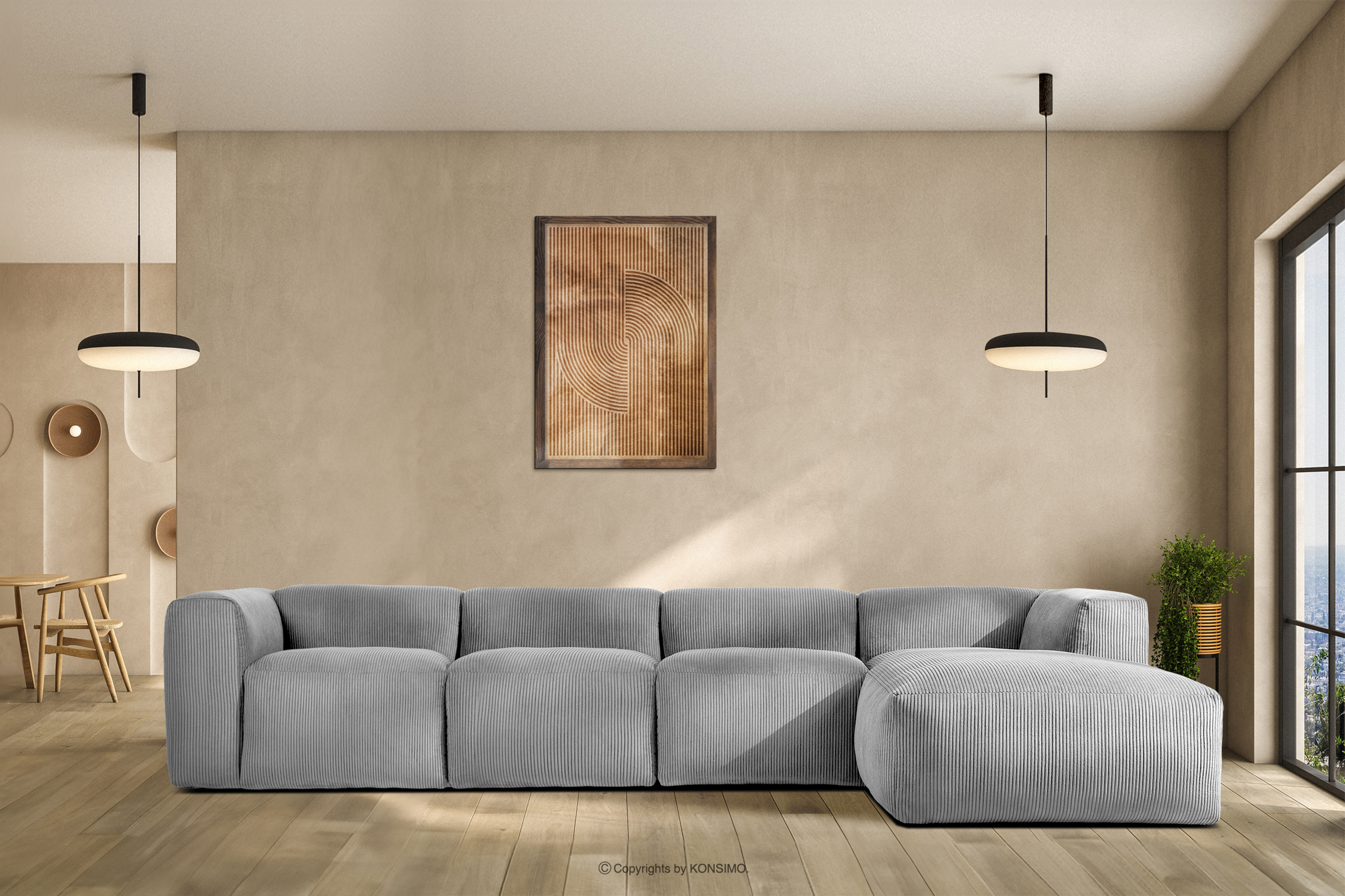 BUFFO Großes modulares Ecksofa für das Wohnzimmer aus hellgrauem Kordstoff links