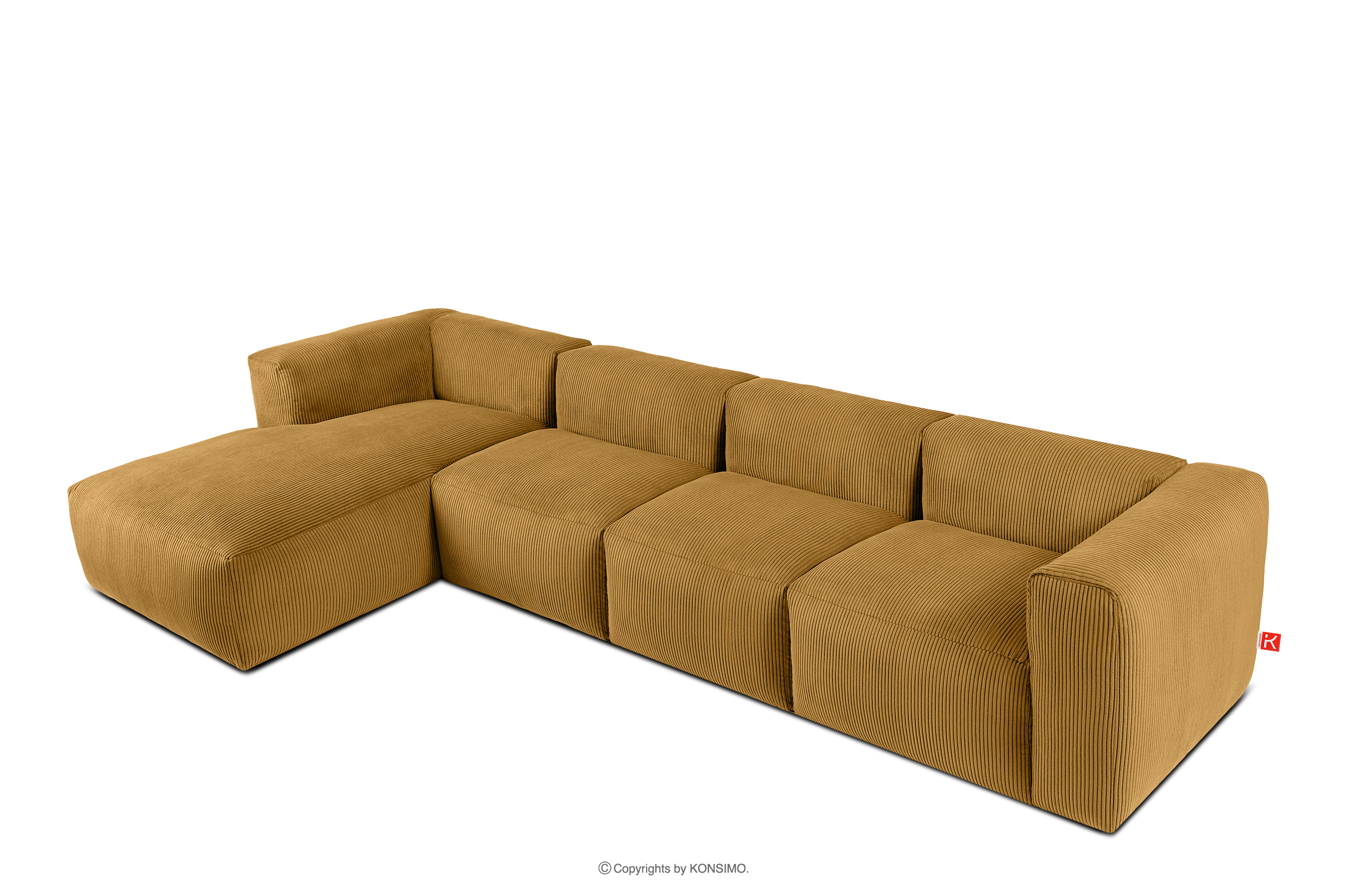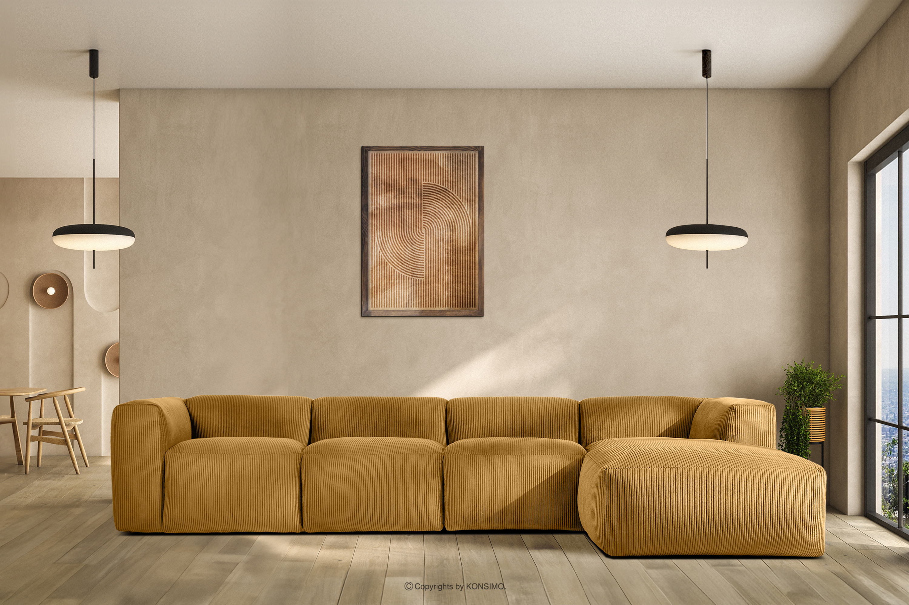 BUFFO Großes modulares Ecksofa für das Wohnzimmer aus gelbem Kordstoff links