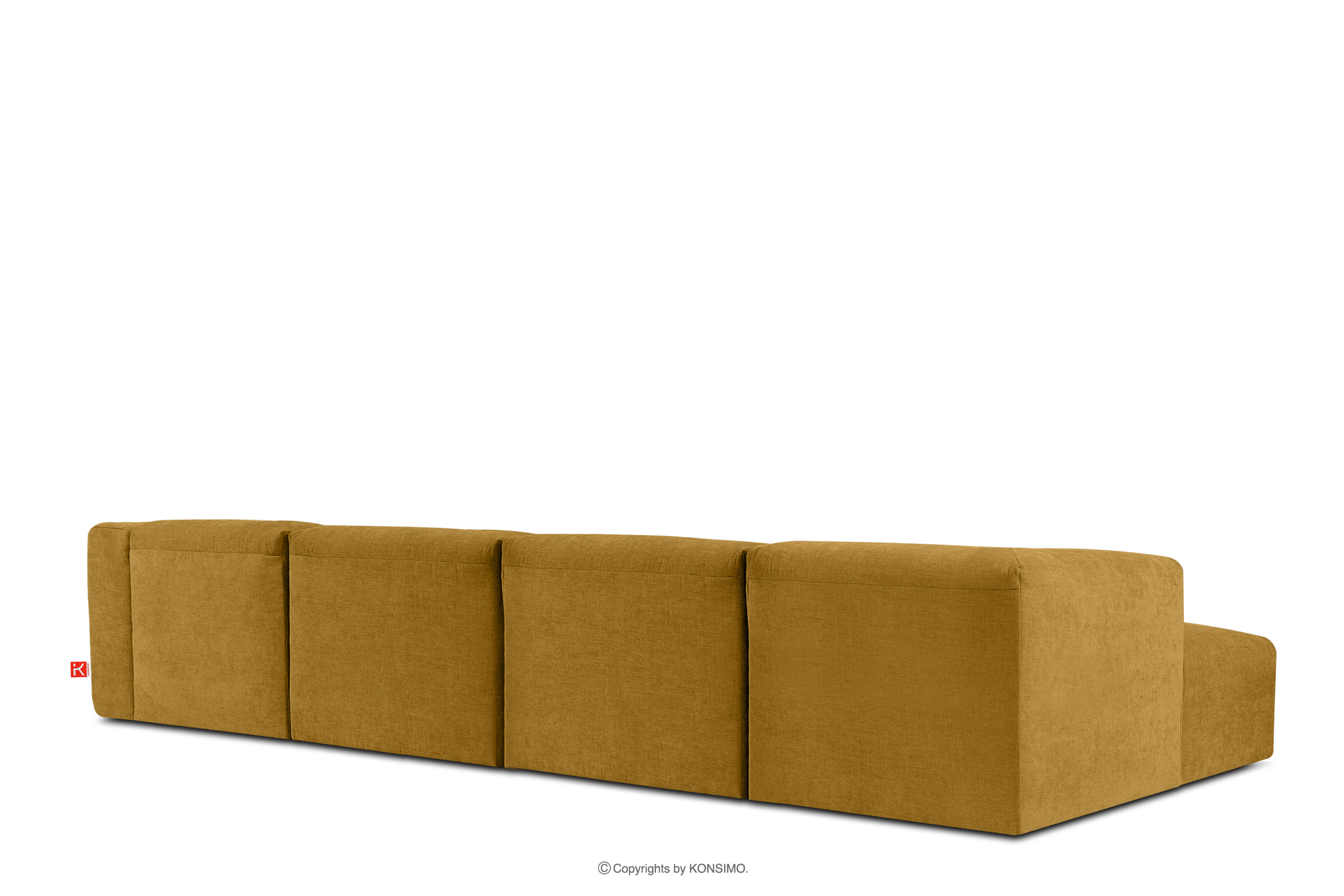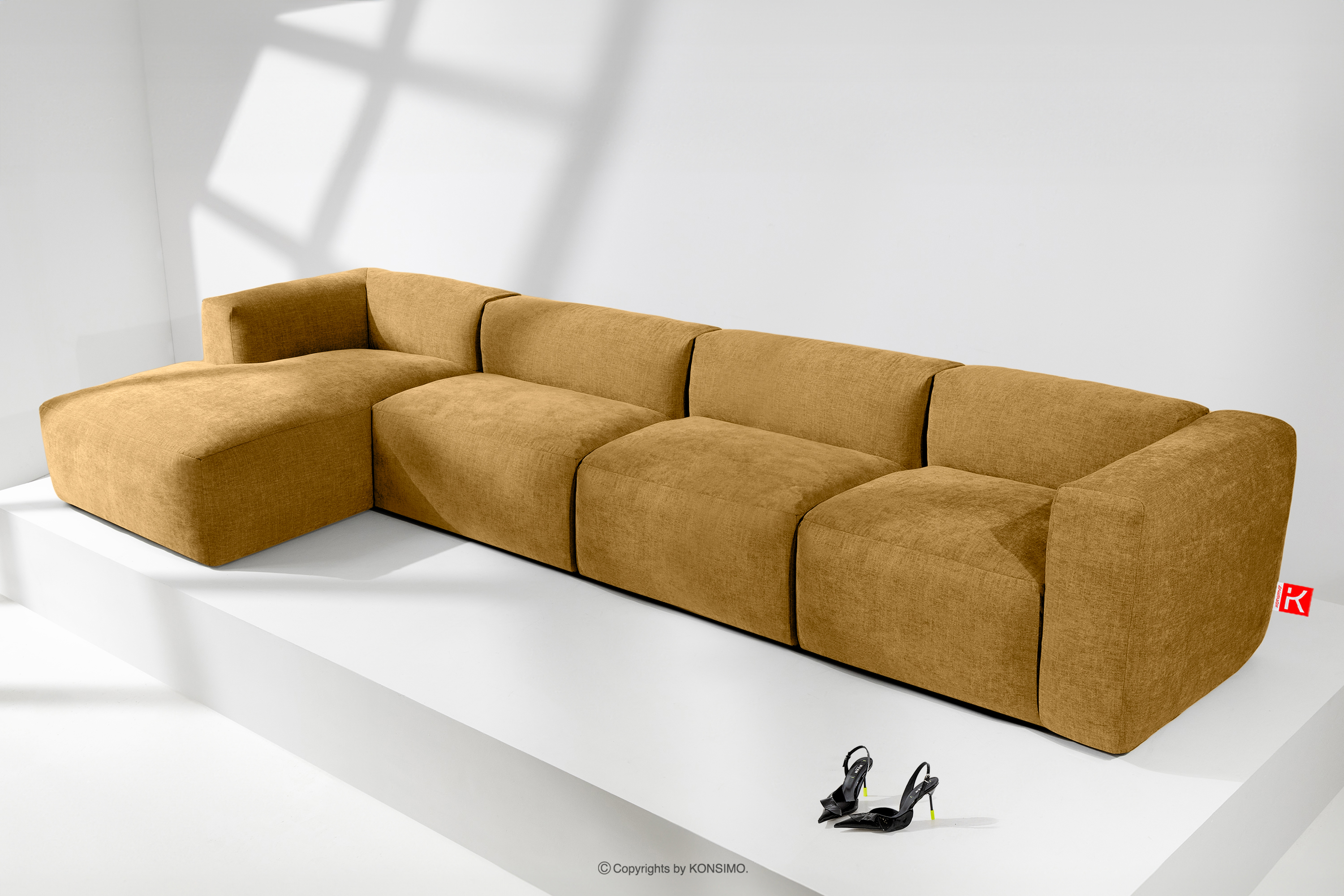 BUFFO Großes modulares Wohnzimmer-Ecksofa aus honigfarbenem Gewebestoff, links