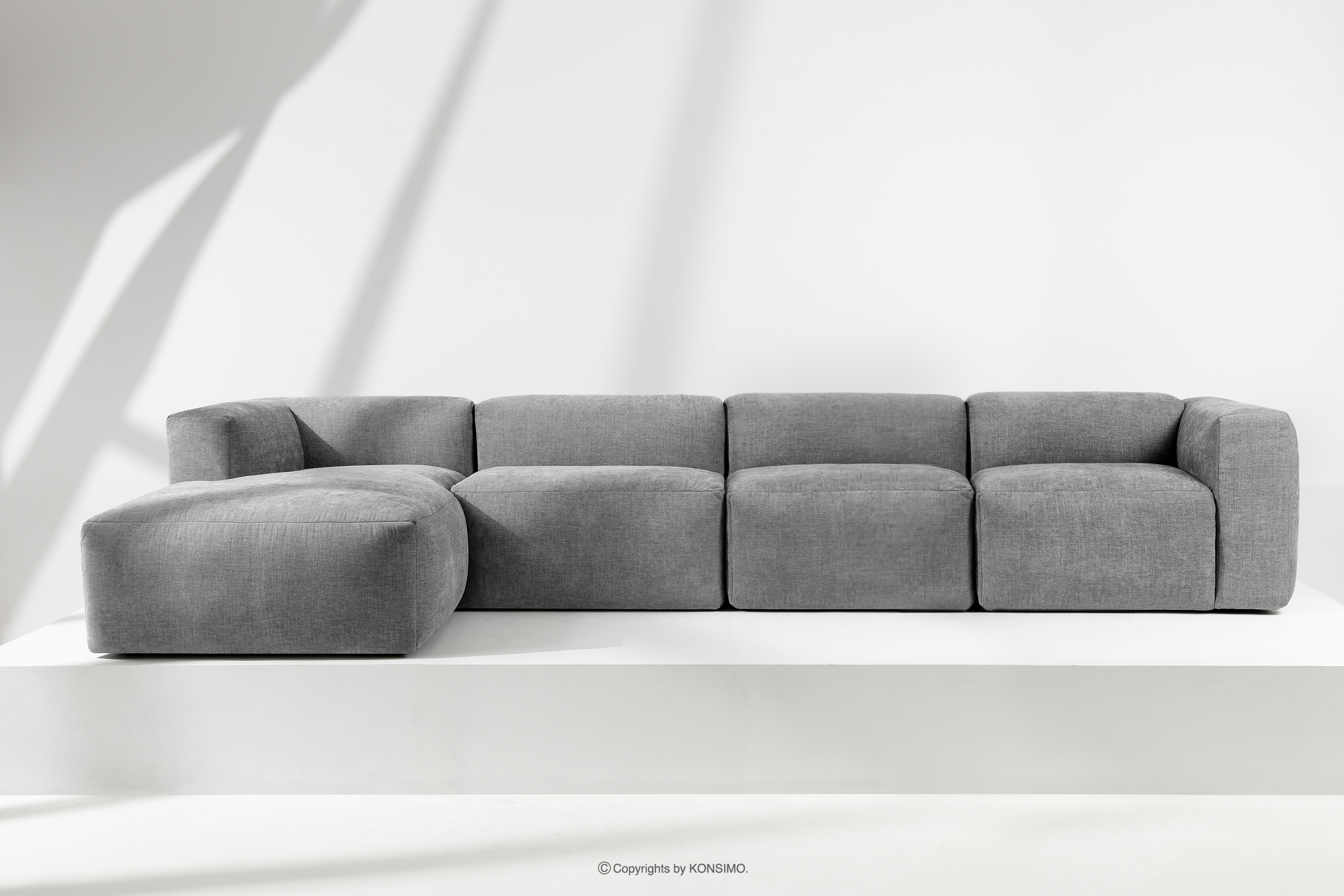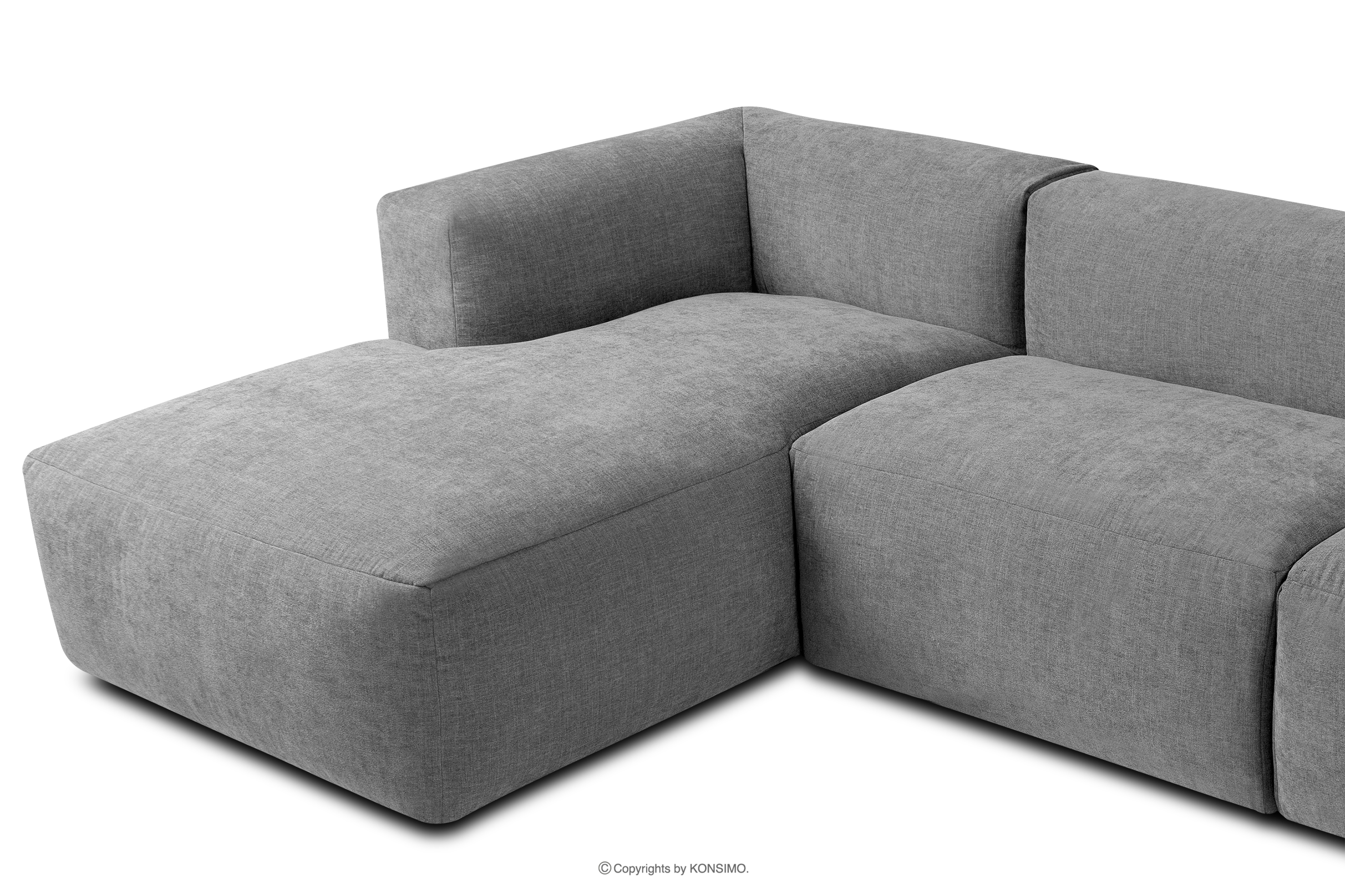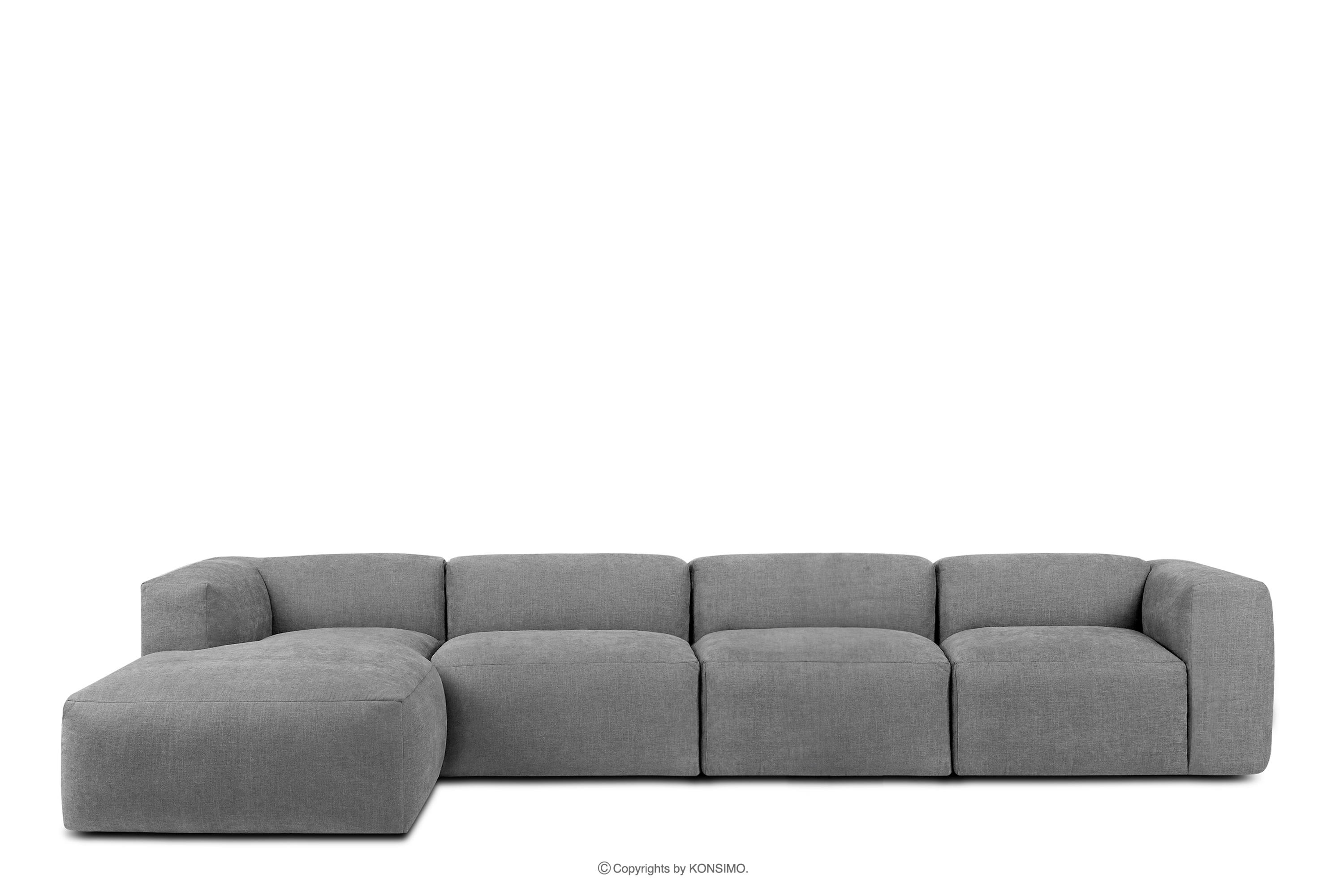 BUFFO Mehr aus der Kollektion Großes modulares Wohnzimmer-Ecksofa aus hellgrauem/aschgrauem Gewebestoff, links- Farbe hell aschfahl