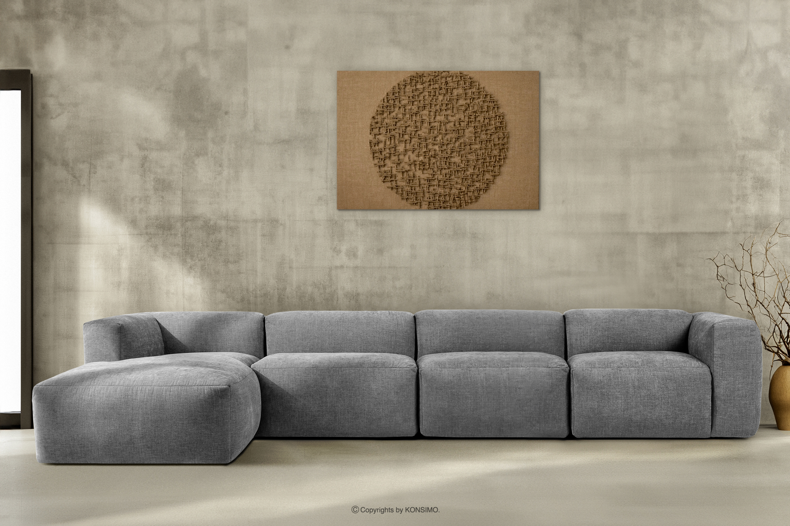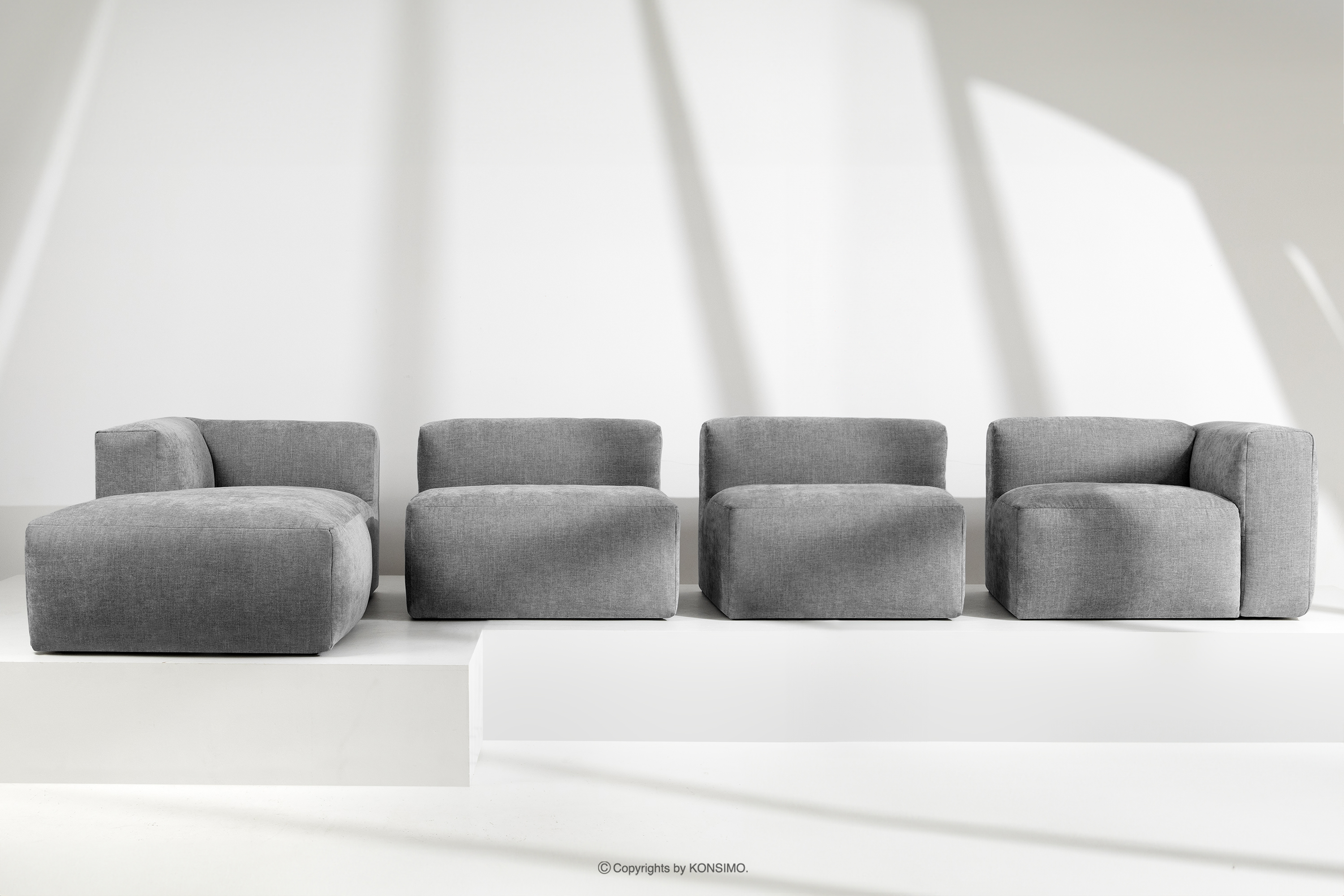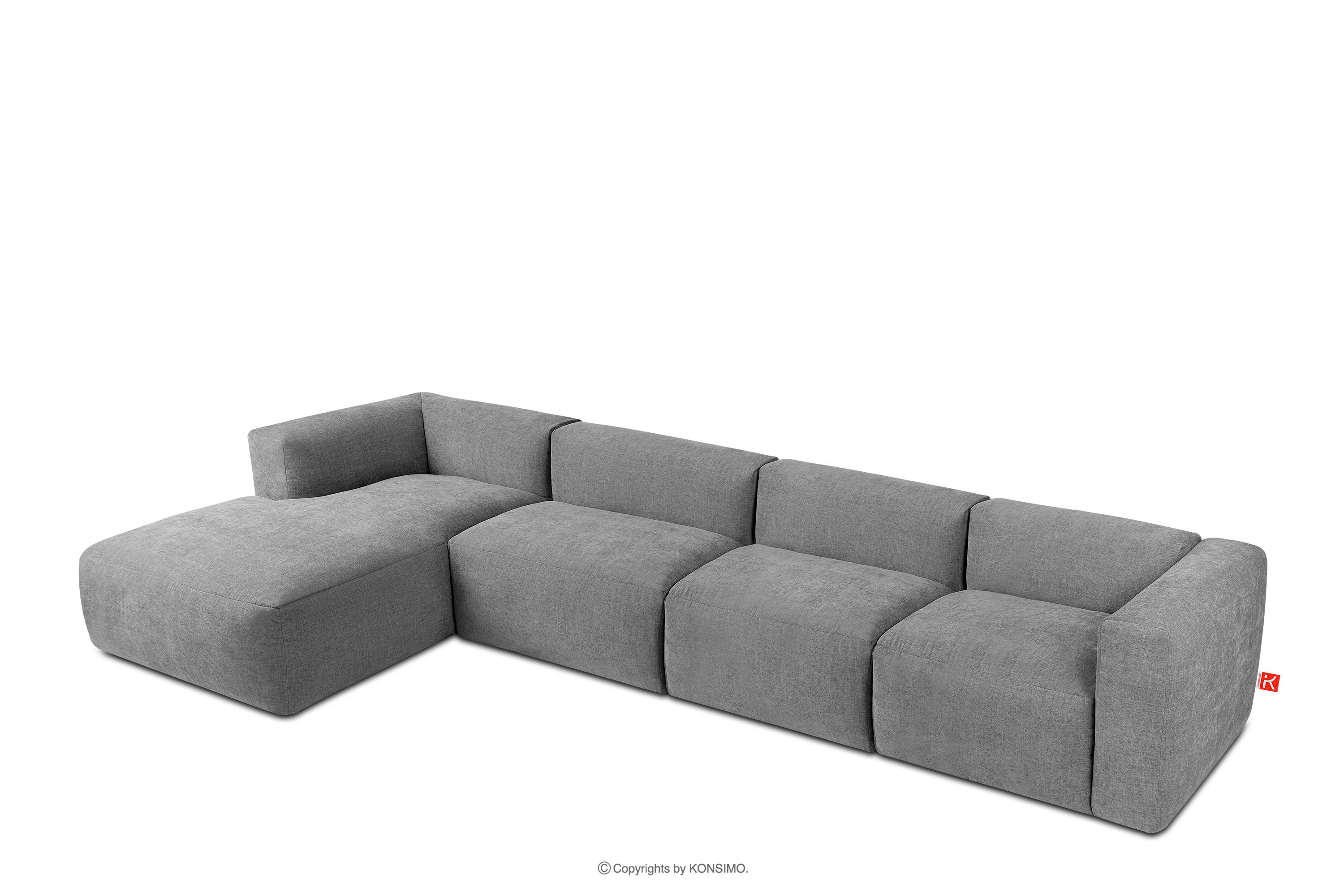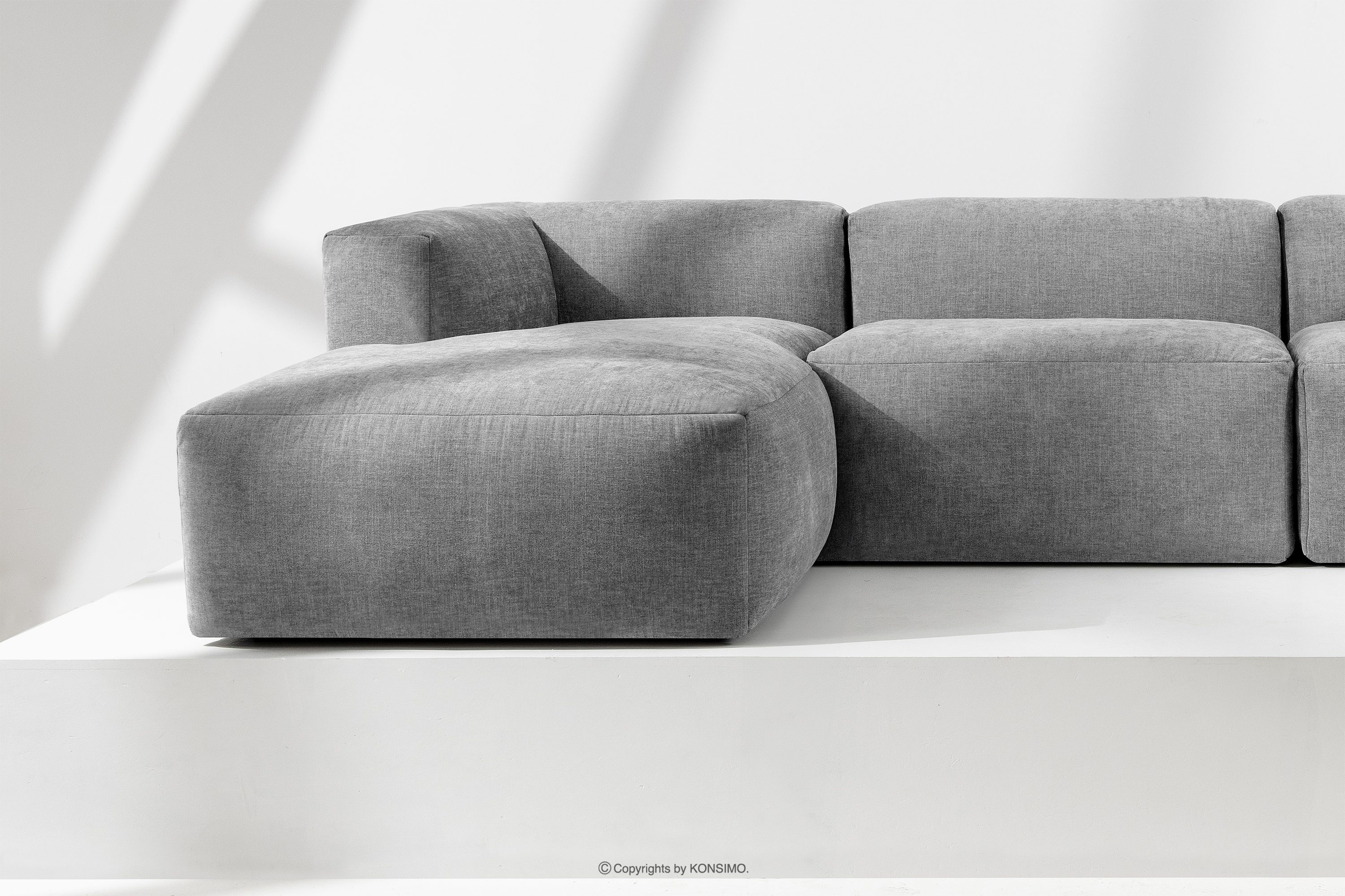 BUFFO Mehr aus der Kollektion Großes modulares Wohnzimmer-Ecksofa aus hellgrauem/aschgrauem Gewebestoff, links- Farbe hell aschfahl