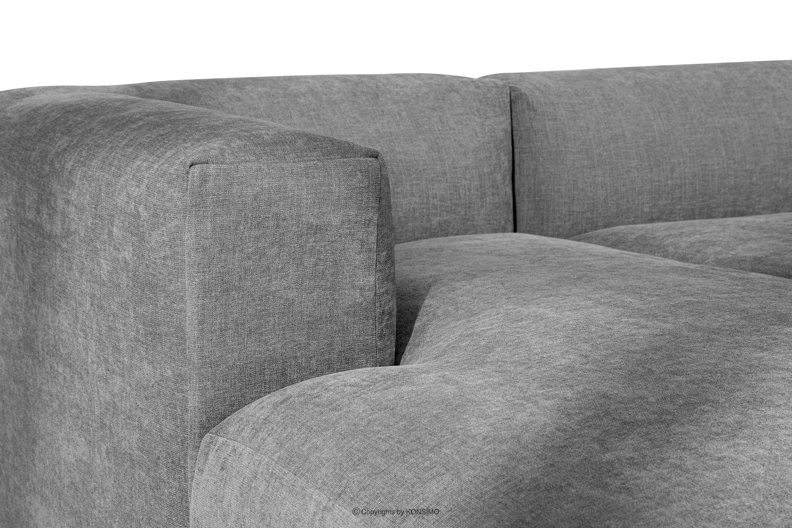 für das Produkt Großes modulares Wohnzimmer-Ecksofa aus hellgrauem/aschgrauem Gewebestoff, links