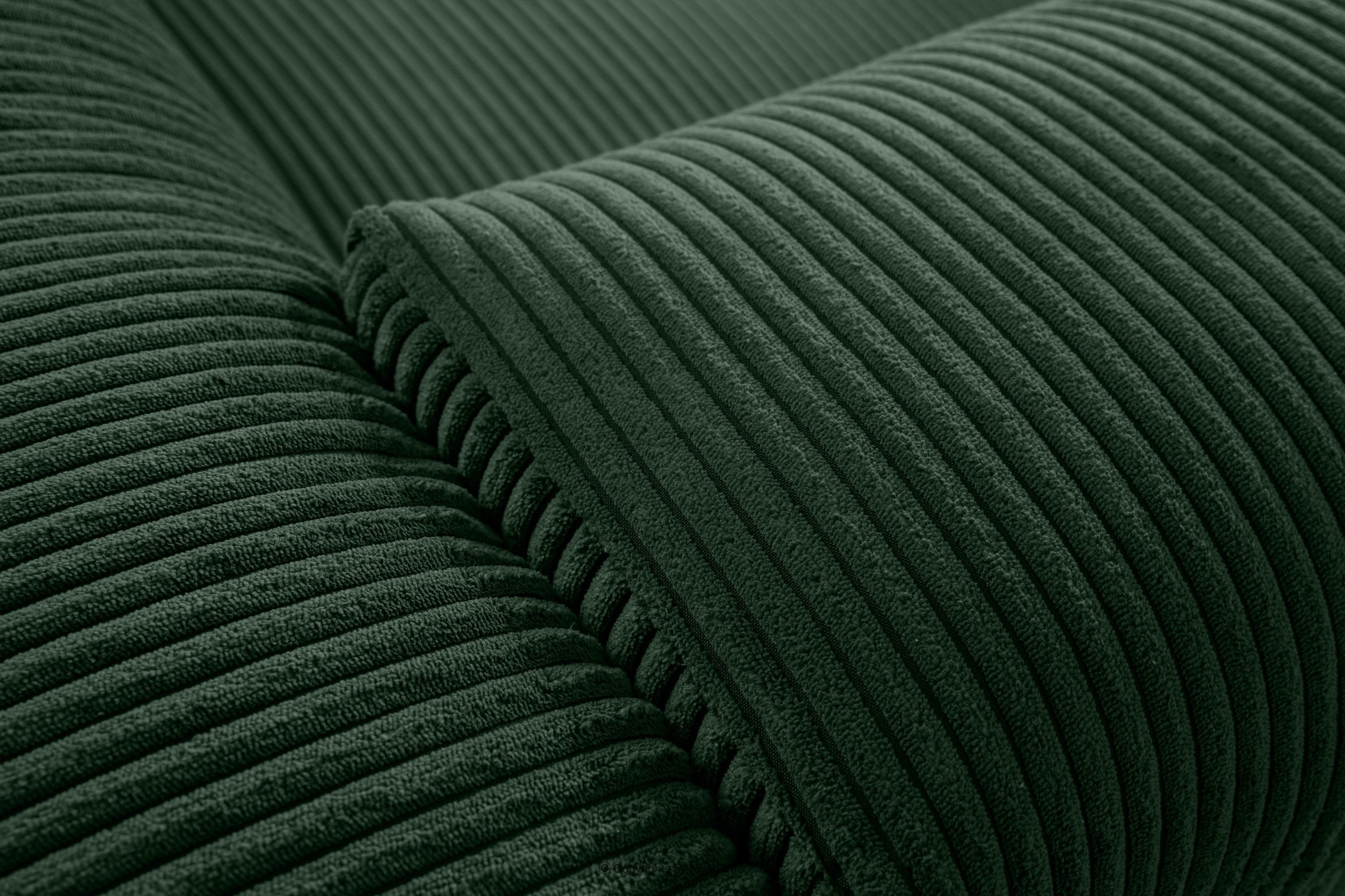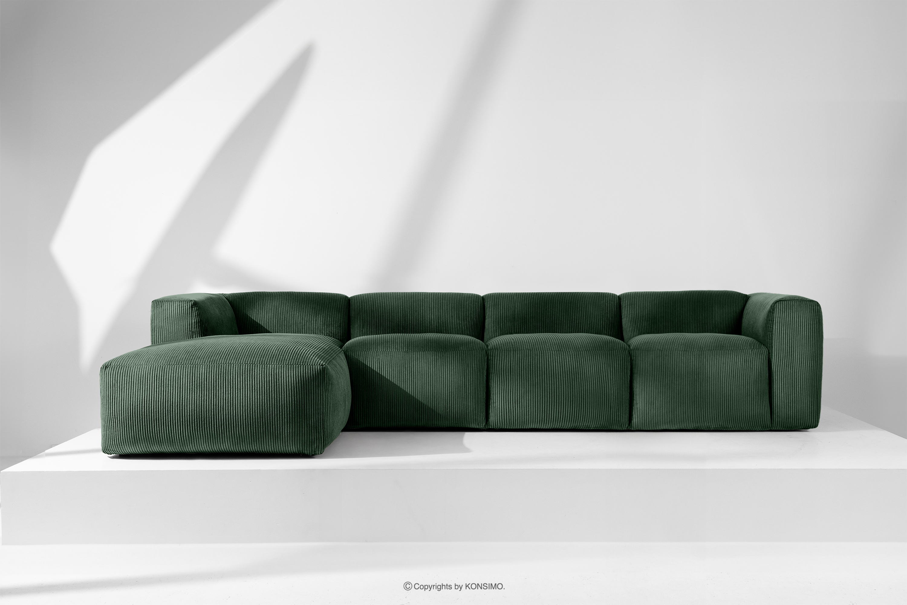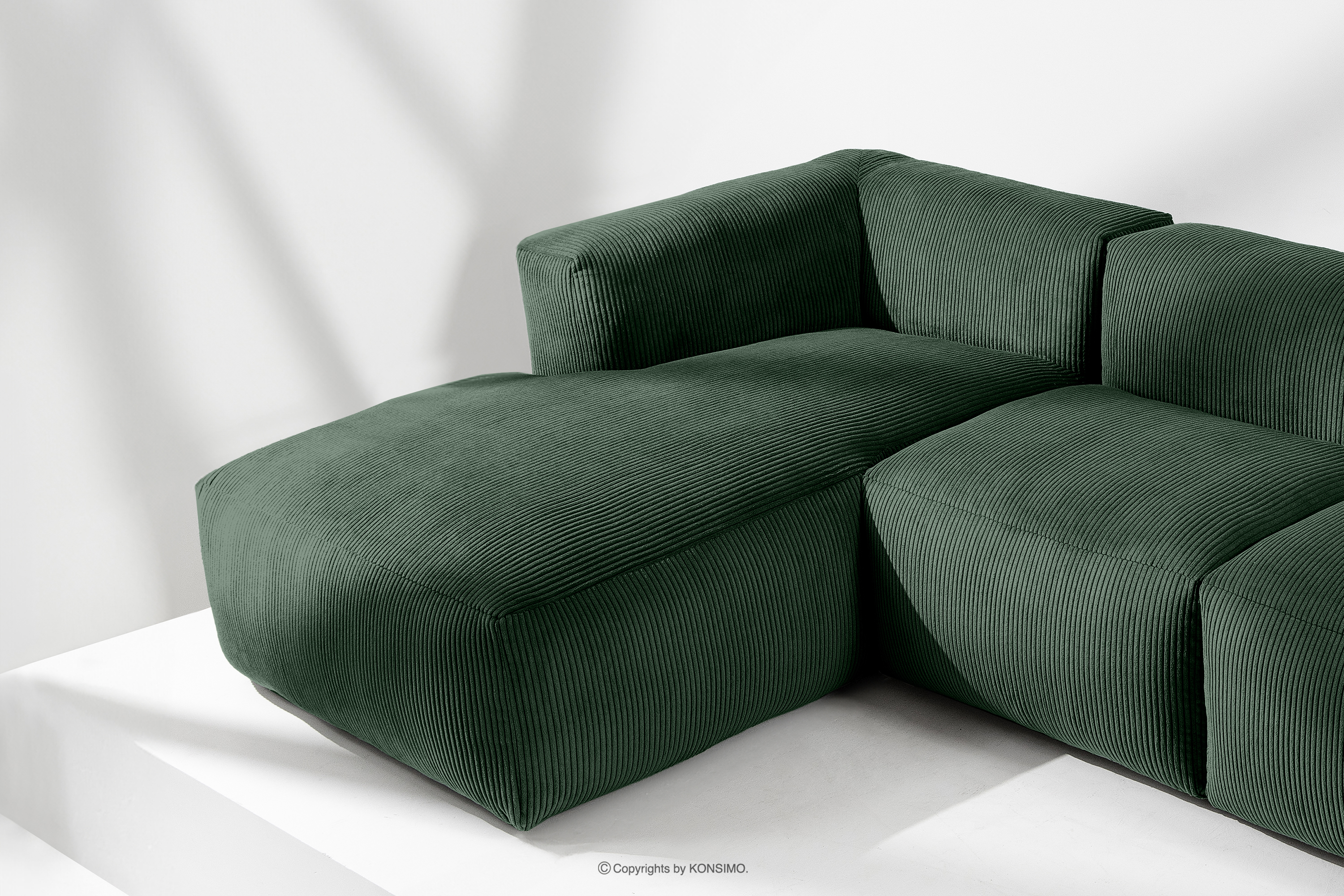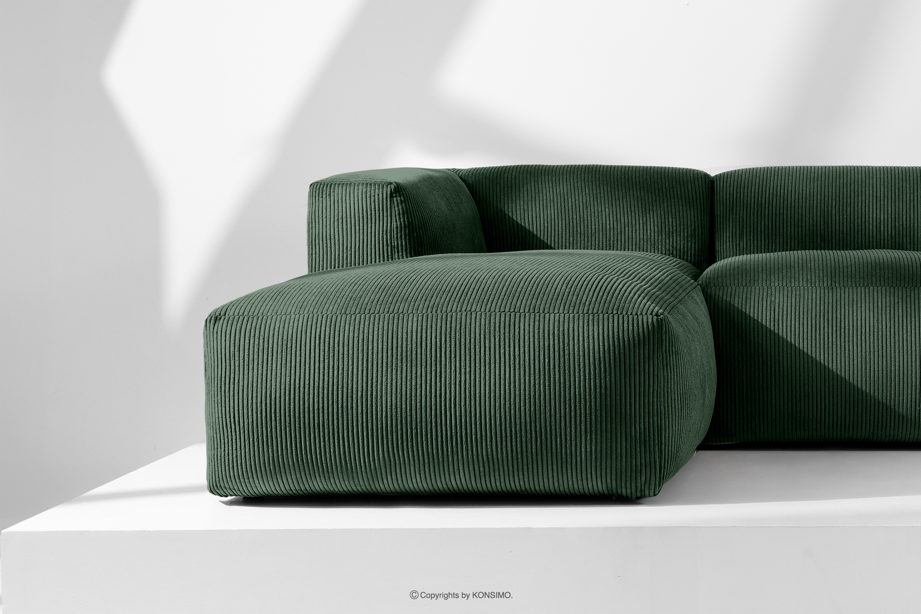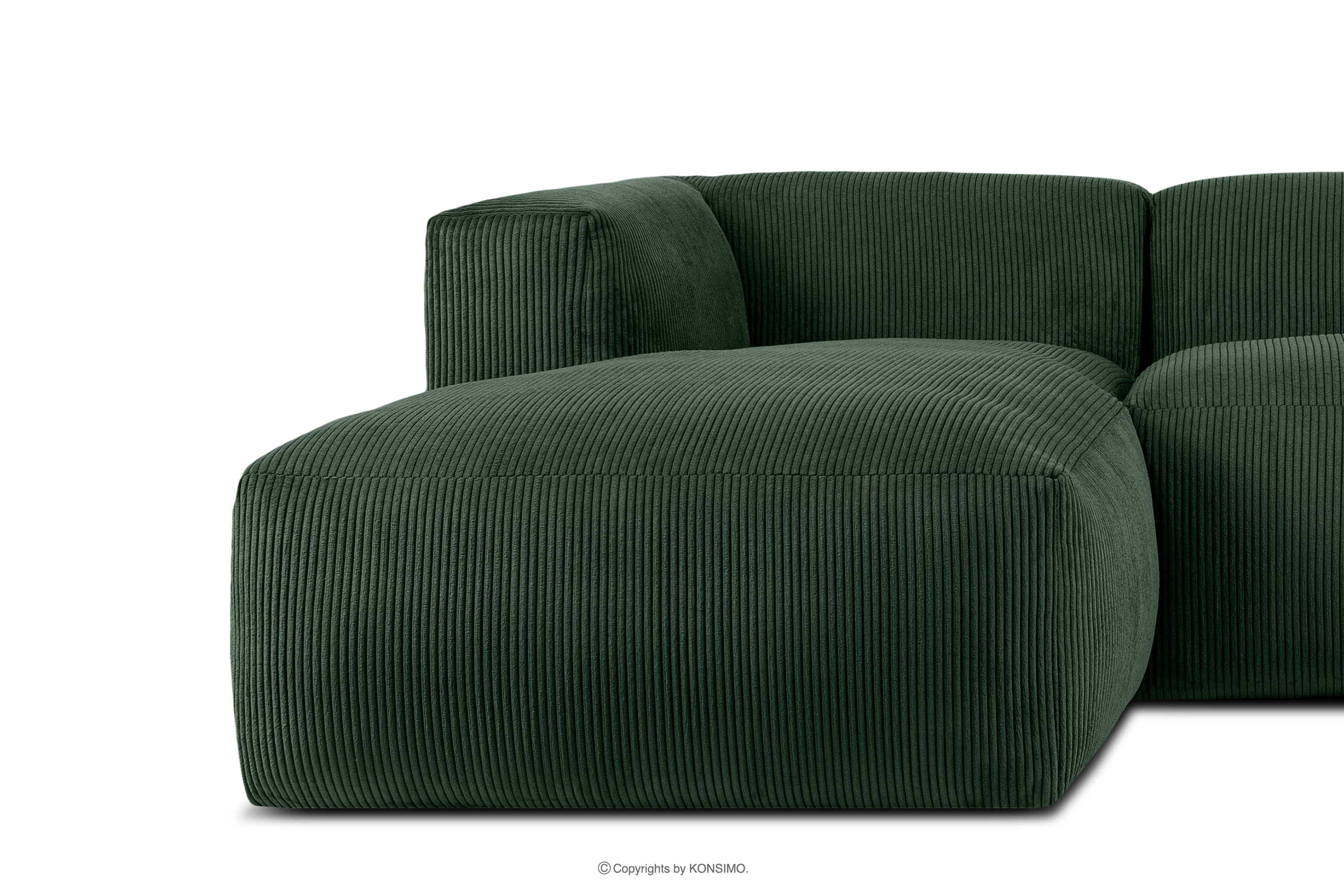 BUFFO Großes modulares Ecksofa für das Wohnzimmer aus Kordstoff dunkelgrün links
