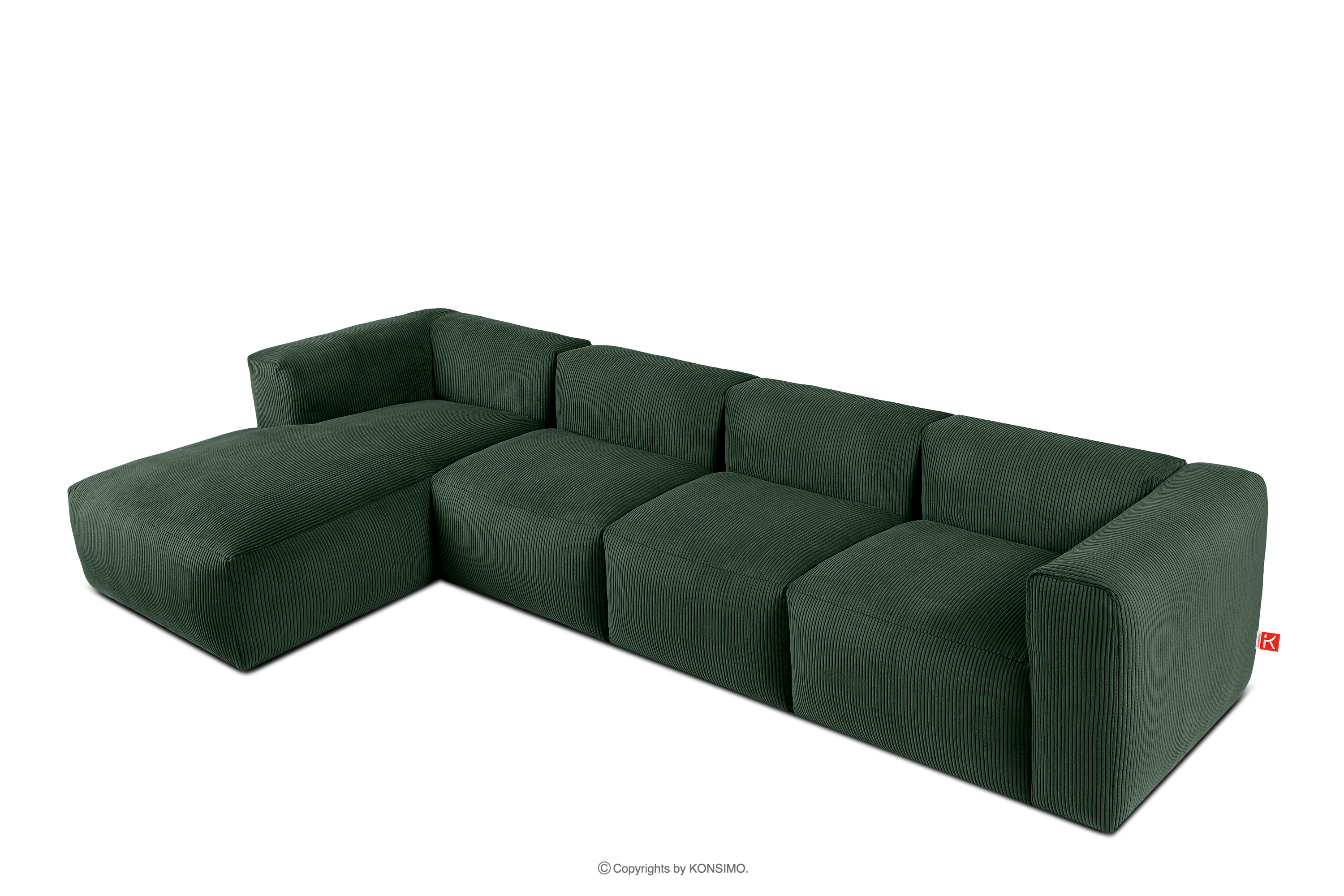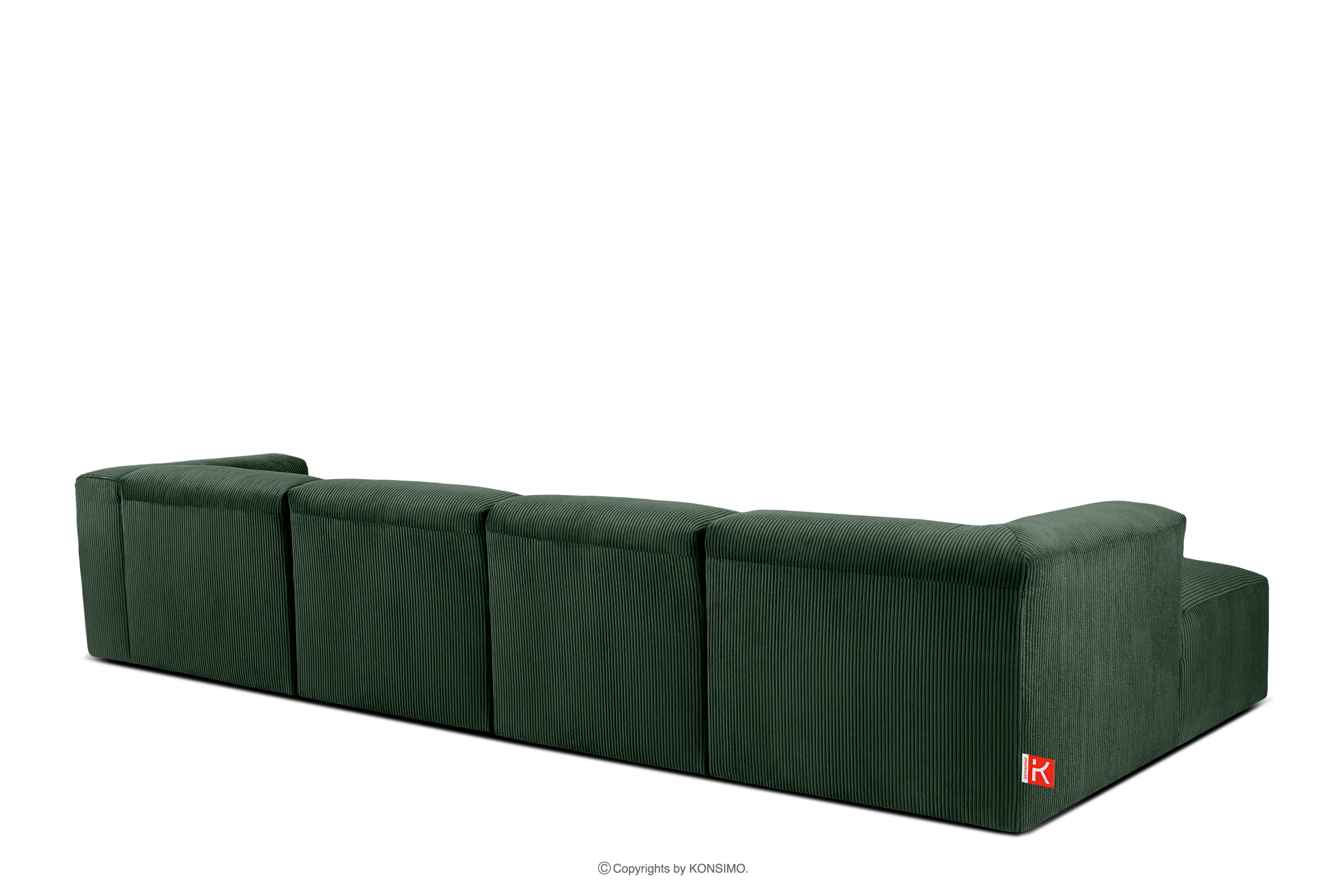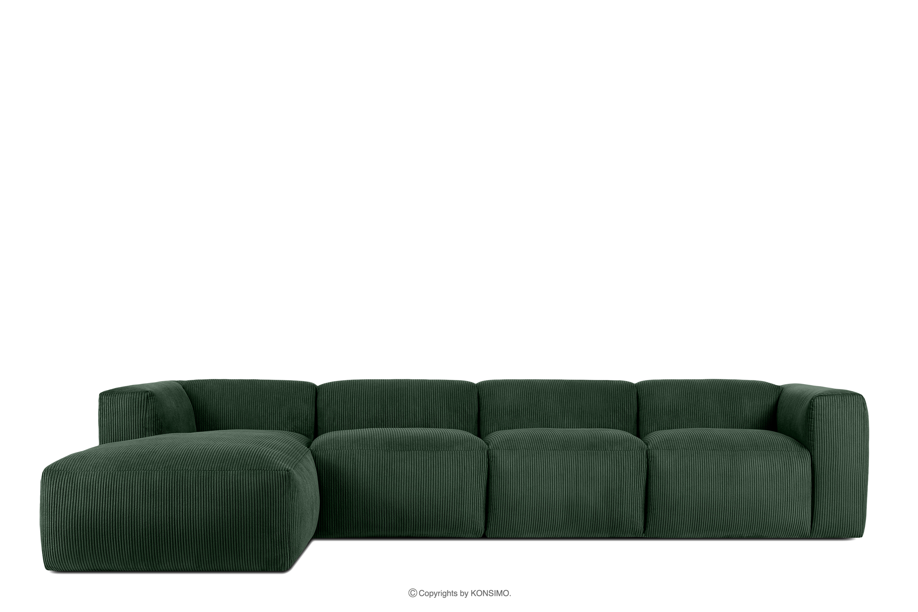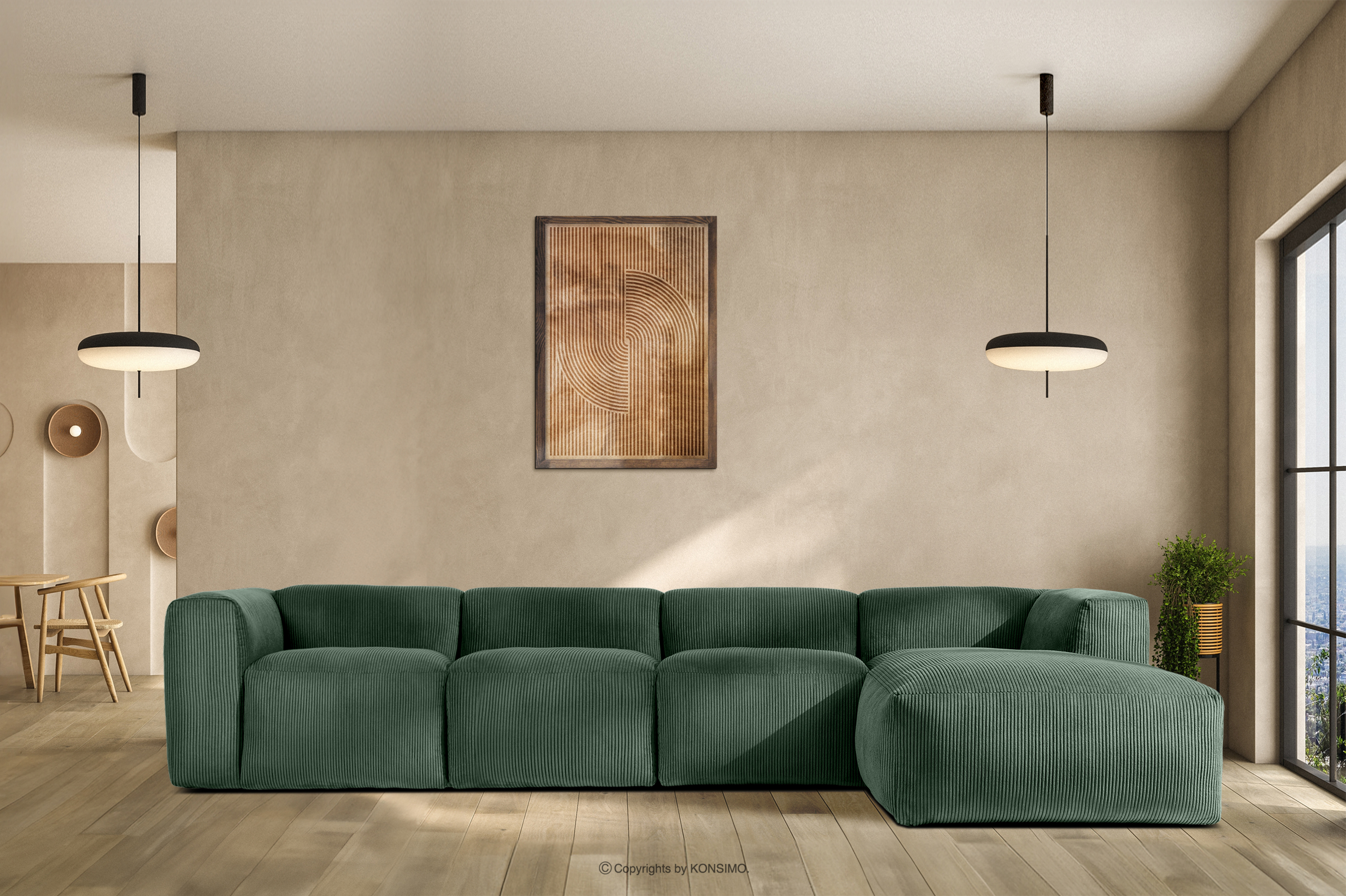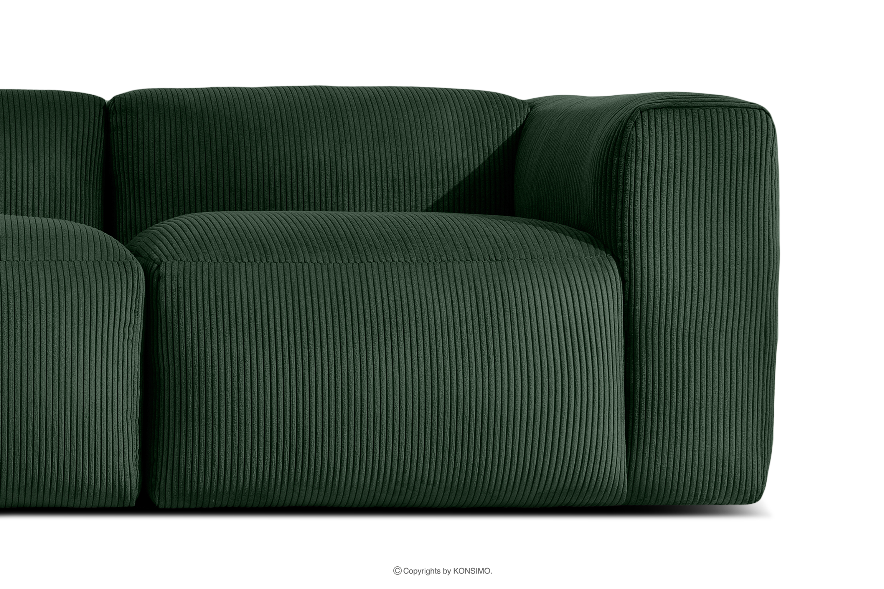 BUFFO Großes modulares Ecksofa für das Wohnzimmer aus Kordstoff dunkelgrün links