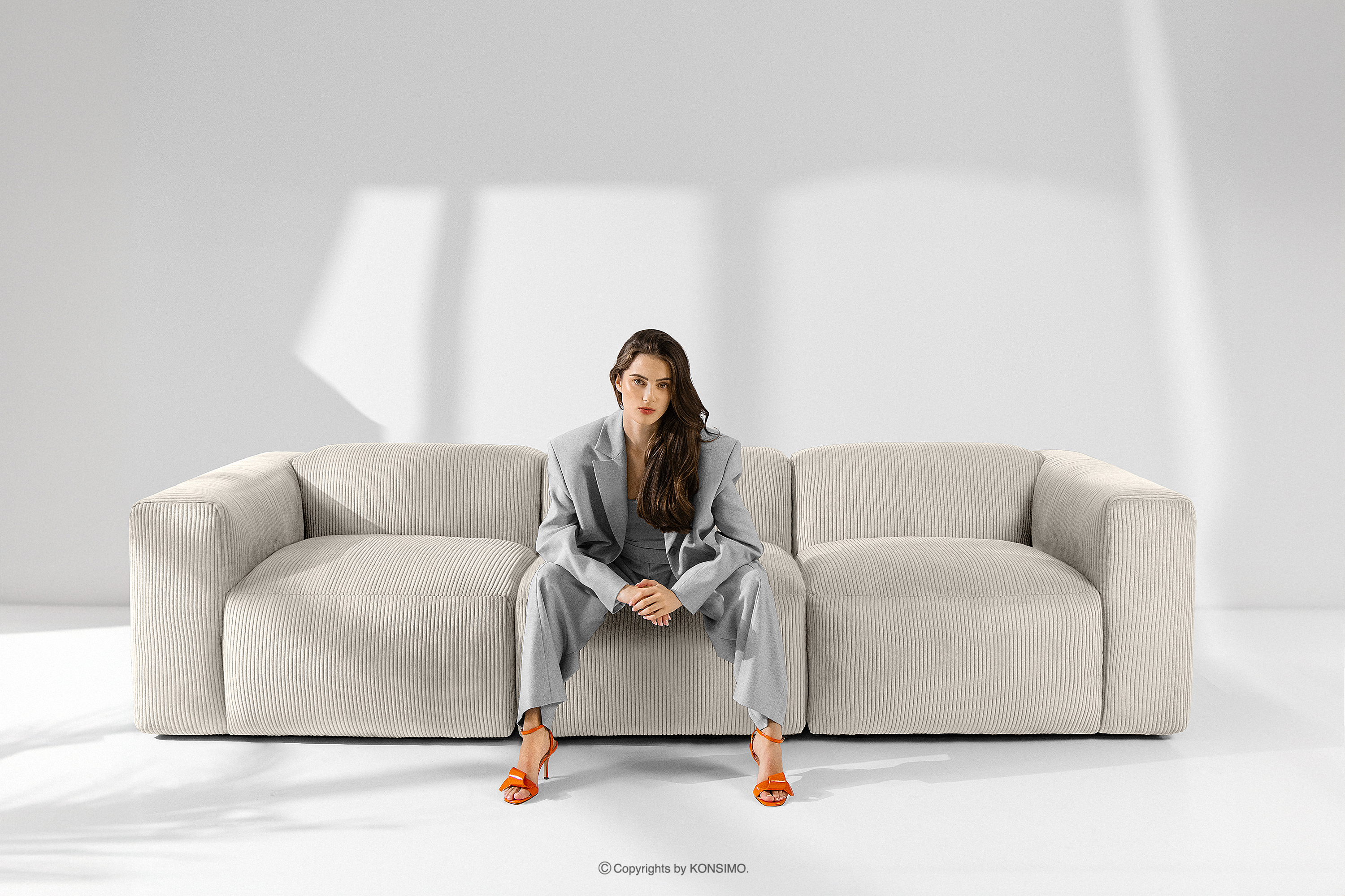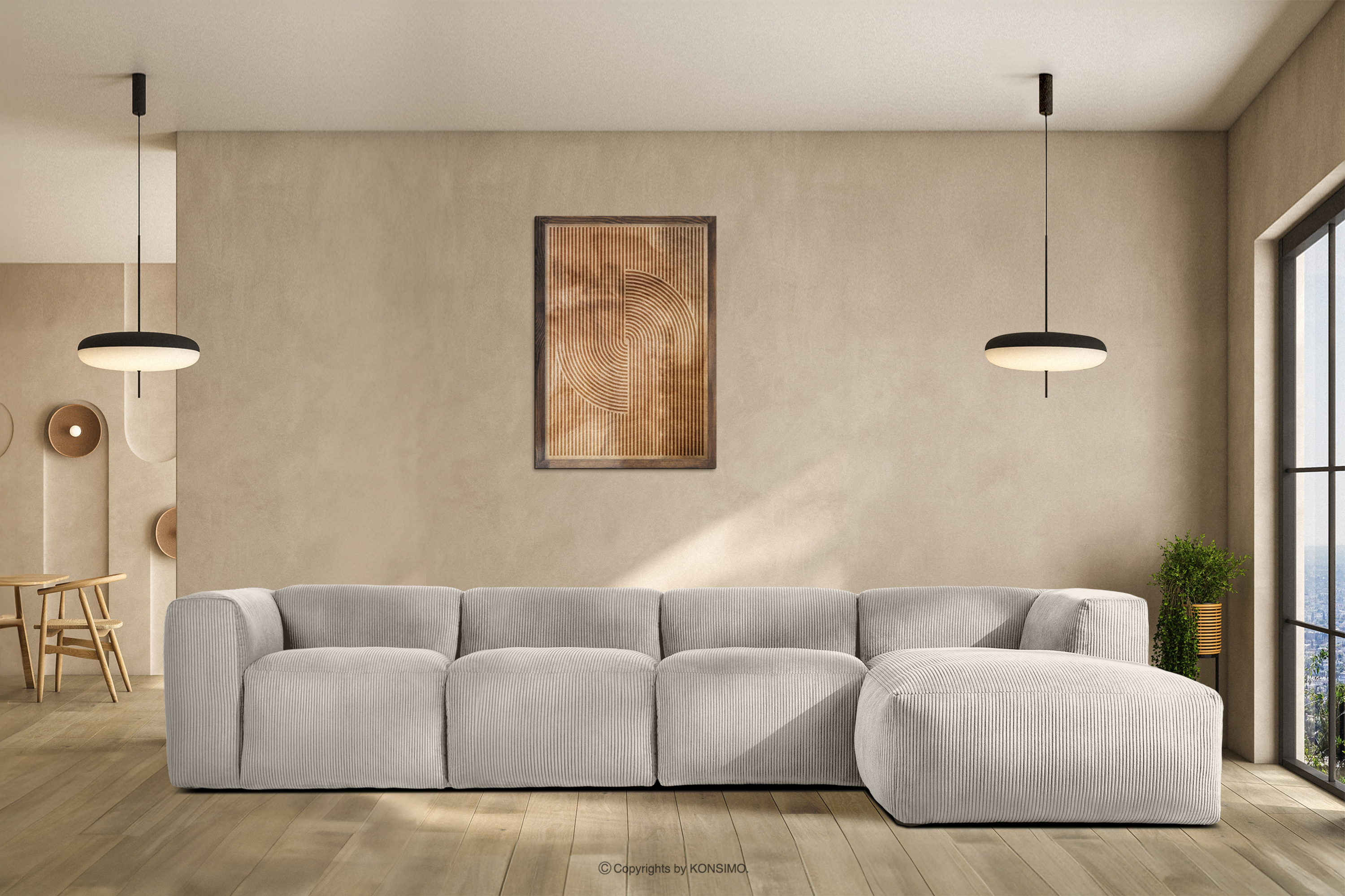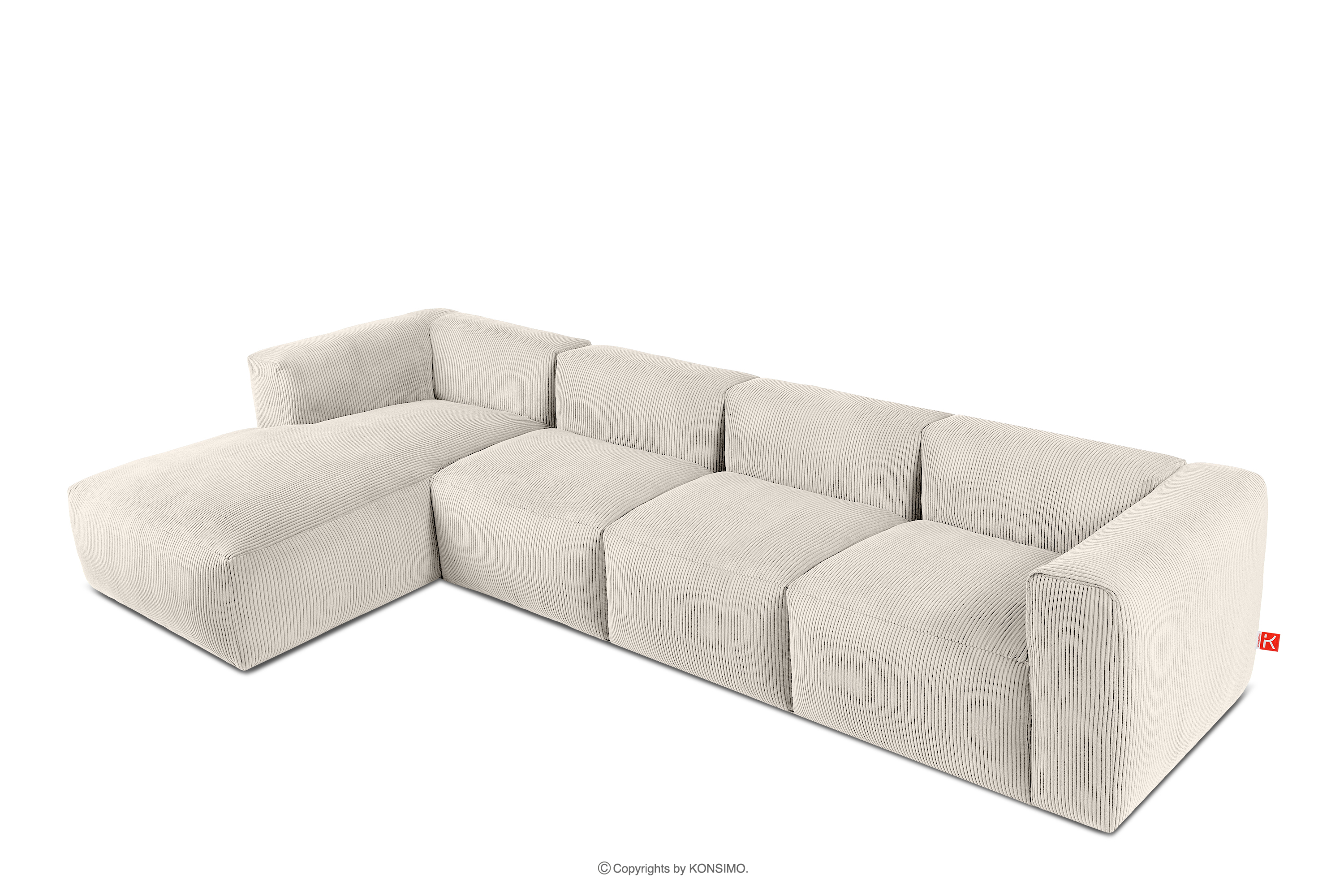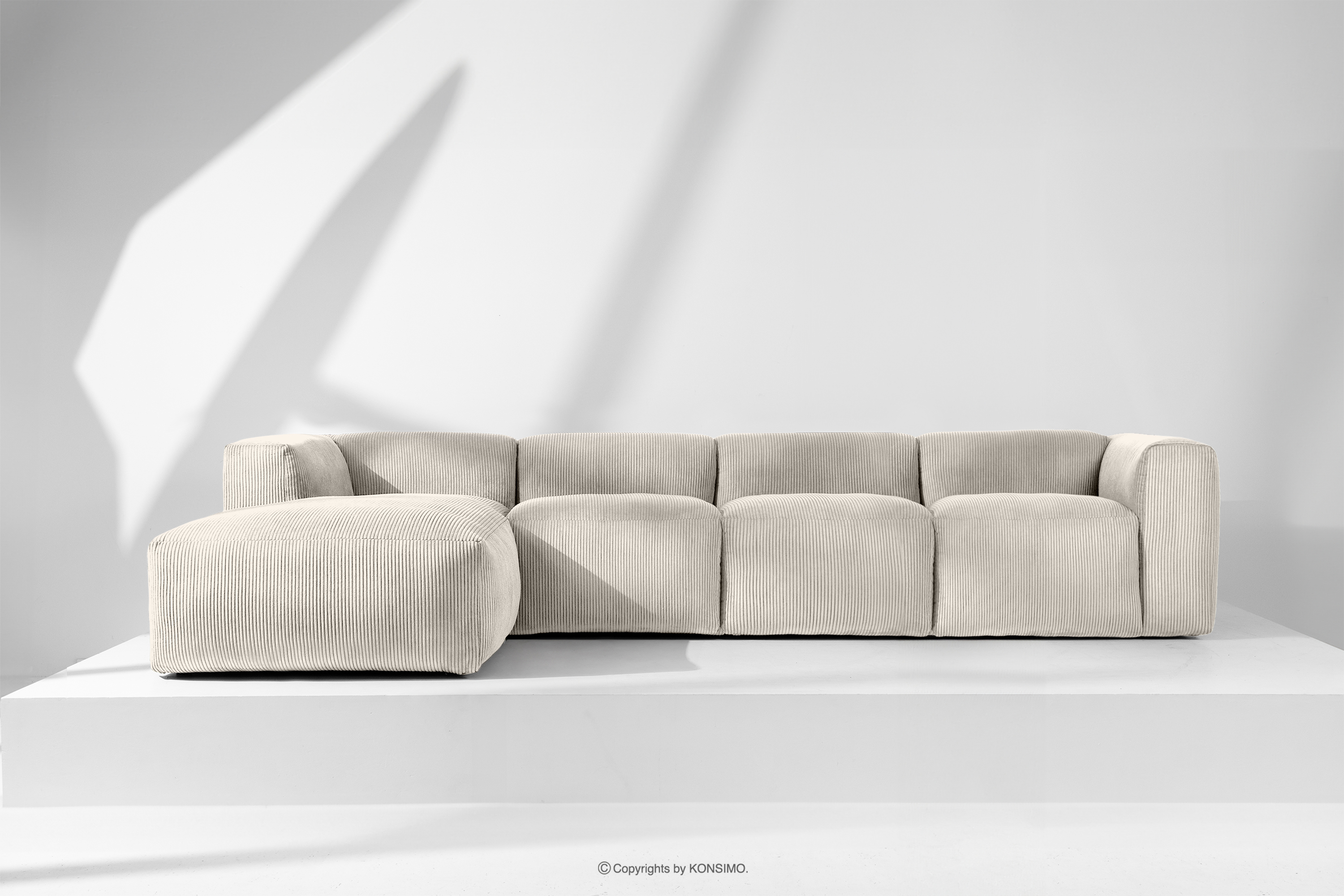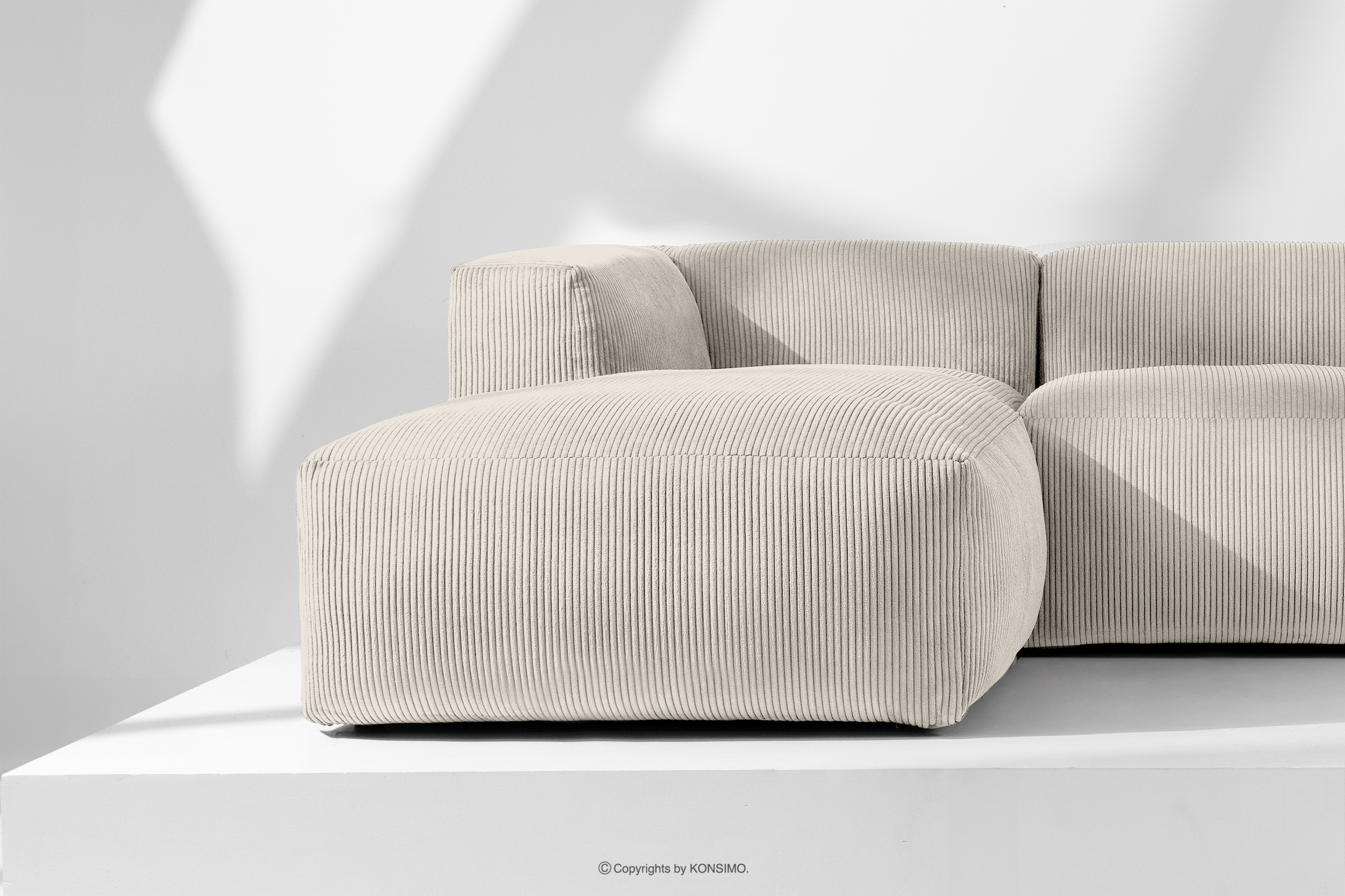 BUFFO Großes modulares Ecksofa für das Wohnzimmer aus Kordstoff creme links