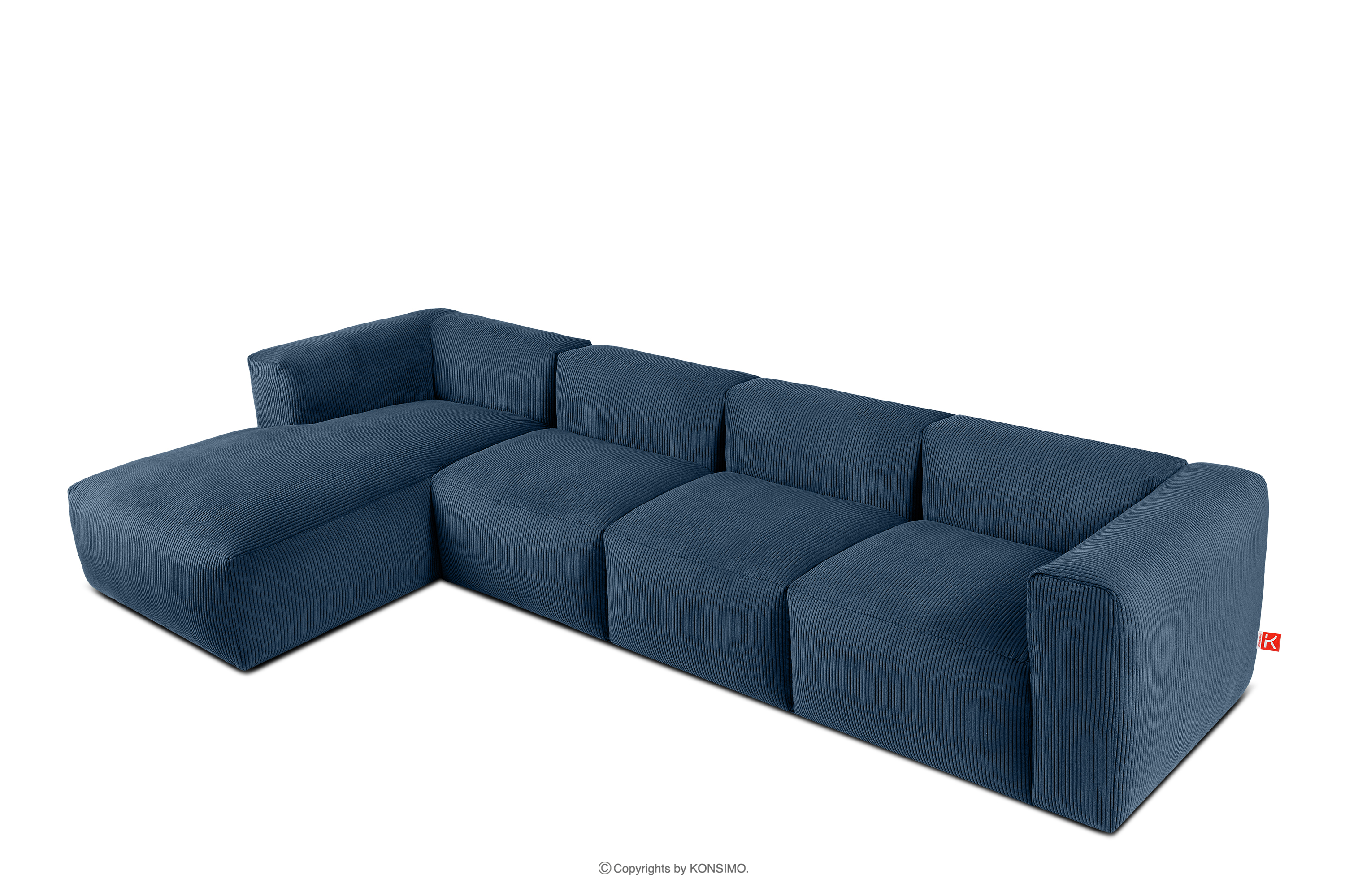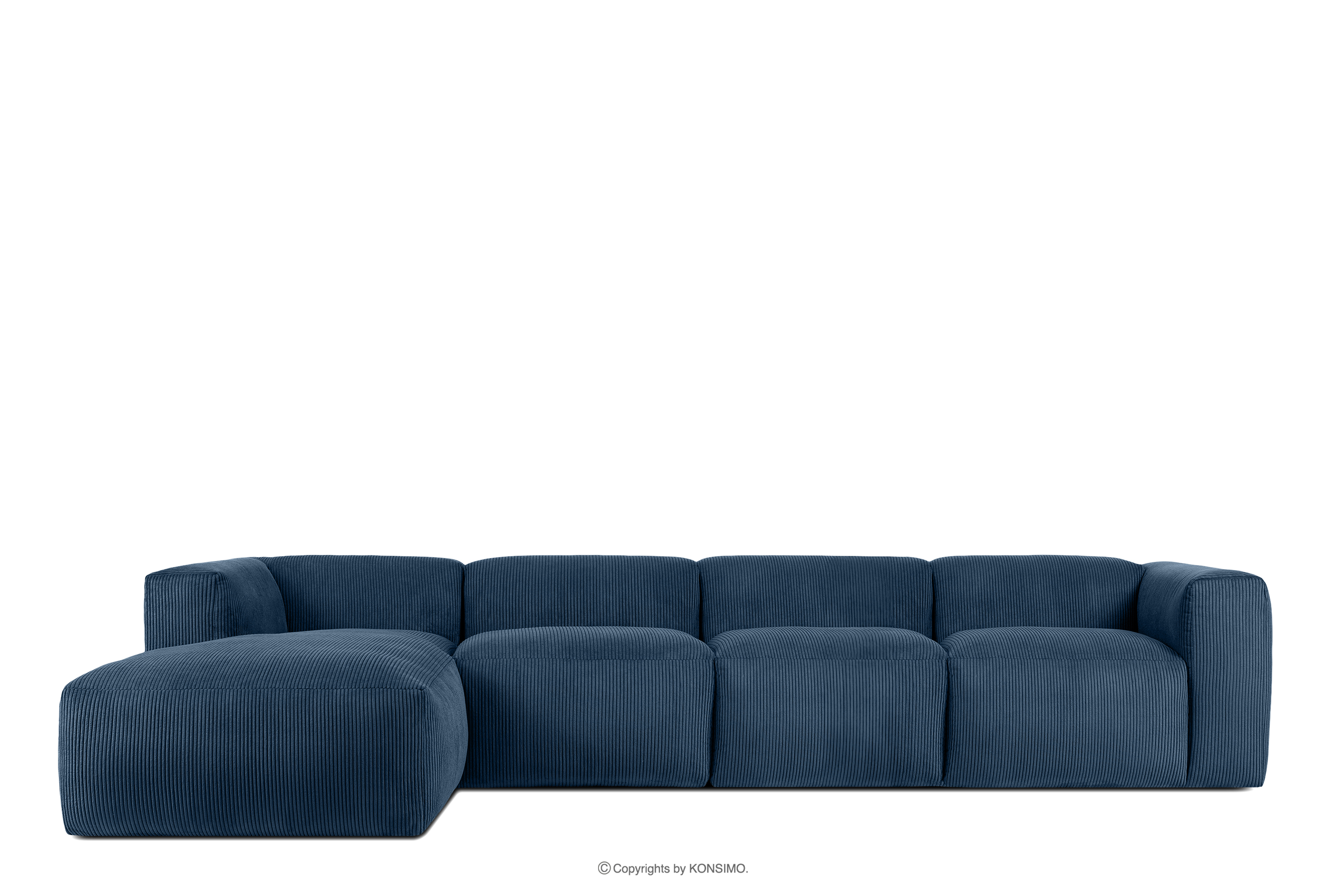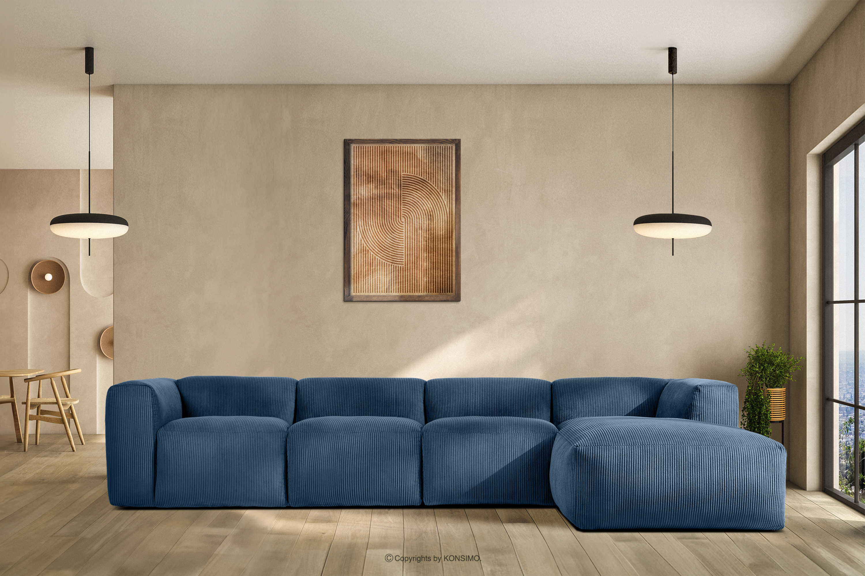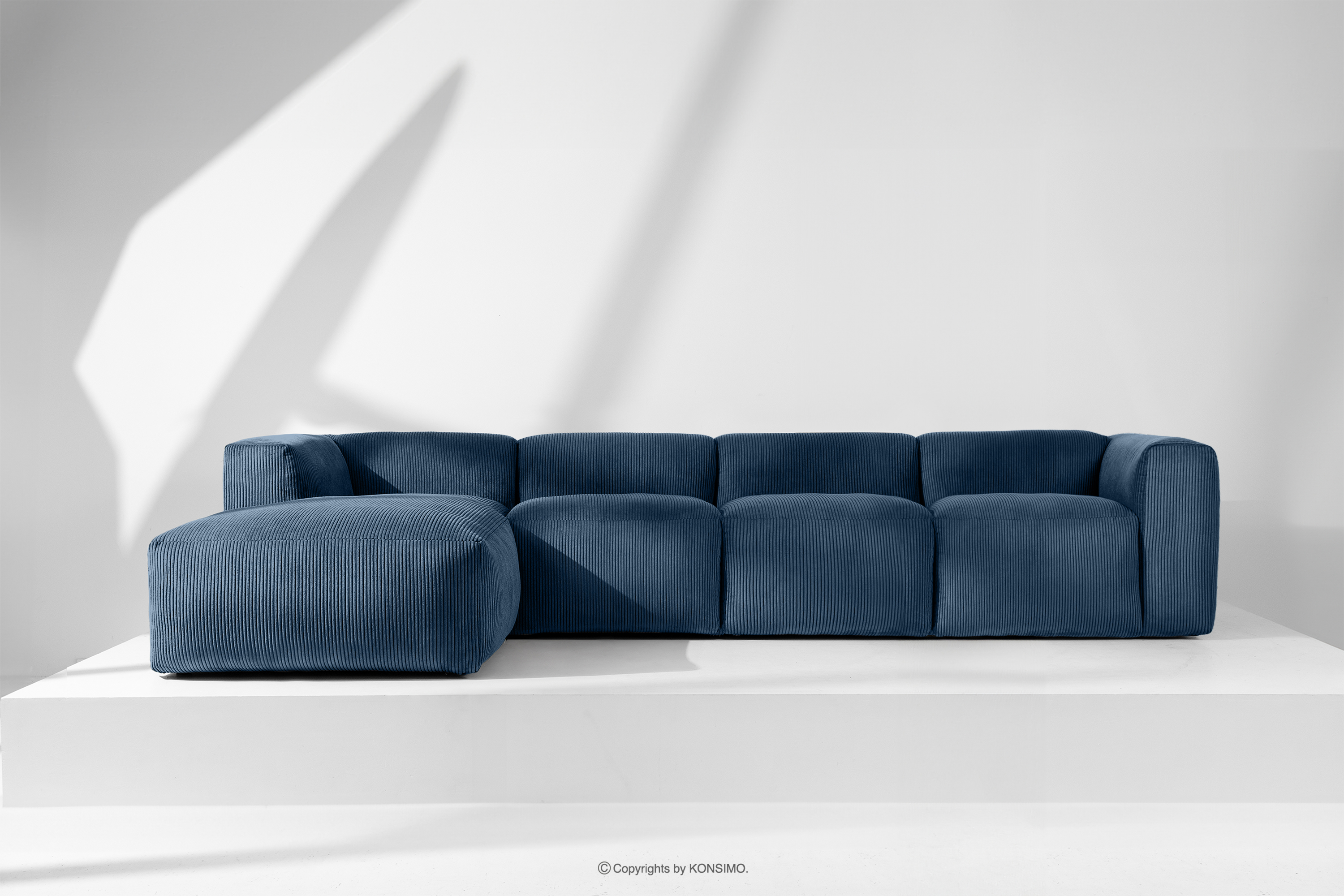 BUFFO Großes modulares Ecksofa für das Wohnzimmer aus Kordstoff navy blau links