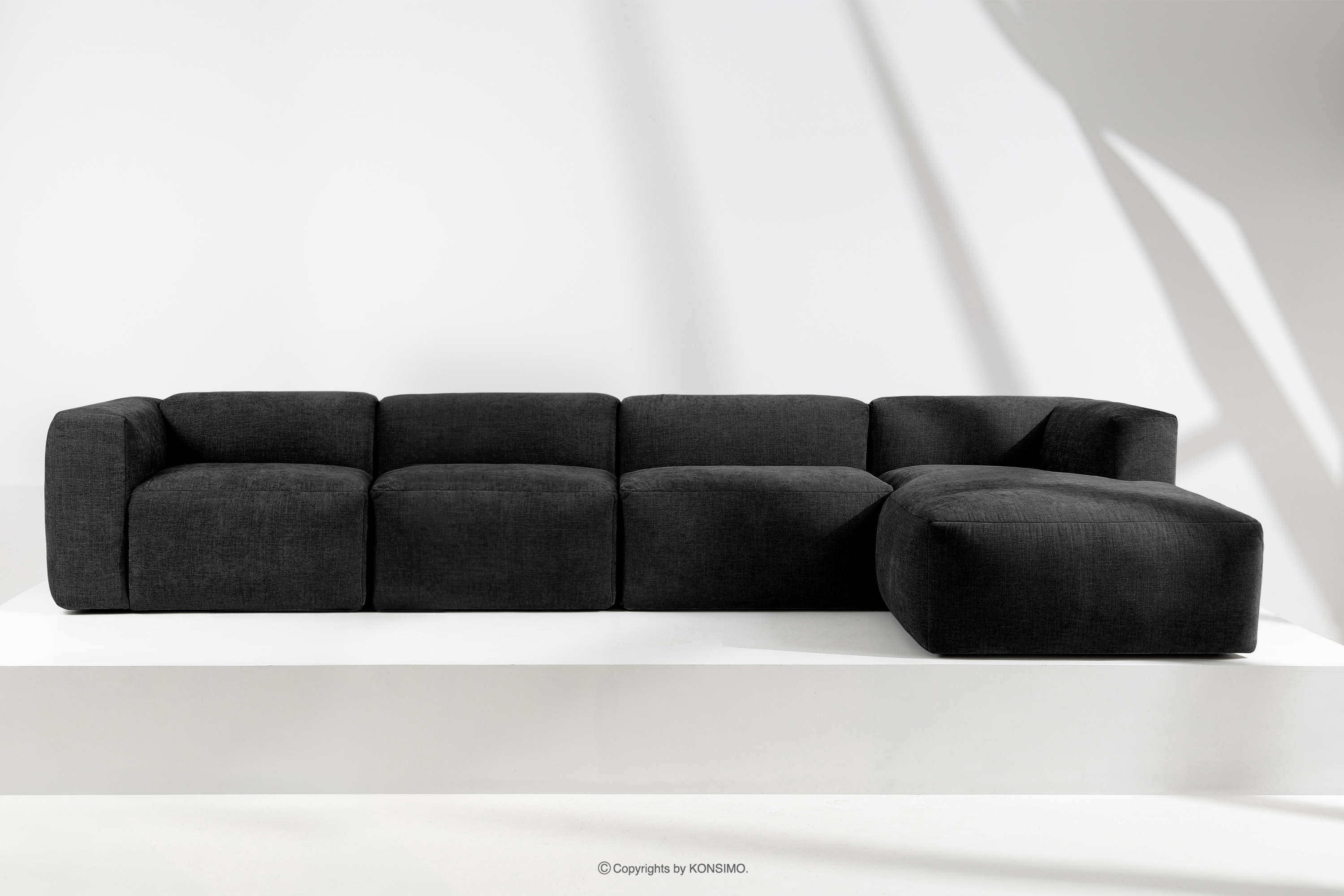 BUFFO Mehr aus der Kollektion Großes modulares Wohnzimmer-Ecksofa aus graphitfarbenem Gewebestoff, rechts- Farbe graphit