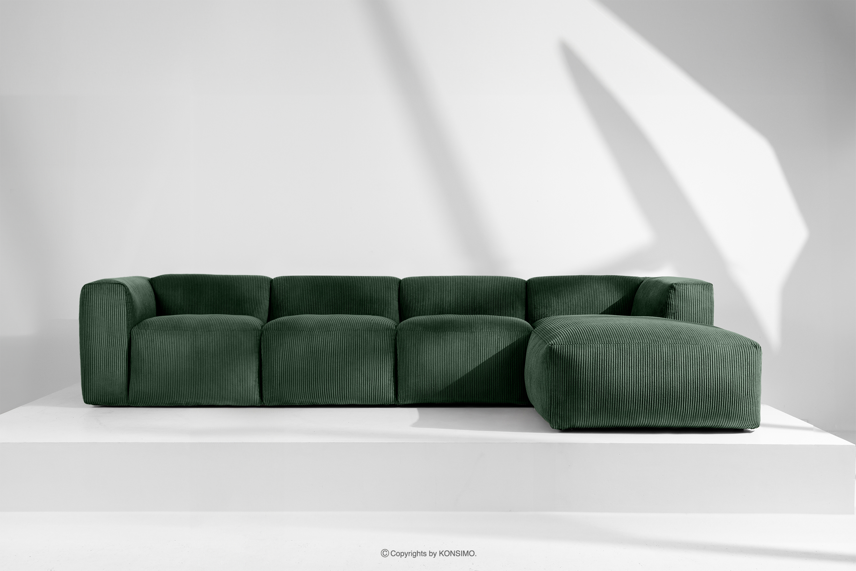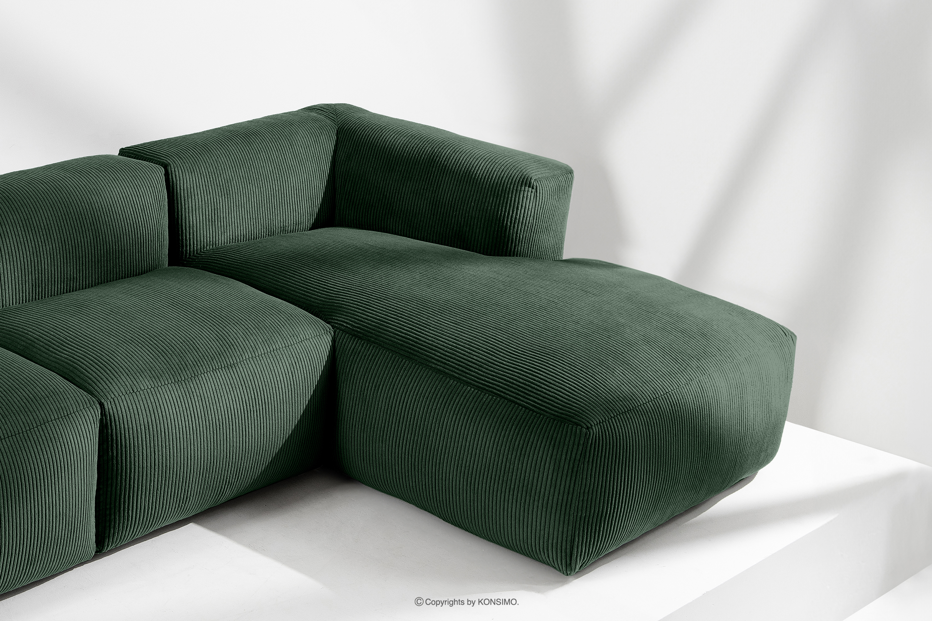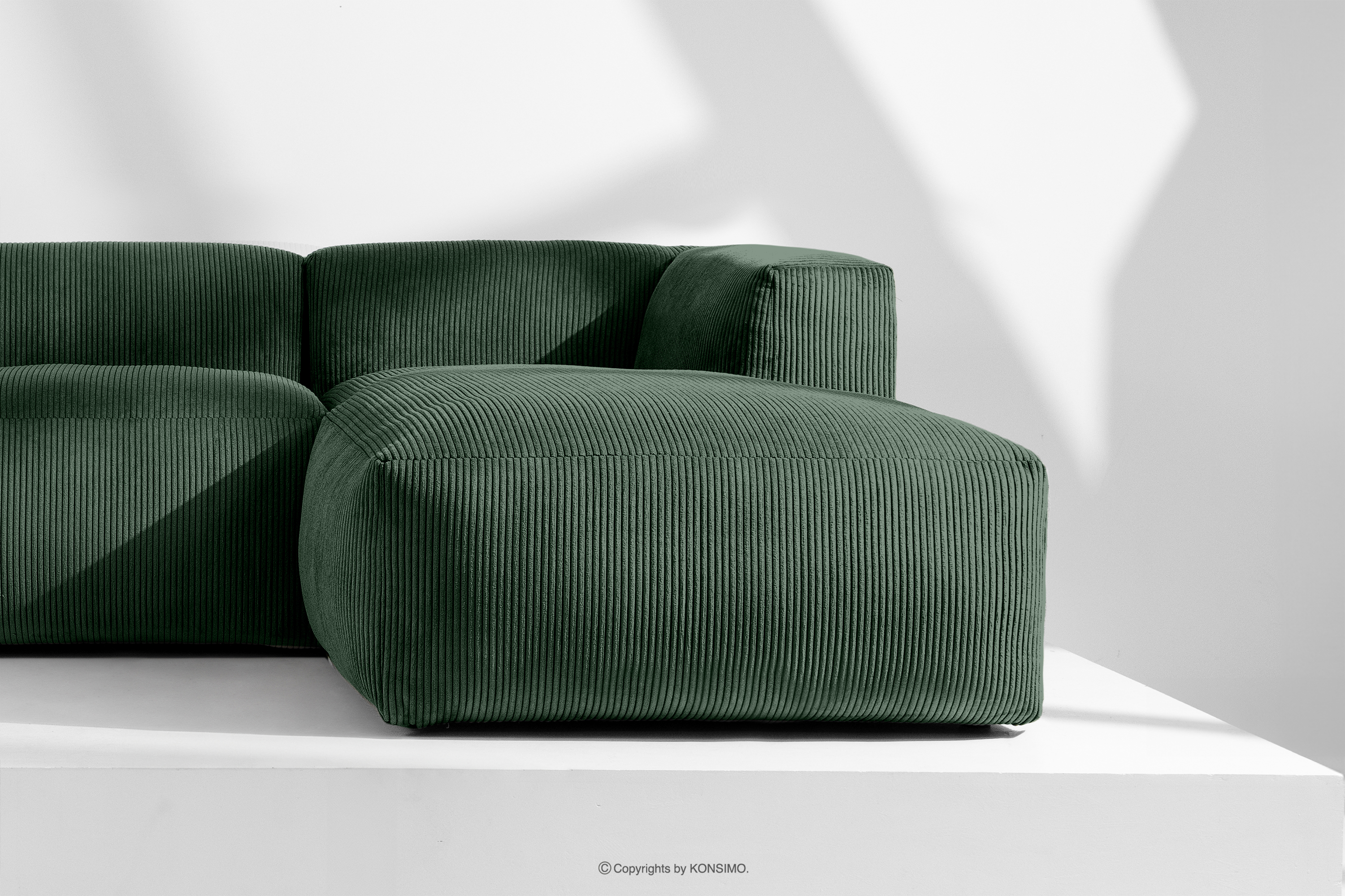 BUFFO Großes modulares Ecksofa für das Wohnzimmer aus Kordstoff dunkelgrün rechts