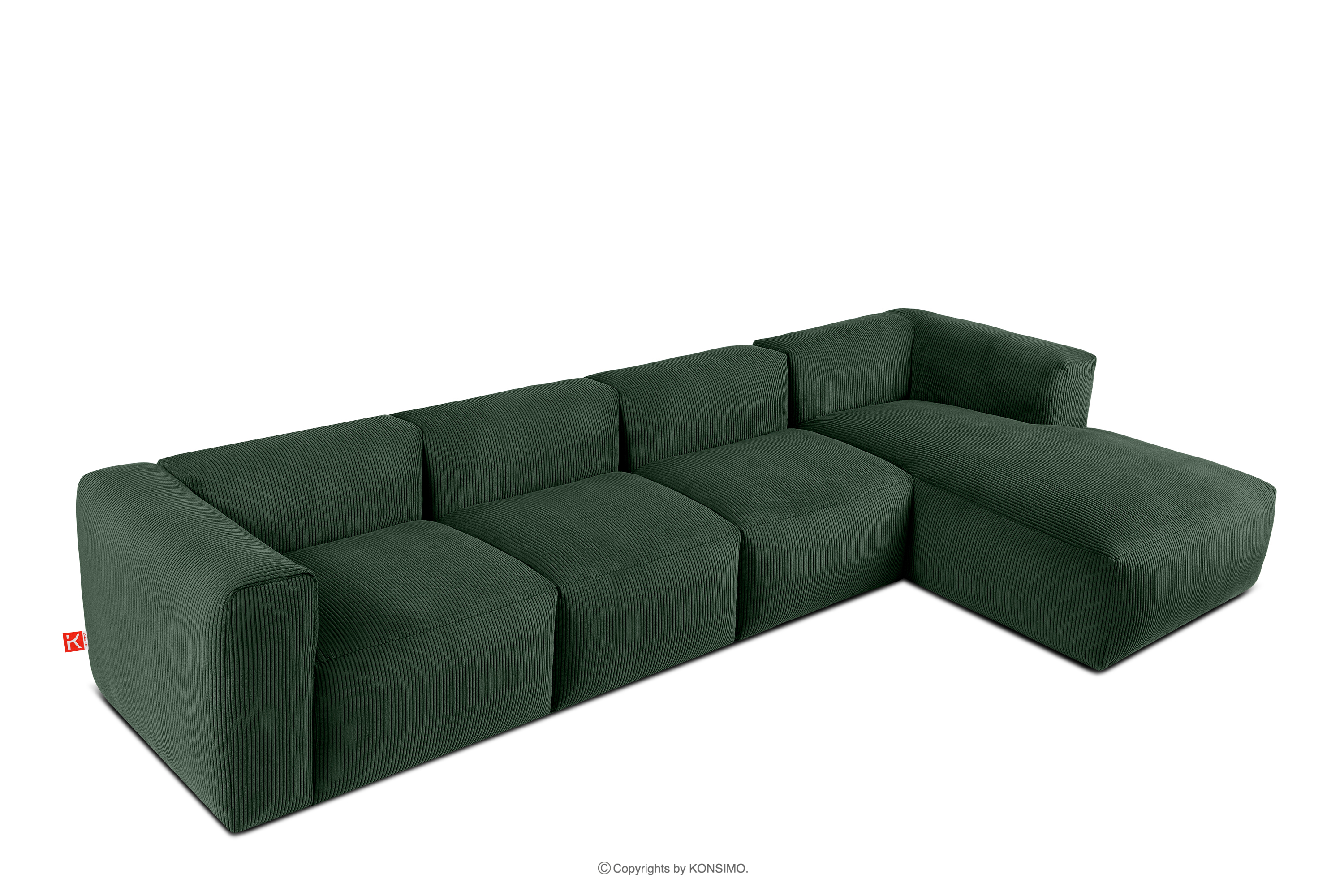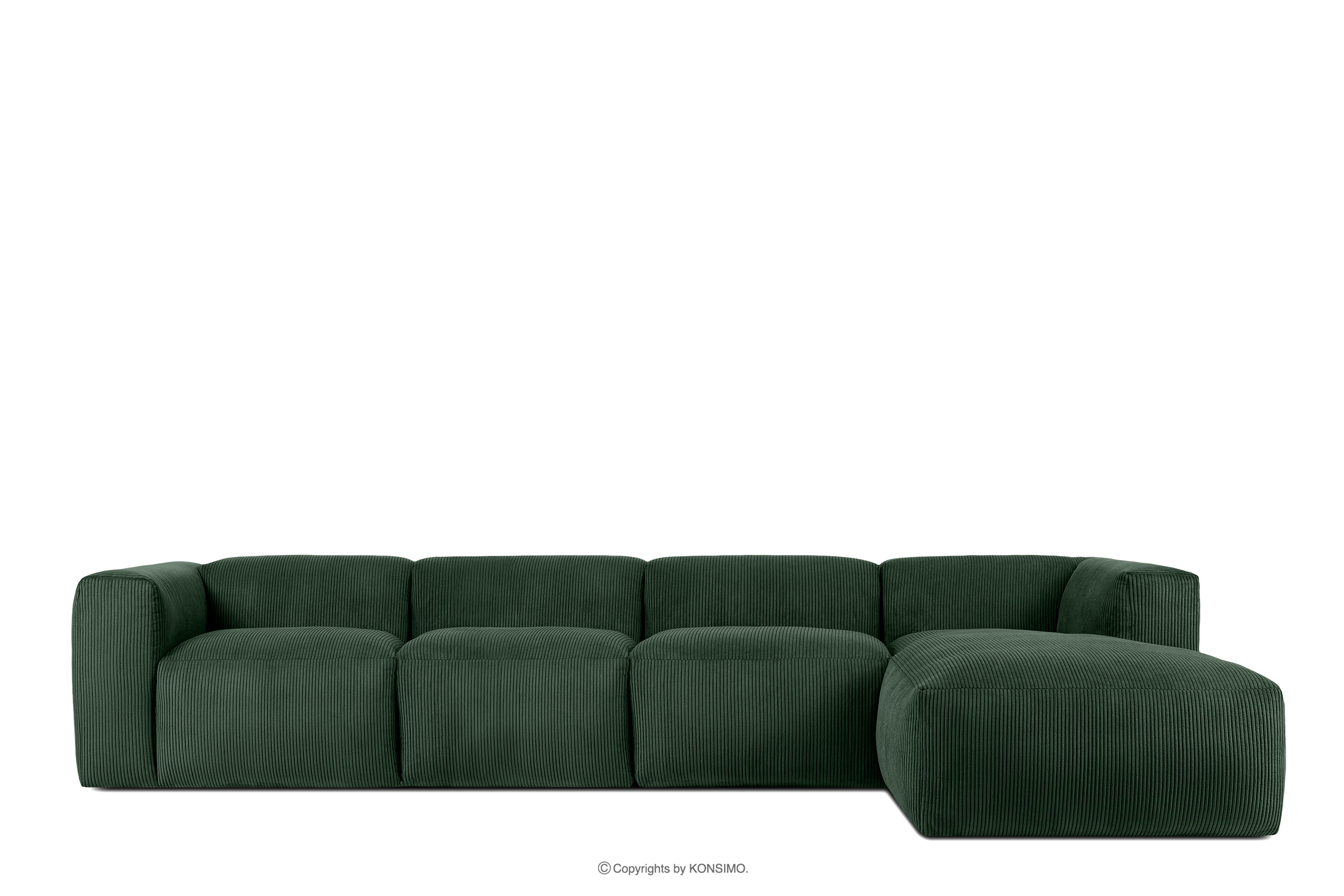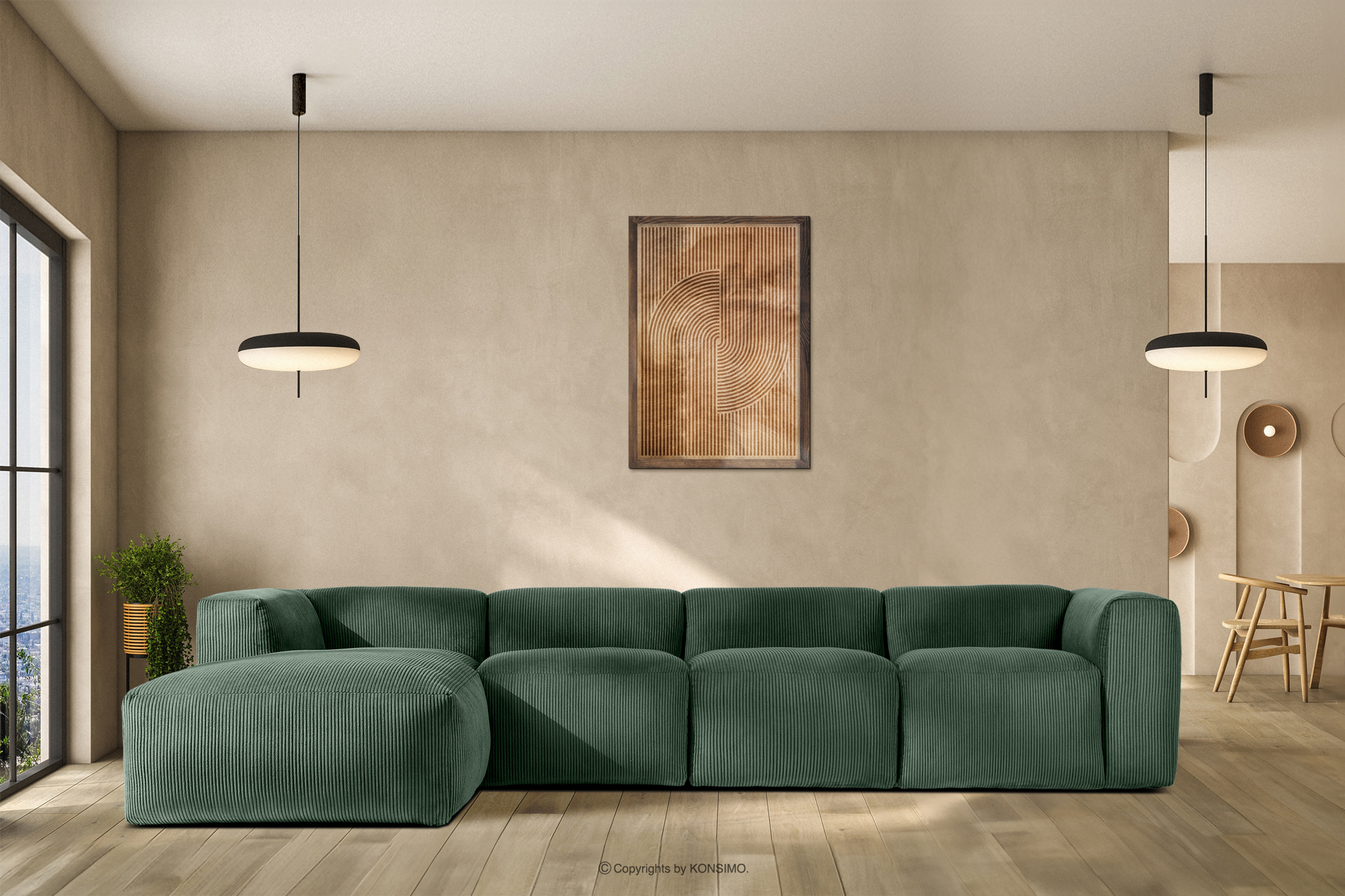BUFFO Großes modulares Ecksofa für das Wohnzimmer aus Kordstoff dunkelgrün rechts