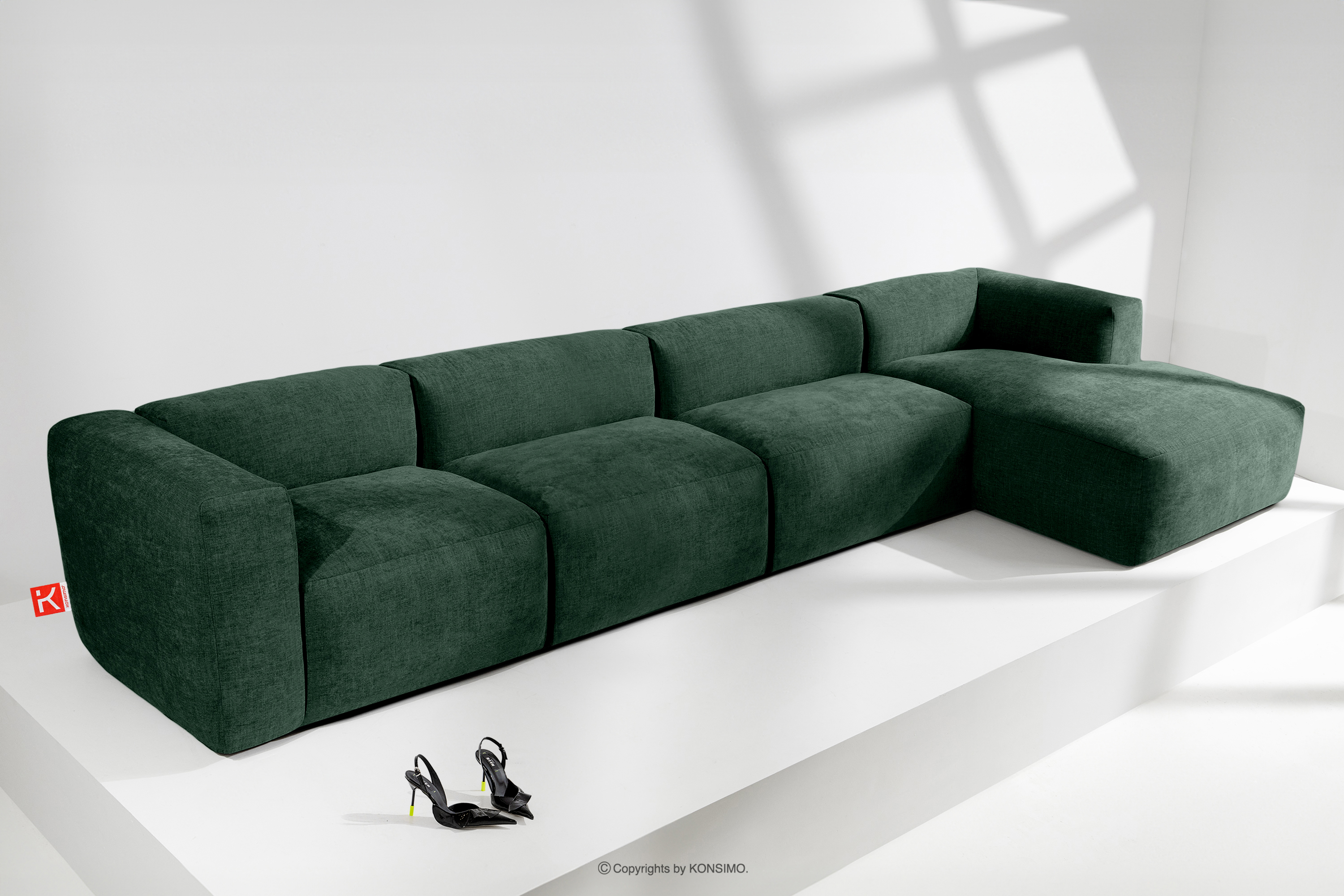 BUFFO Großes modulares Wohnzimmer-Ecksofa aus meergrauem Gewebestoff, rechts