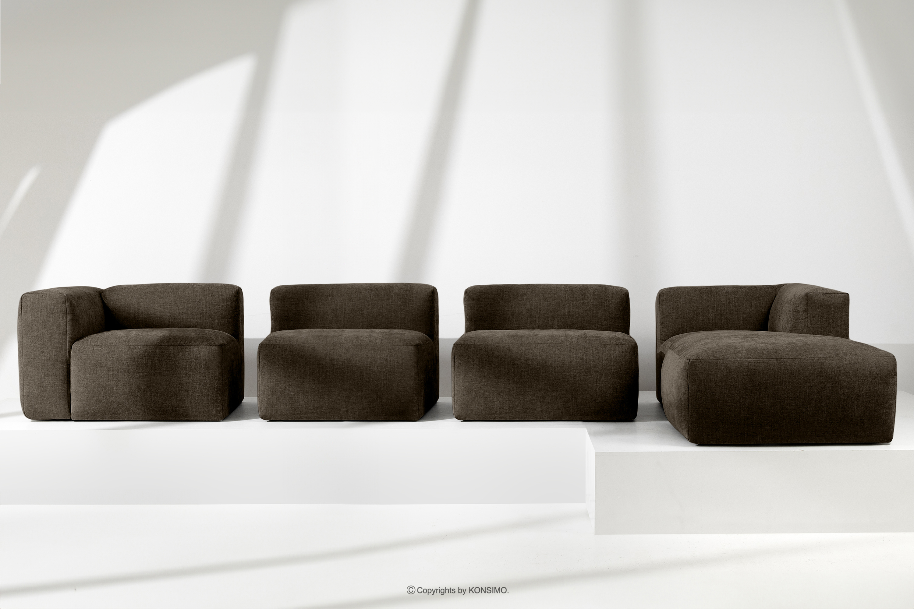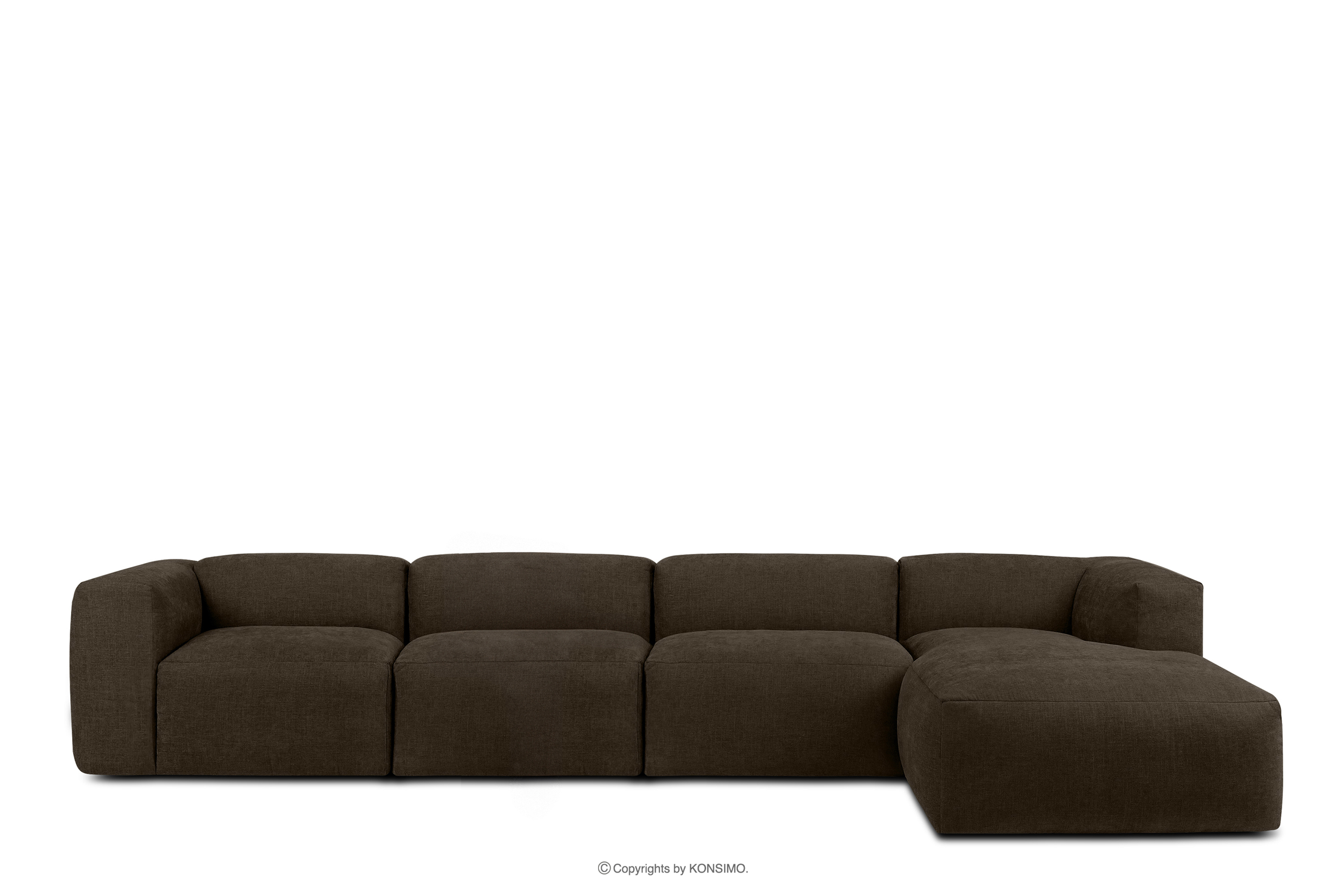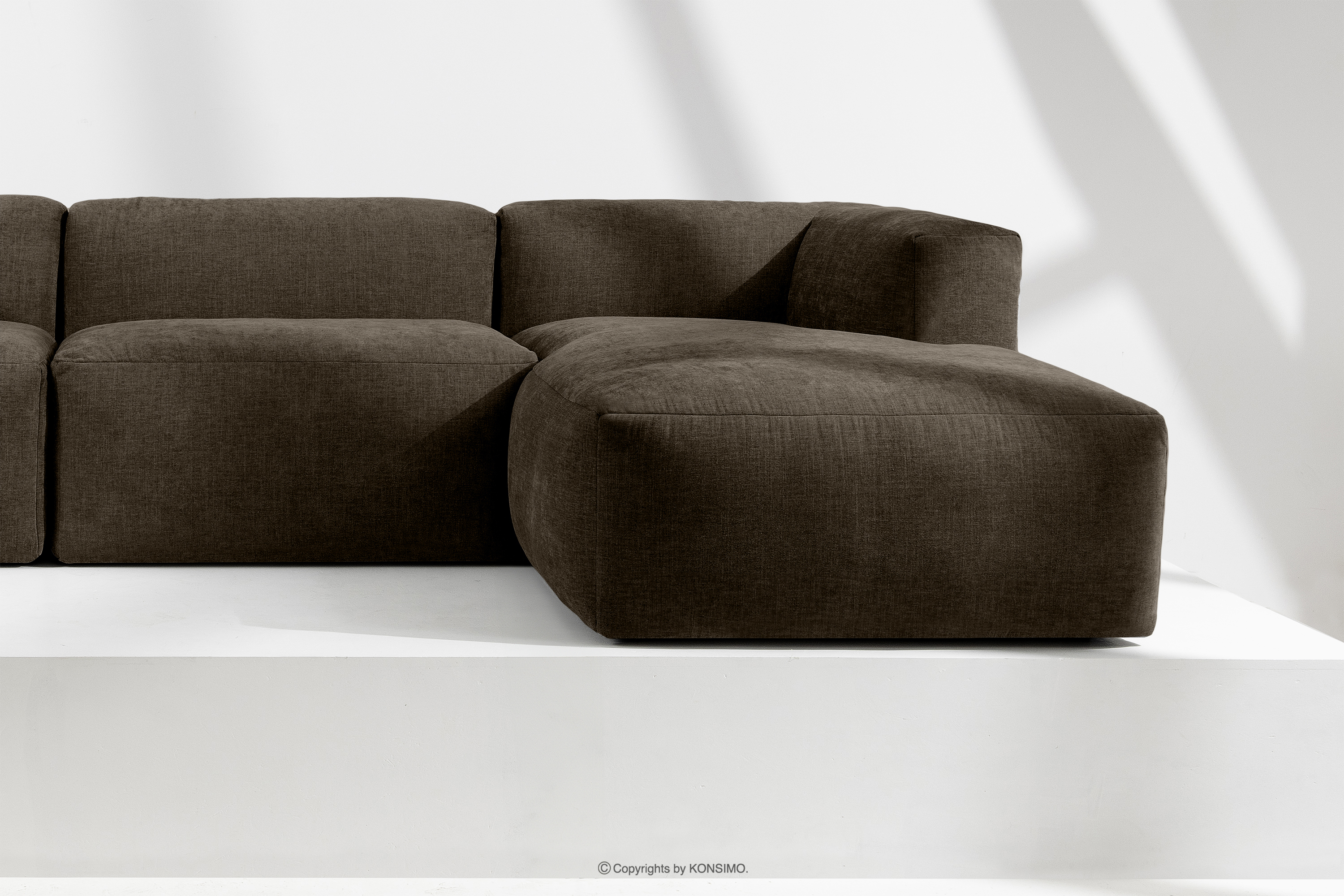 BUFFO Großes modulares Wohnzimmer-Ecksofa aus braunem Gewebestoff, rechts