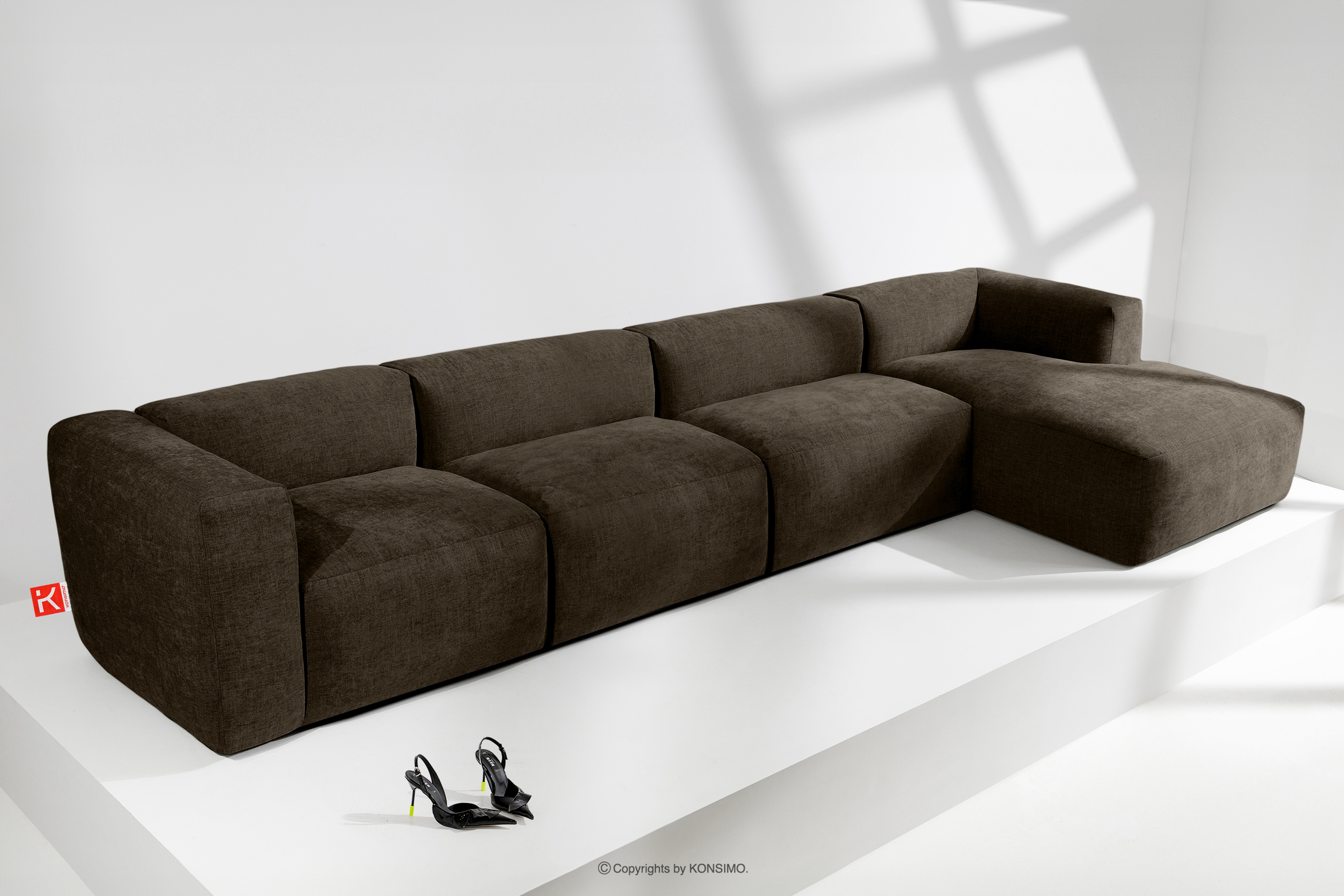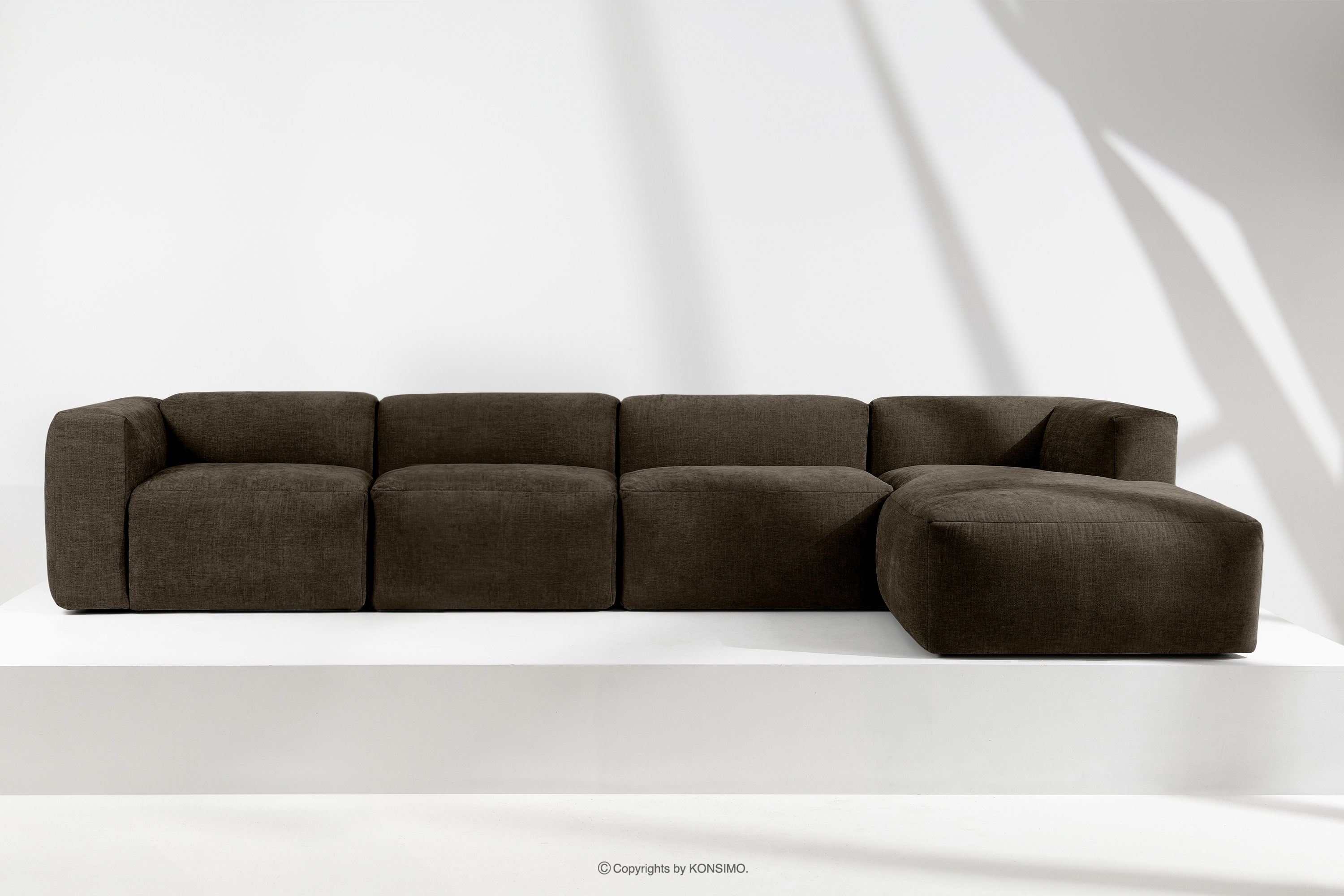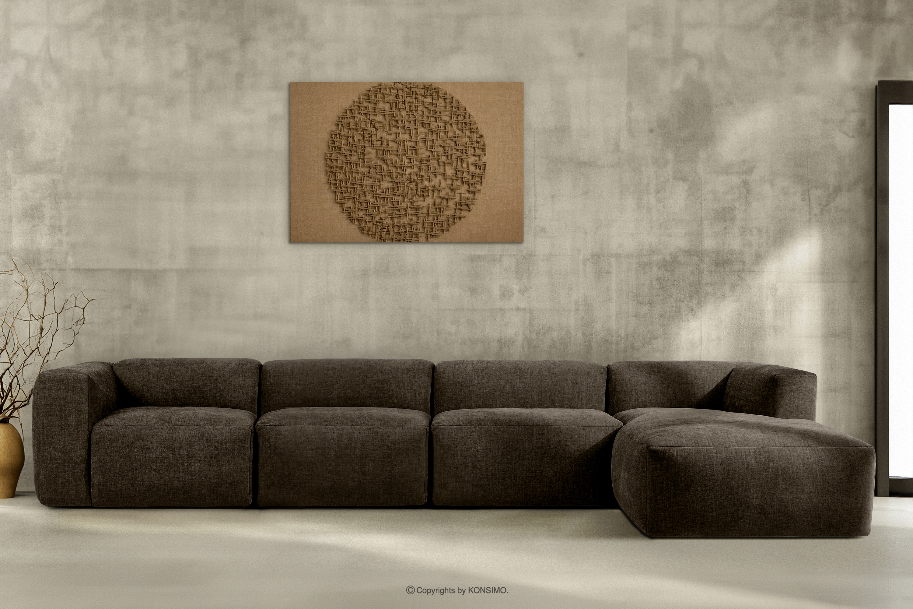 BUFFO Großes modulares Wohnzimmer-Ecksofa aus braunem Gewebestoff, rechts
