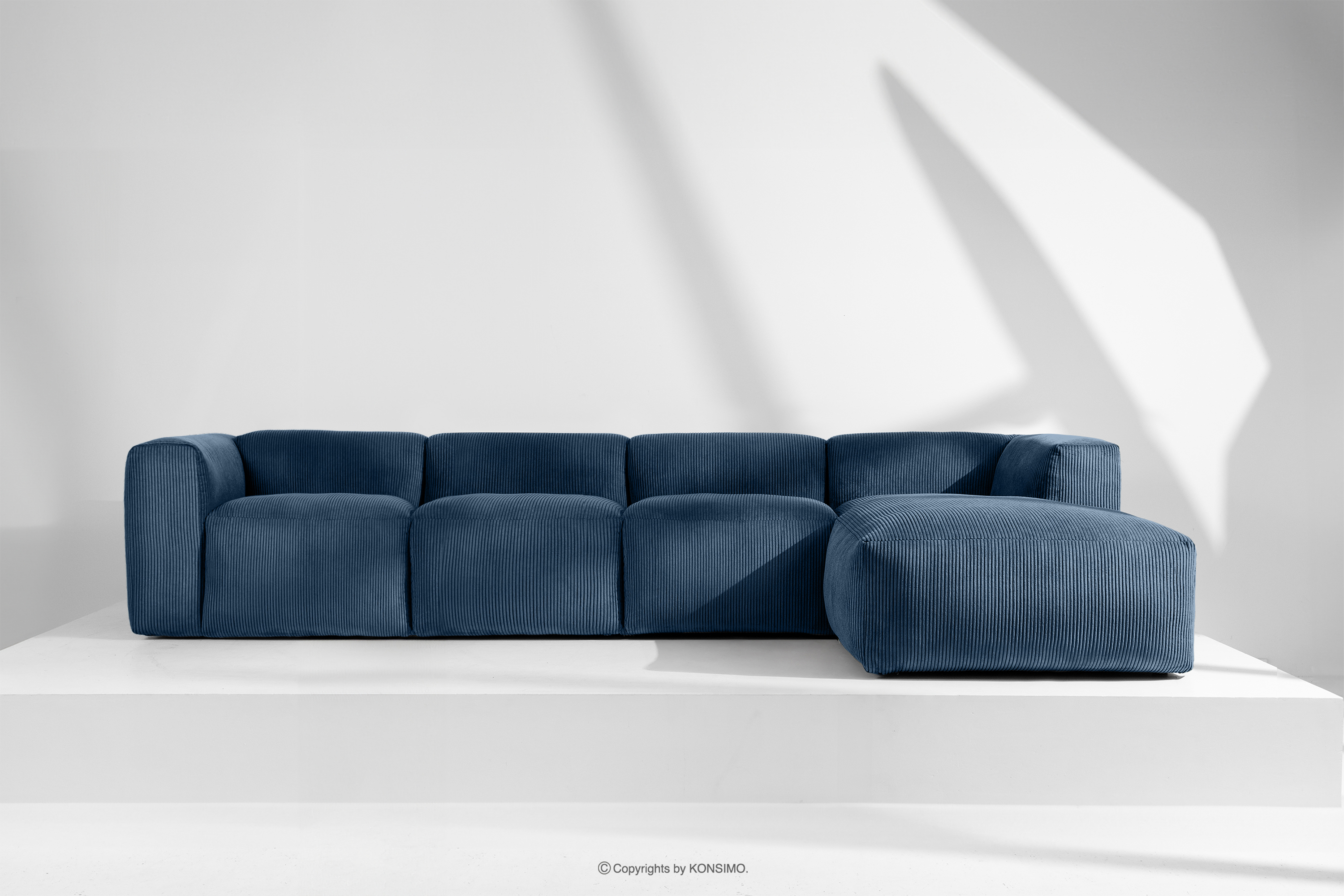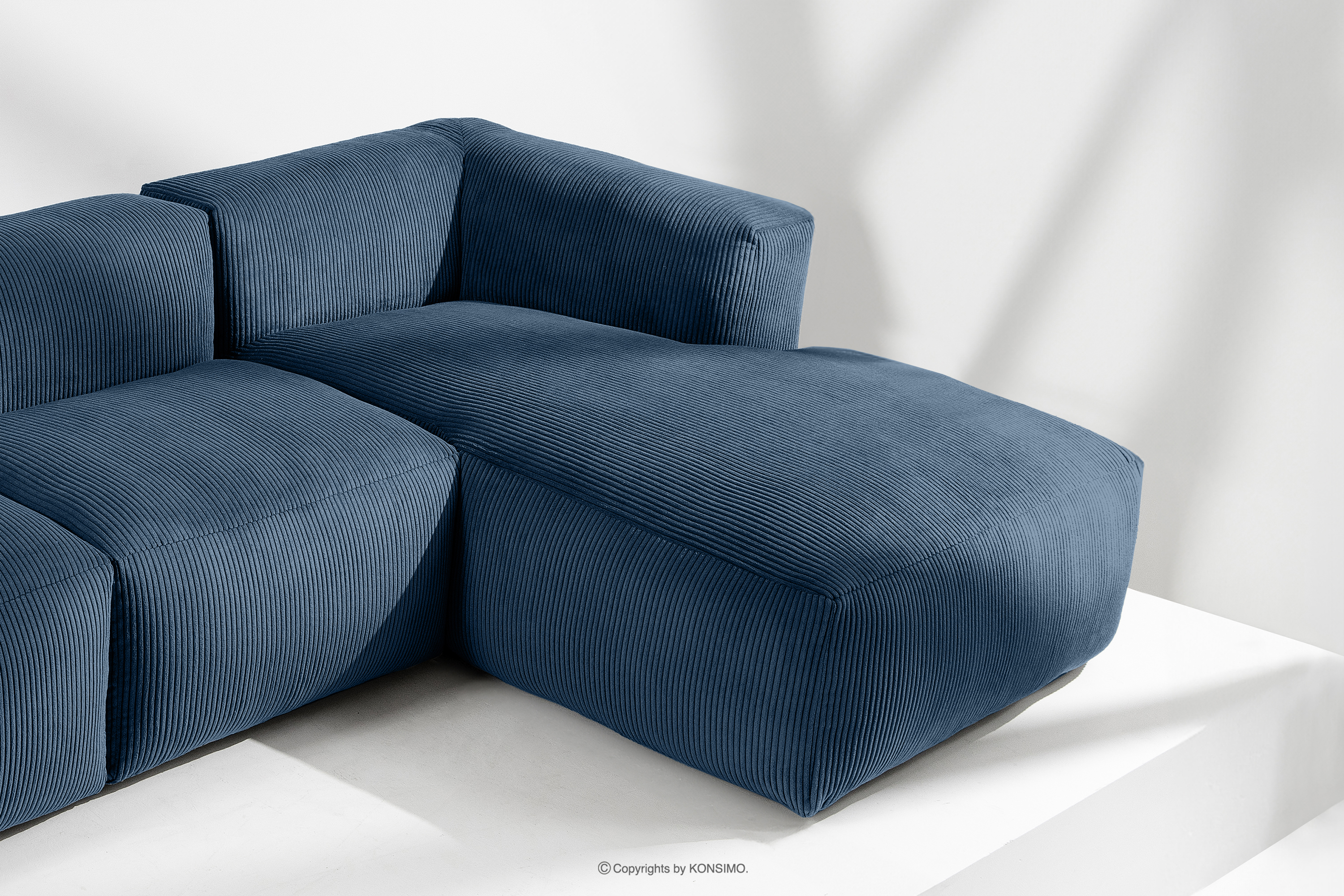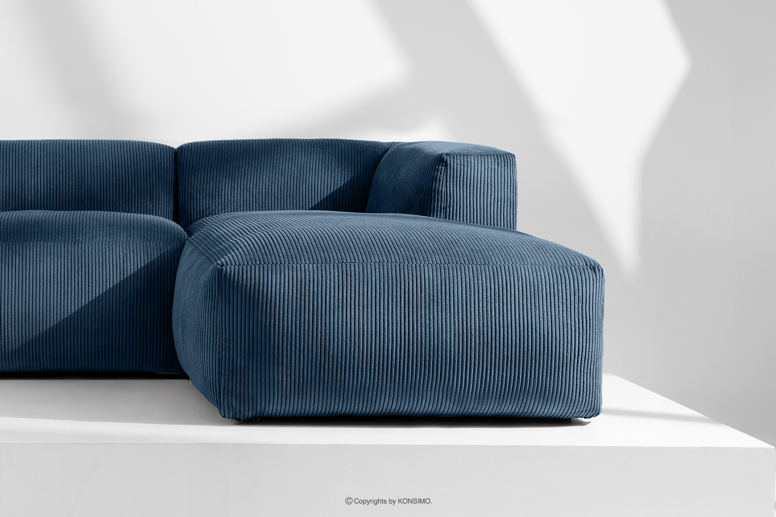BUFFO Großes modulares Ecksofa für das Wohnzimmer aus Kordstoff navy blau rechts