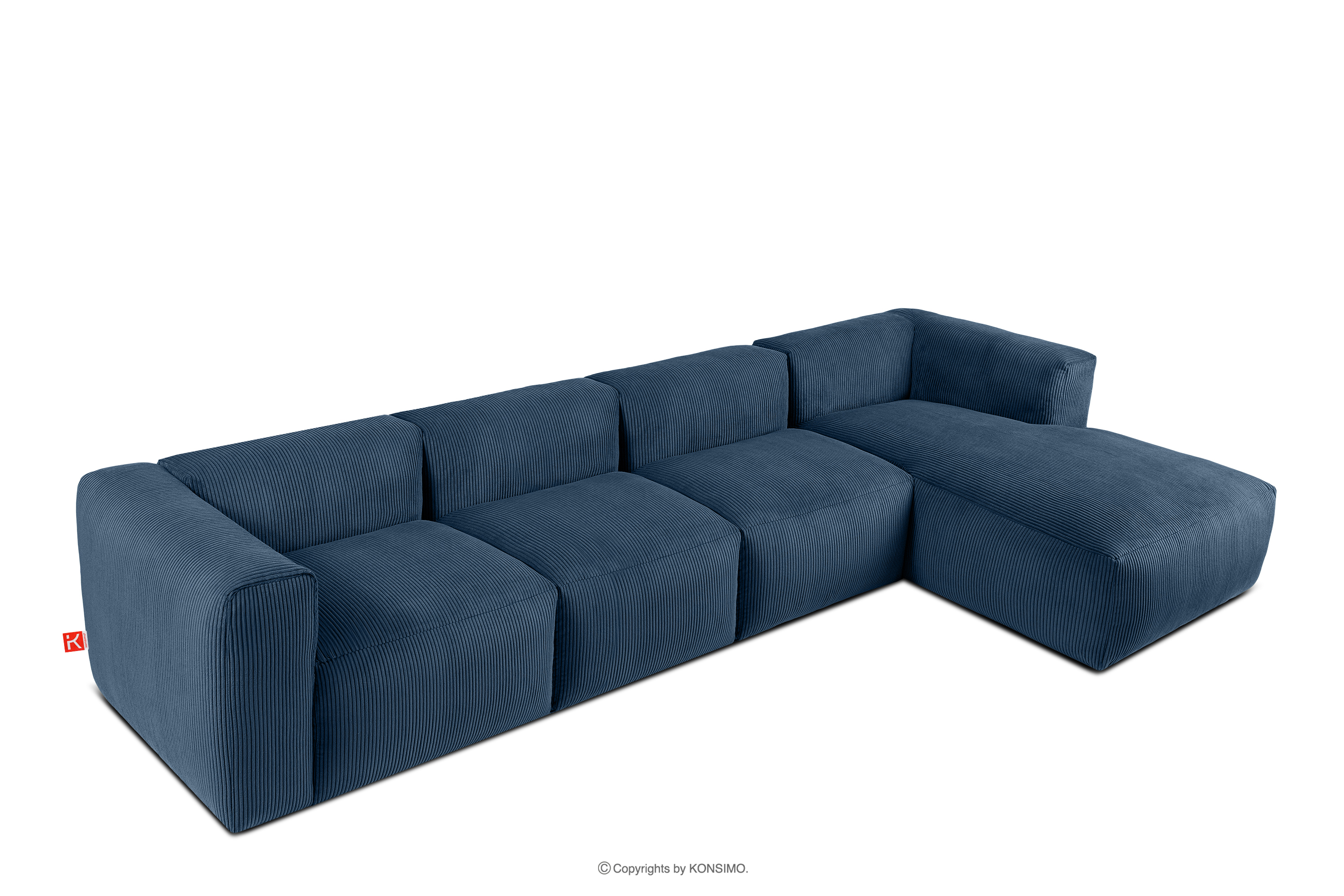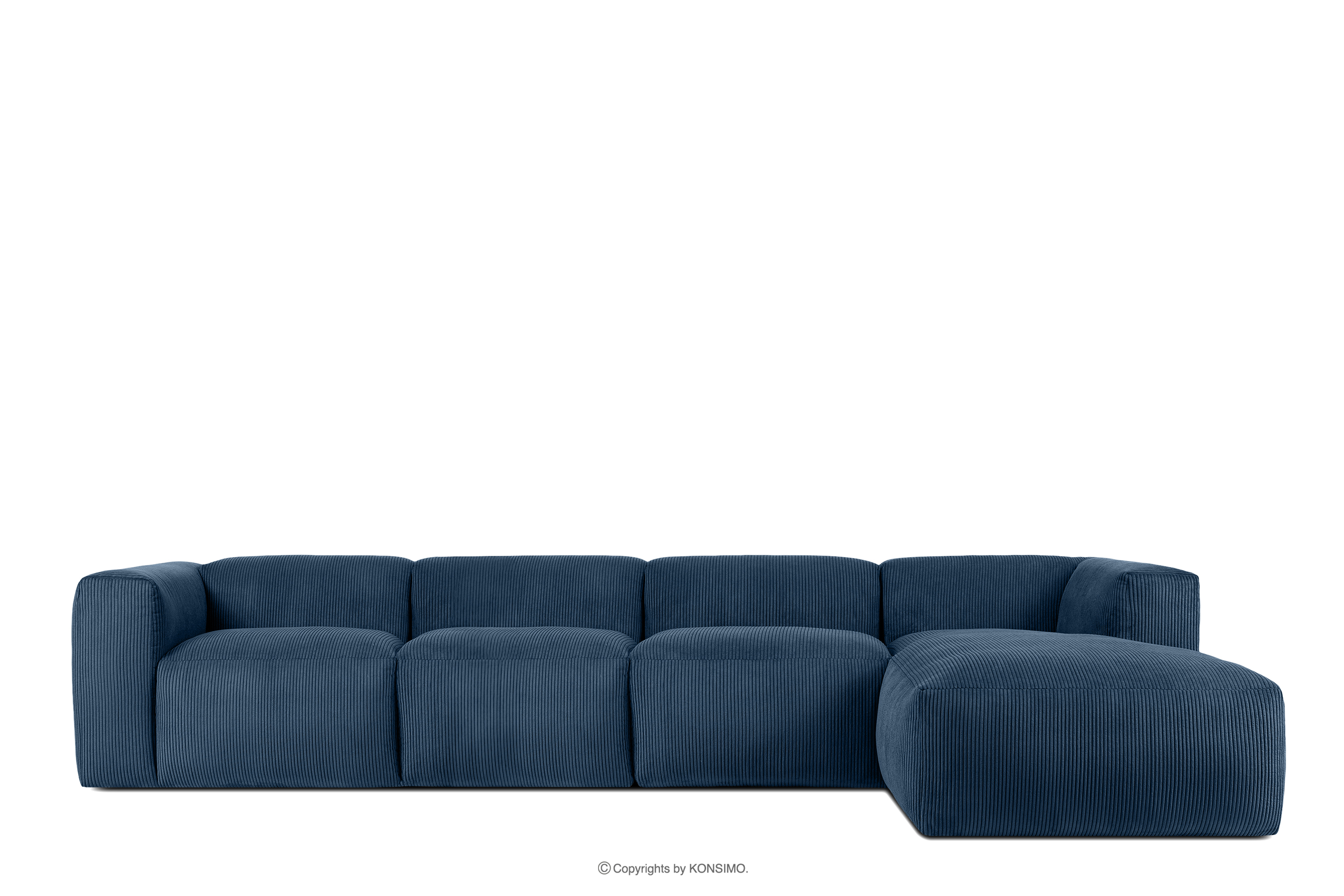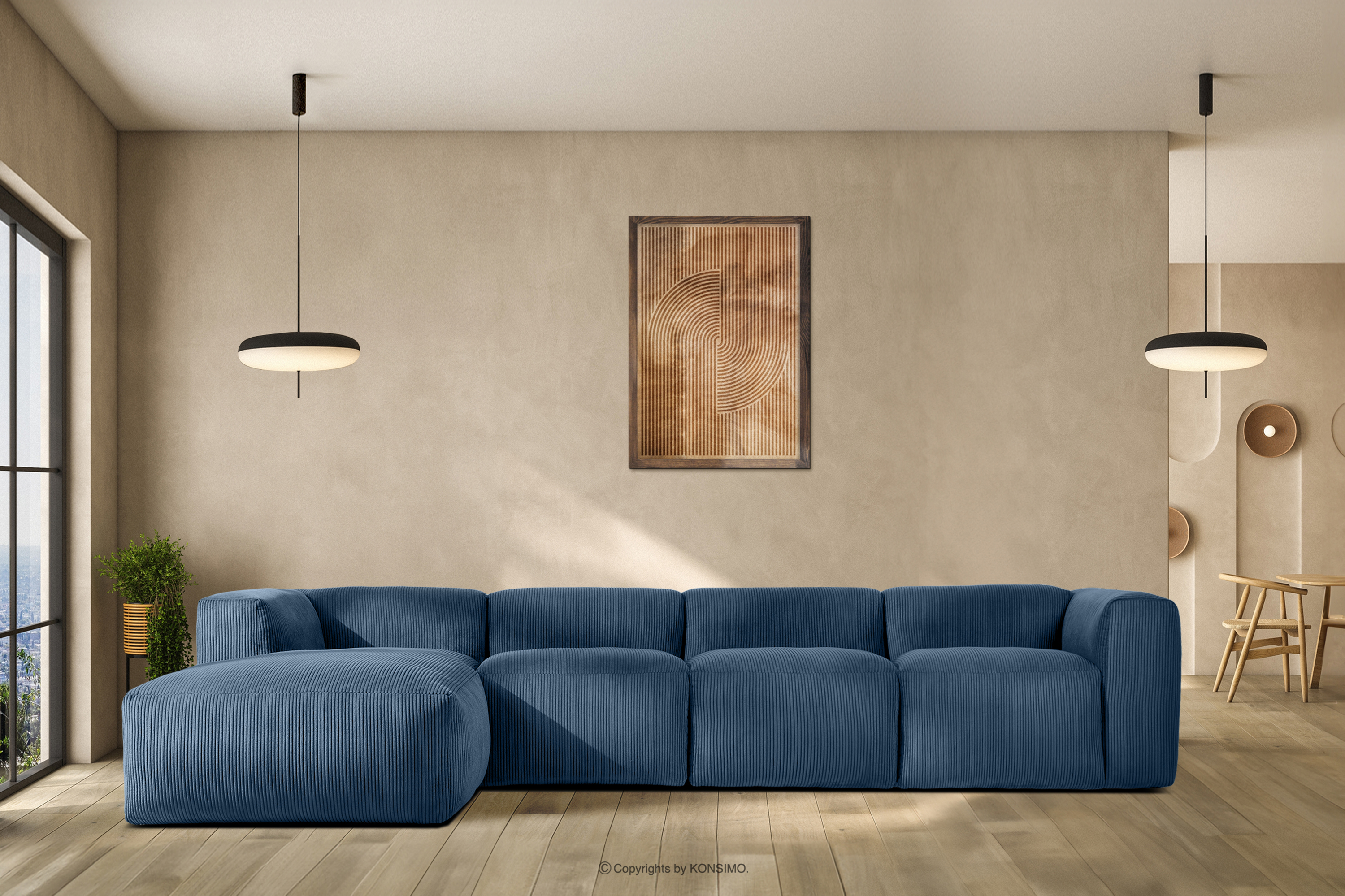 BUFFO Großes modulares Ecksofa für das Wohnzimmer aus Kordstoff navy blau rechts