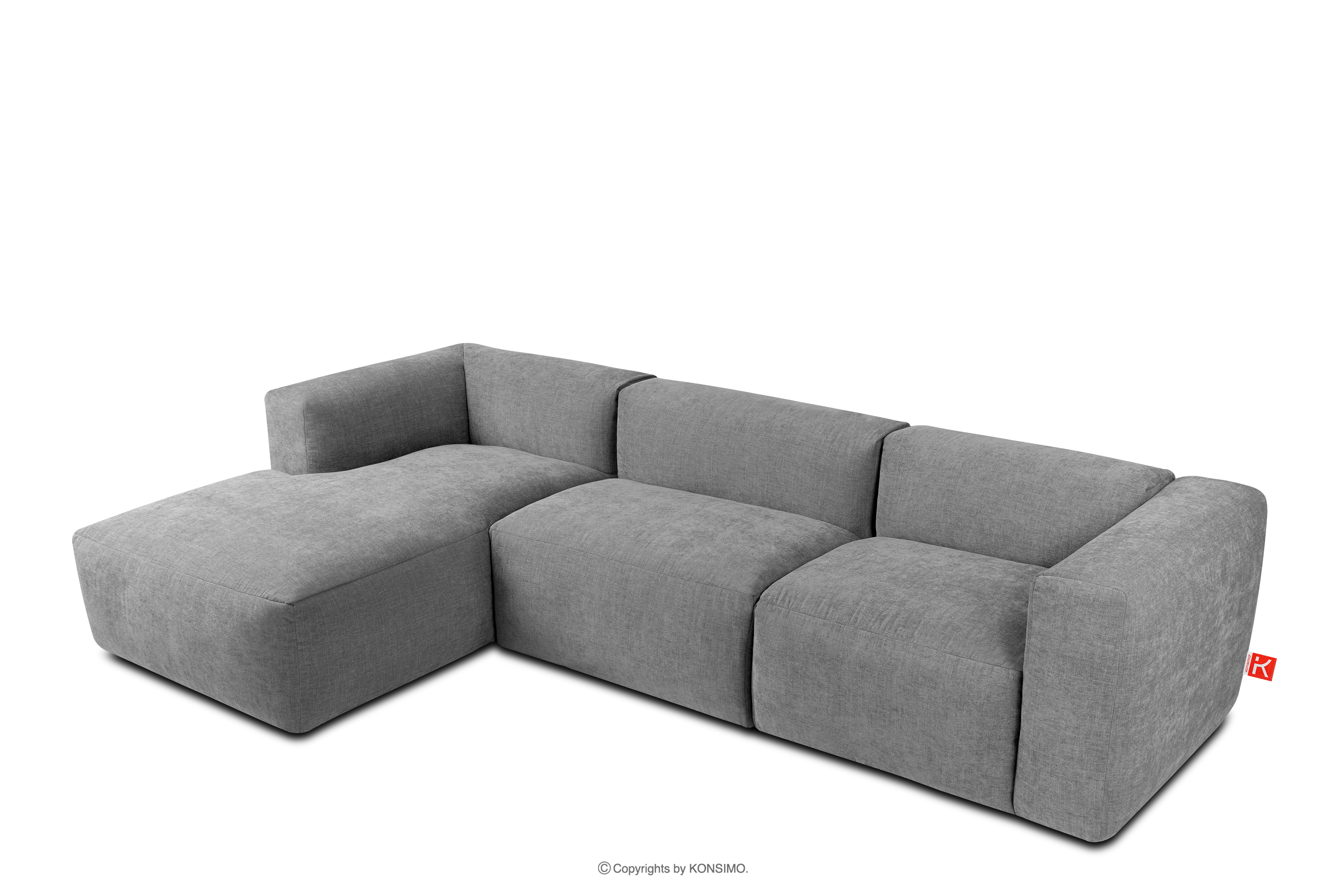 für das Produkt Modulares Ecksofa aus hellgrauem Gewebestoff, links