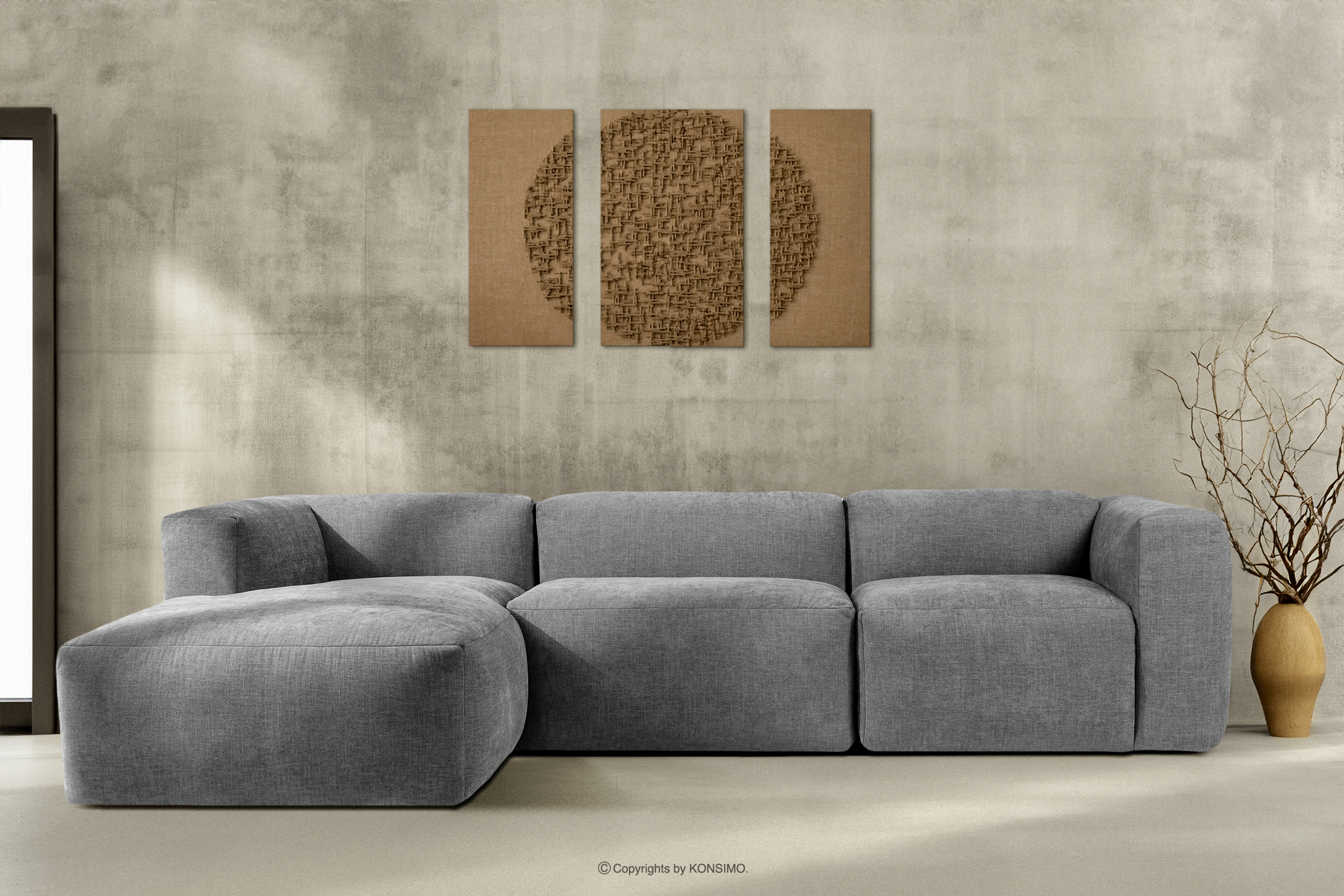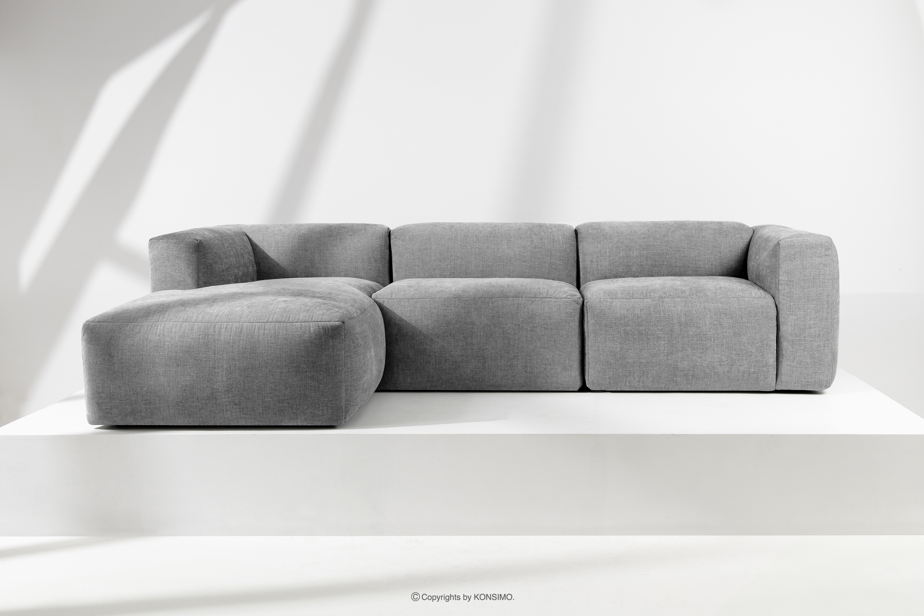 BUFFO Mehr aus der Kollektion Modulares Ecksofa aus hellgrauem Gewebestoff, links- Farbe hell aschfahl