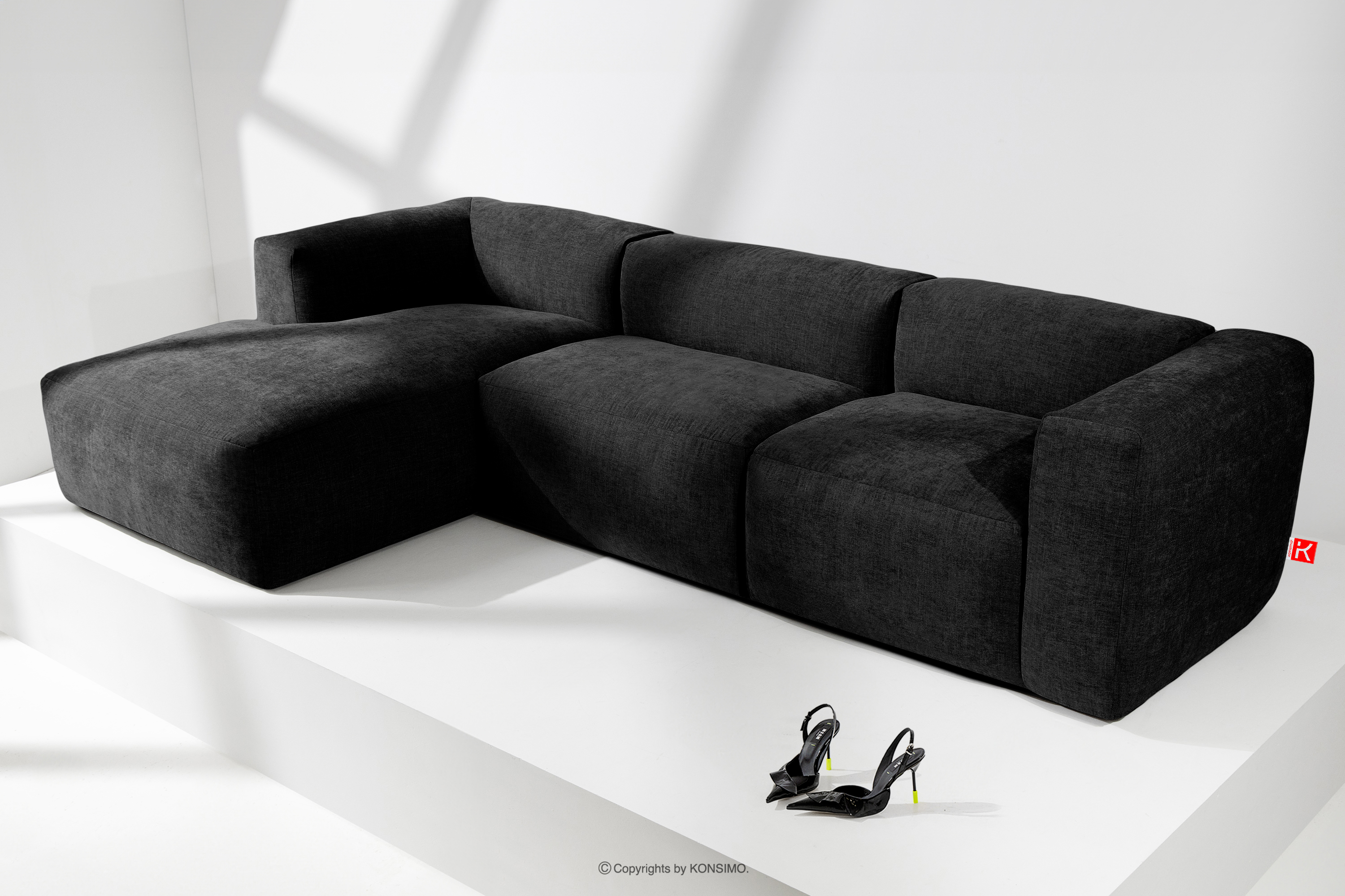Das modulare Ecksofa aus Gewebestoff Graphit links wird mit Sicherheit zum Mittelpunkt jedes Wohnzimmers. Das Gestell ist aus strapazierfähigem Kiefern- und Buchenholz gefertigt, das nicht nur für Solidität, sondern auch für Ästhetik sorgt. Darüber hinaus erhöht die Verwendung von langlebigen Span- und Faserplatten die Stabilität und Langlebigkeit des Möbels. So bleiben sie auch bei intensiver Nutzung formstabil und widerstandsfähig gegen alle Herausforderungen des täglichen Lebens.