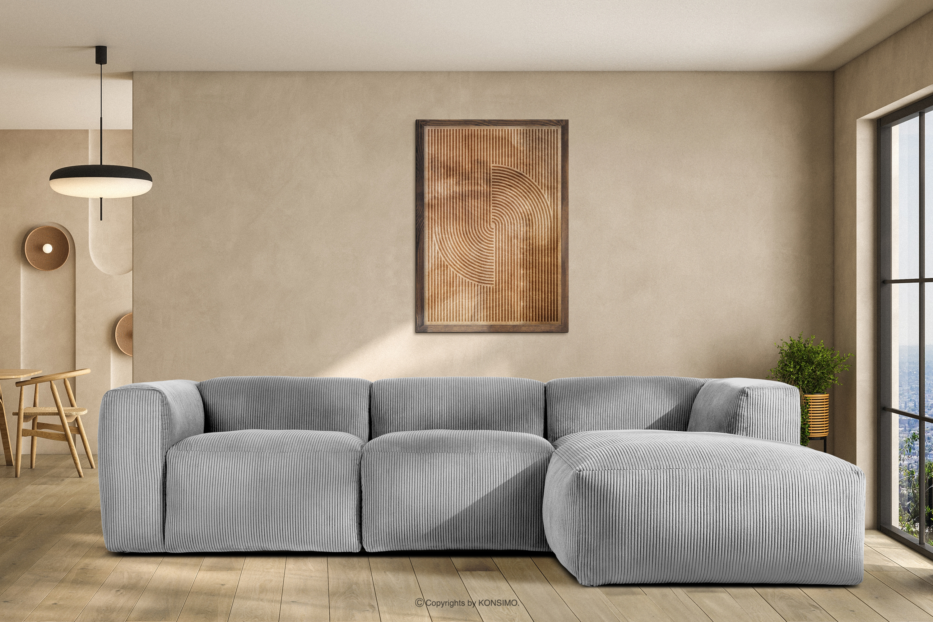BUFFO Mehr aus der Kollektion Modulares Ecksofa mit Kordstoff hellgrau rechts- Farbe hellgrau