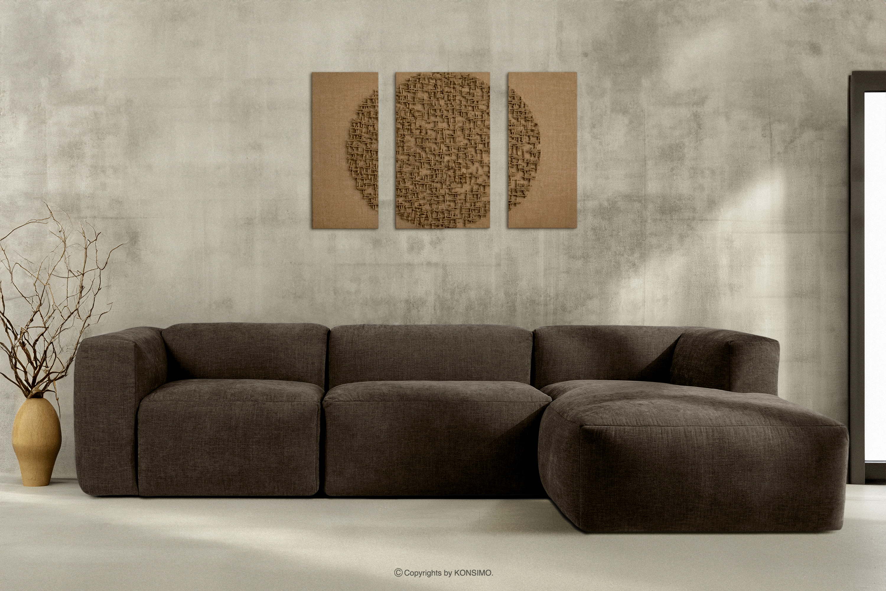 BUFFO Mehr aus der Kollektion Modulares Ecksofa aus braunem Gewebestoff, rechts- Farbe braun