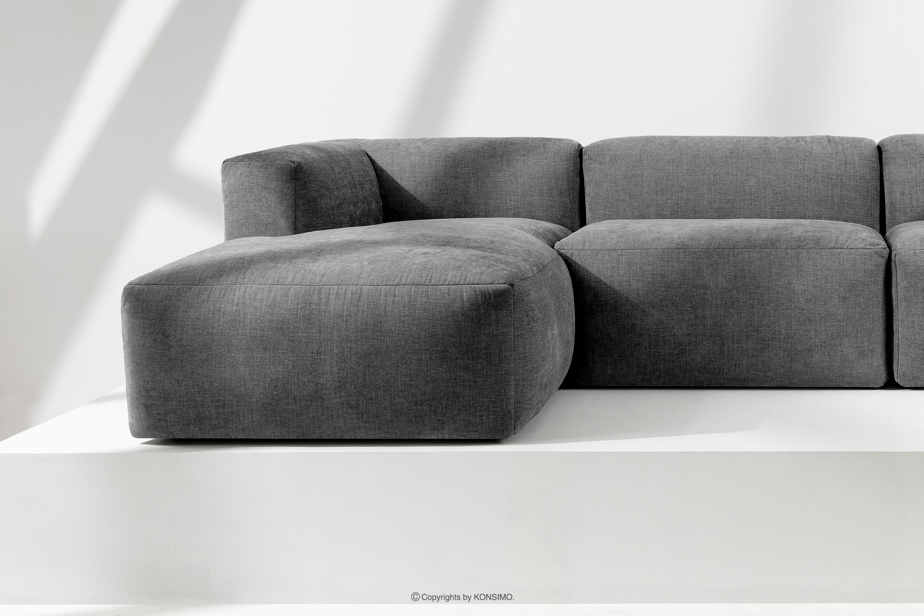 BUFFO Großes modulares U-förmiges Ecksofa aus aschgrauem Gewebestoff