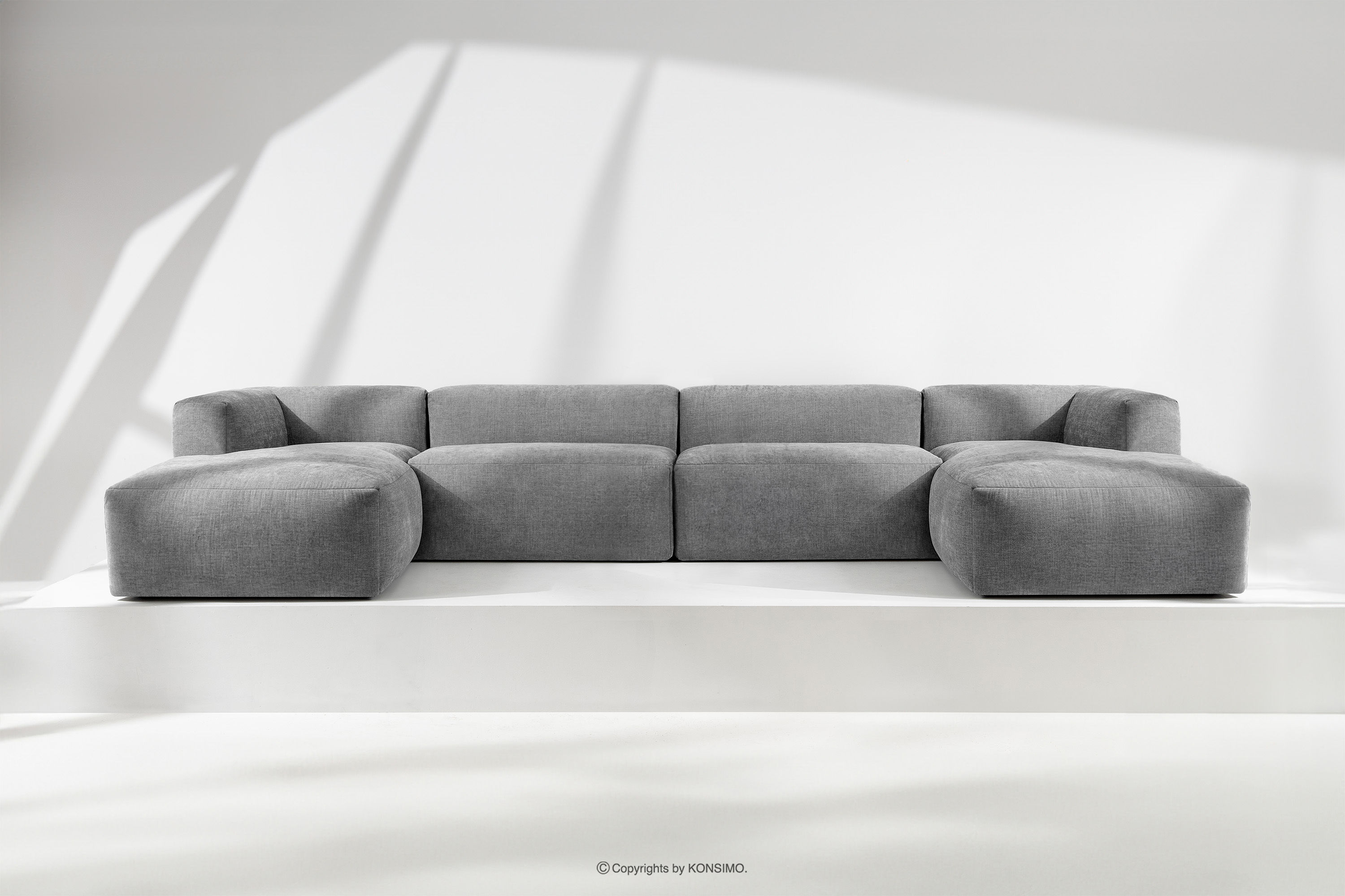 Das große U-förmige modulare Ecksofa Gewebestoff light ash wird mit Sicherheit zum Mittelpunkt eines jeden Wohnzimmers. Das Gestell ist aus langlebigem Kiefern- und Buchenholz gefertigt, das nicht nur Robustheit, sondern auch Ästhetik garantiert. Darüber hinaus erhöht die Verwendung von langlebigen Span- und Faserplatten die Stabilität und Haltbarkeit des Möbels. So bleiben sie auch bei intensiver Nutzung formstabil und widerstandsfähig gegen alle Herausforderungen des täglichen Lebens.