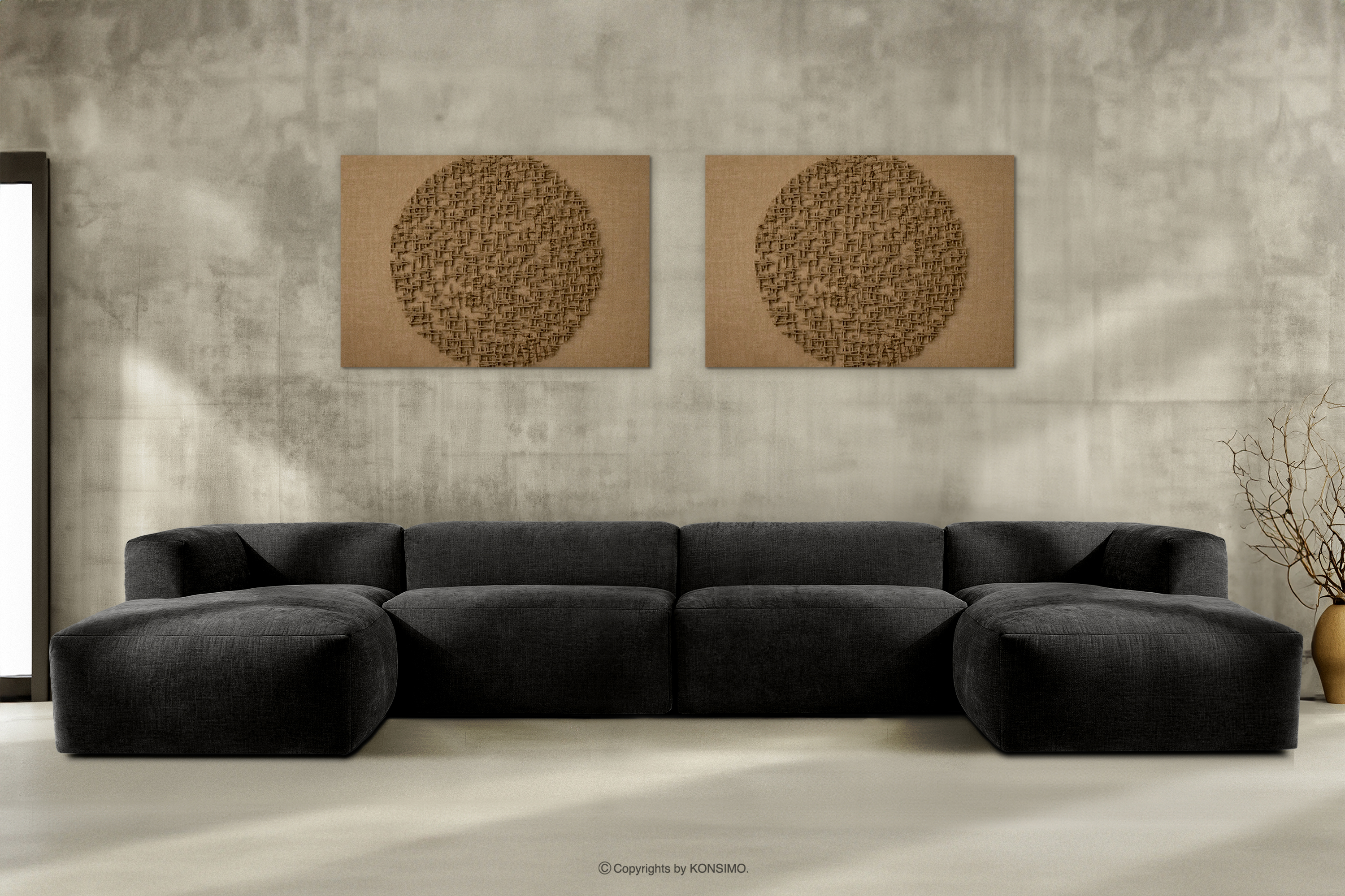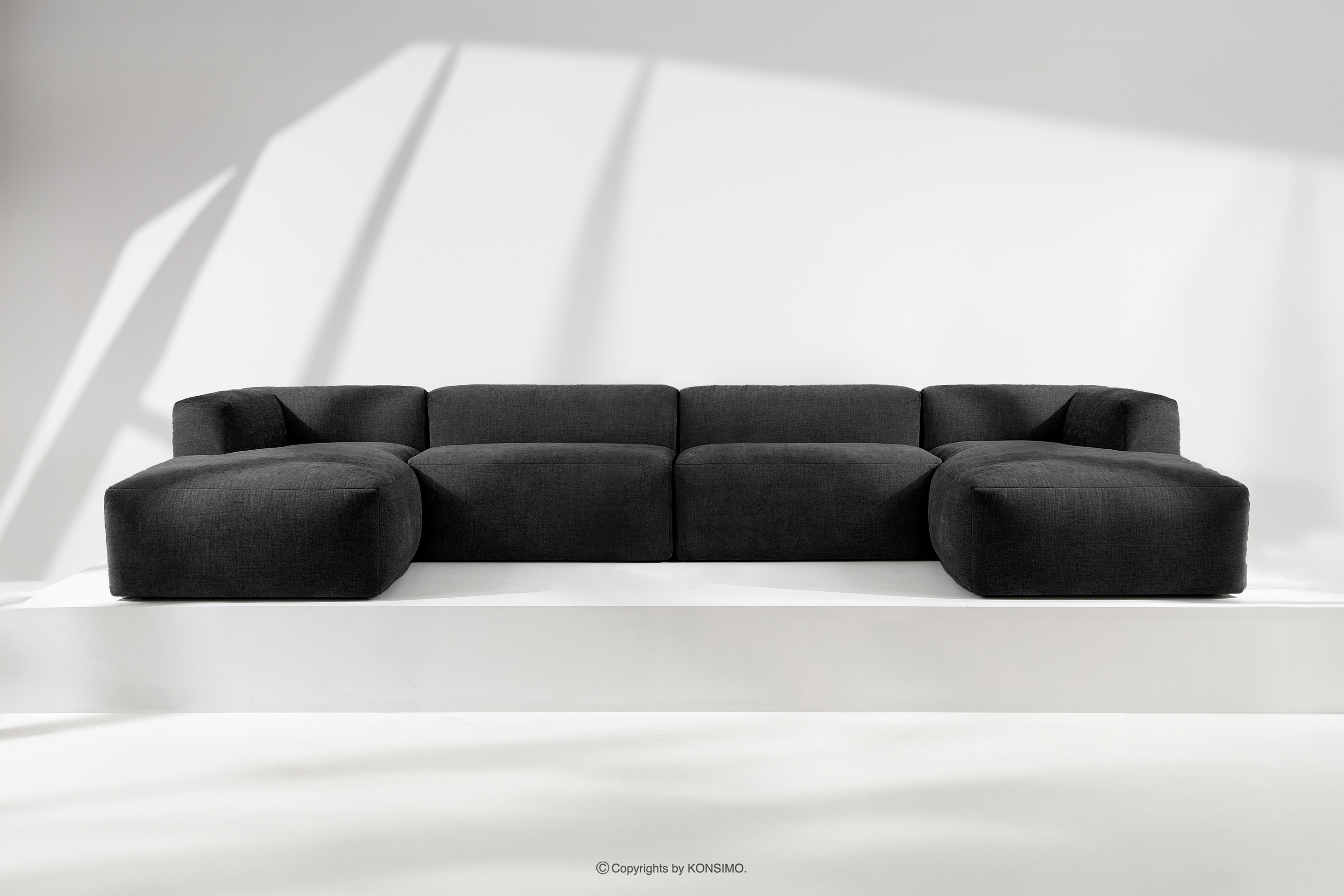 BUFFO Großes modulares U-förmiges Ecksofa aus graphitfarbenem Gewebestoff