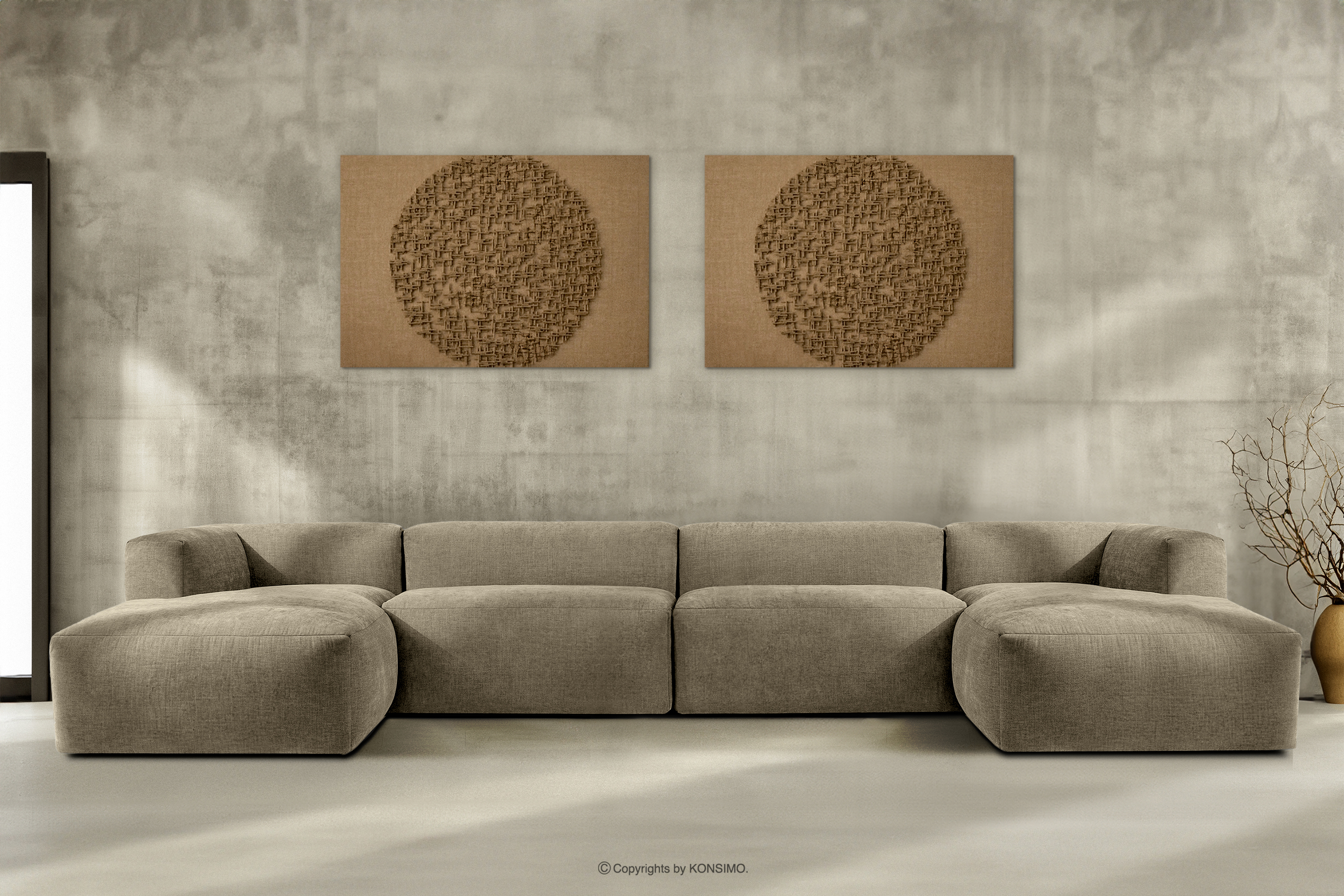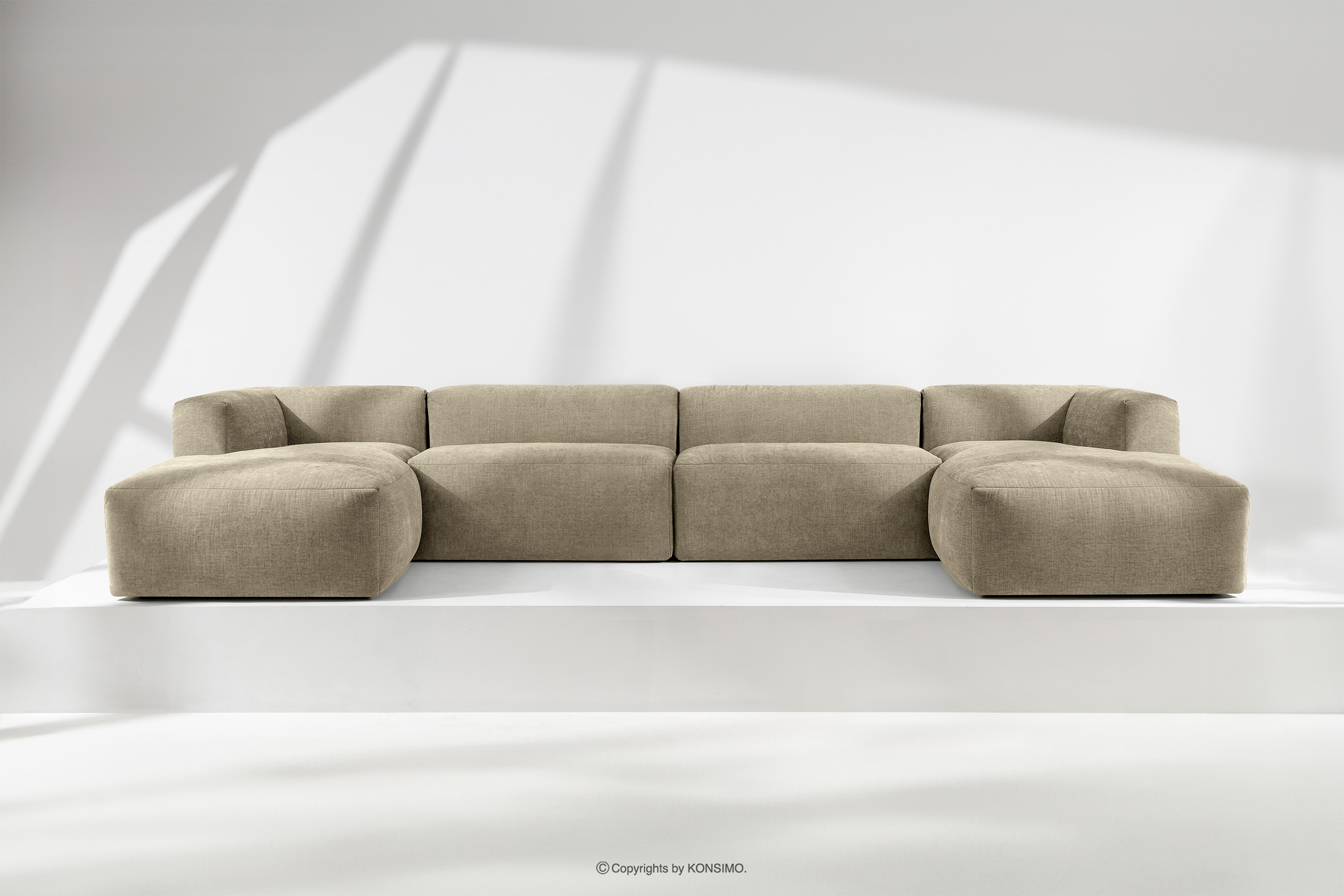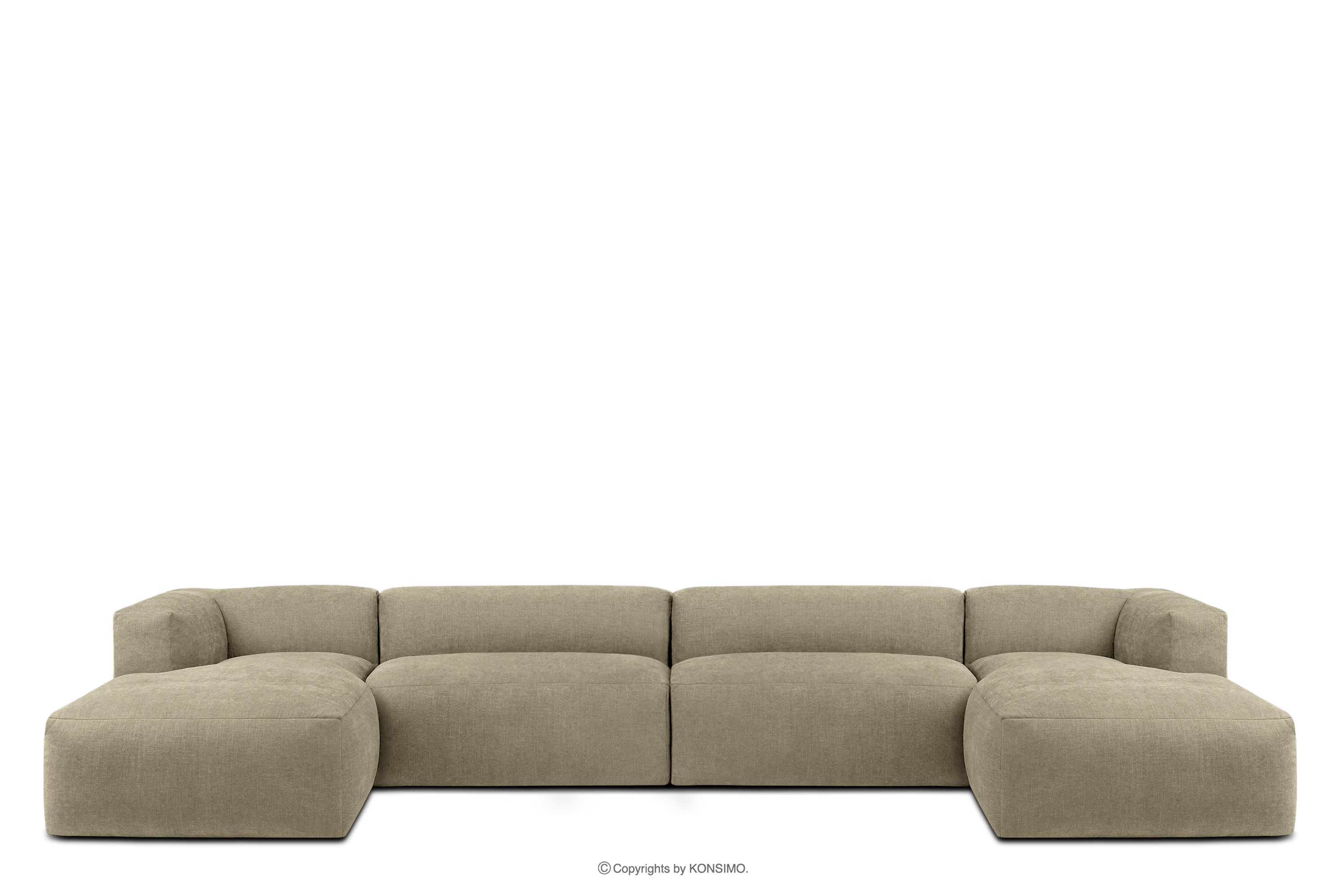 BUFFO Großes modulares U-förmiges Ecksofa aus sandfarbenem Gewebestoff