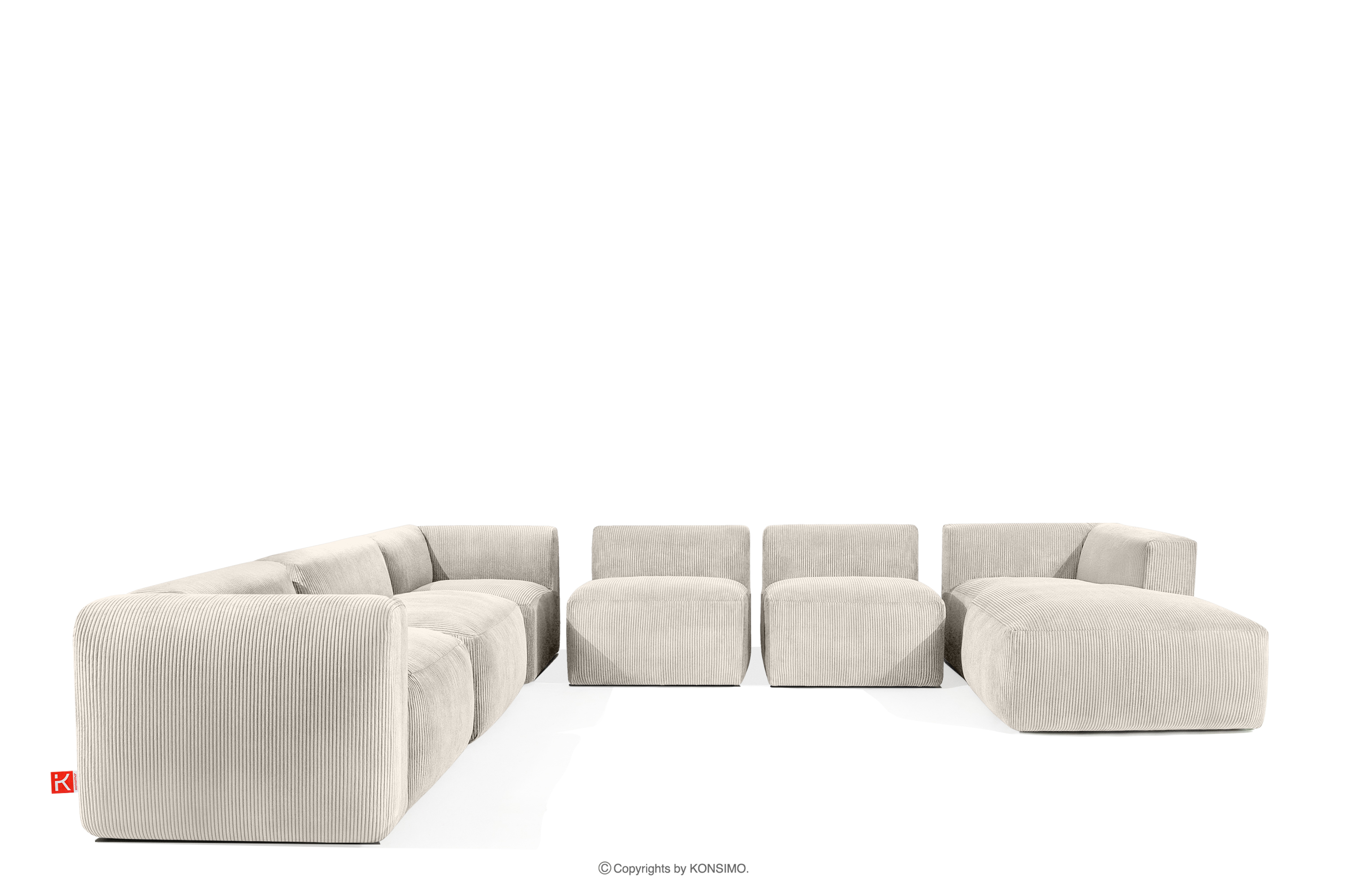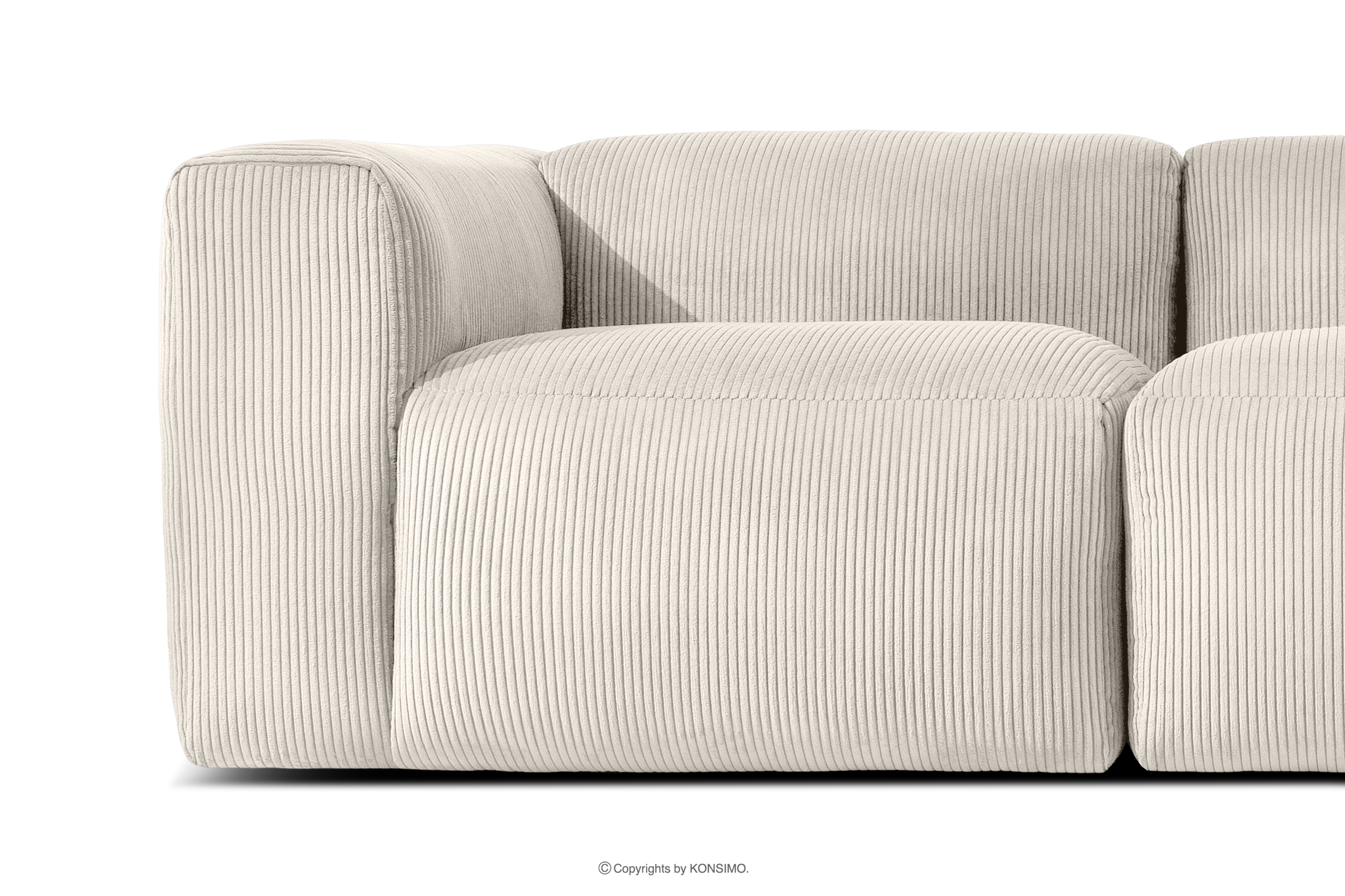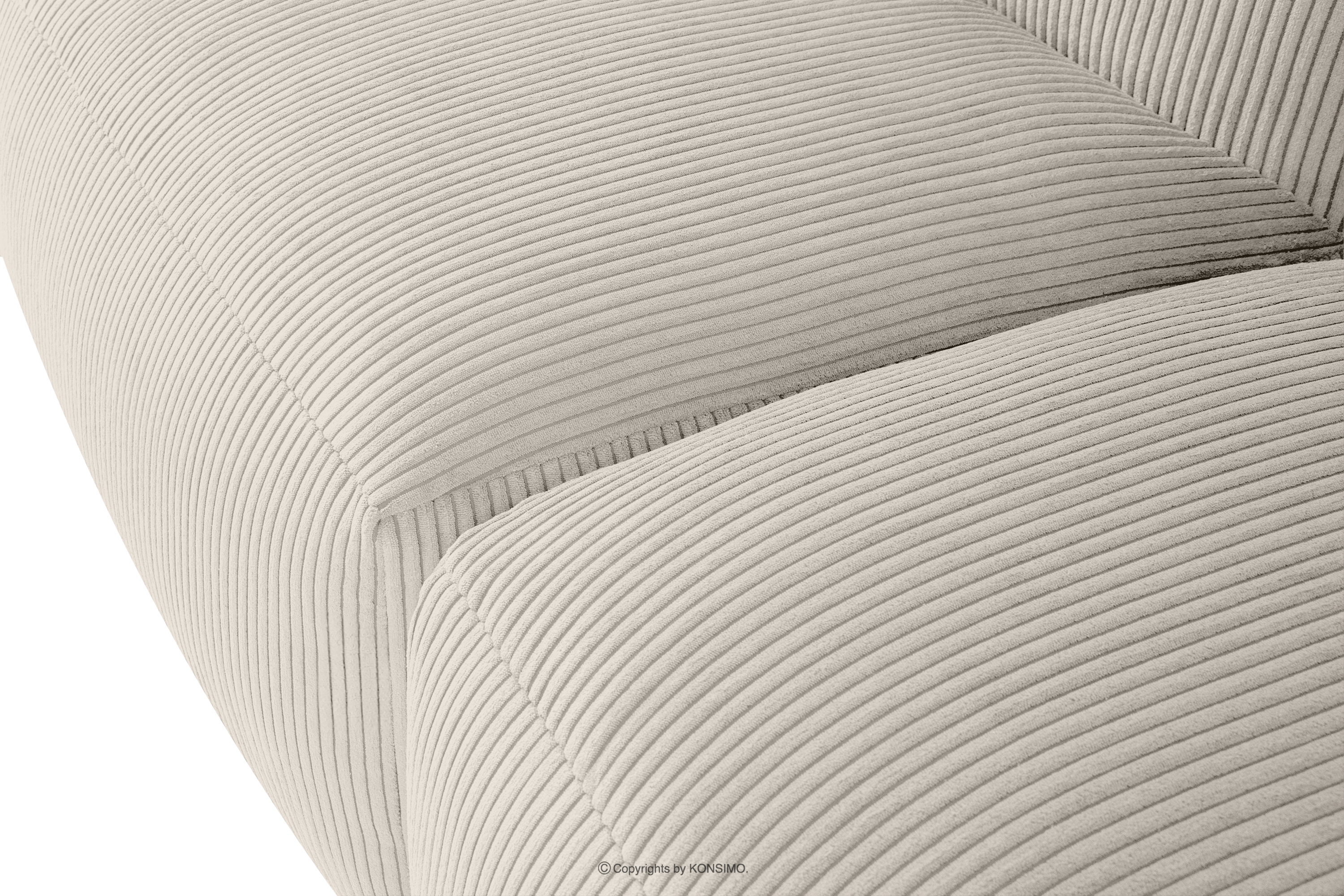 Das große Ecksofa aus cremefarbenem Kordstoff ist der Blickfang in jedem Wohnzimmer. Das Gestell ist aus langlebigem Kiefern- und Buchenholz gefertigt, was nicht nur für Stabilität, sondern auch für Ästhetik sorgt. Darüber hinaus erhöht die Verwendung von langlebigen Span- und Faserplatten die Stabilität und Langlebigkeit des Möbels. So bleiben sie auch bei intensiver Nutzung formstabil und widerstandsfähig gegen alle Herausforderungen des täglichen Lebens.