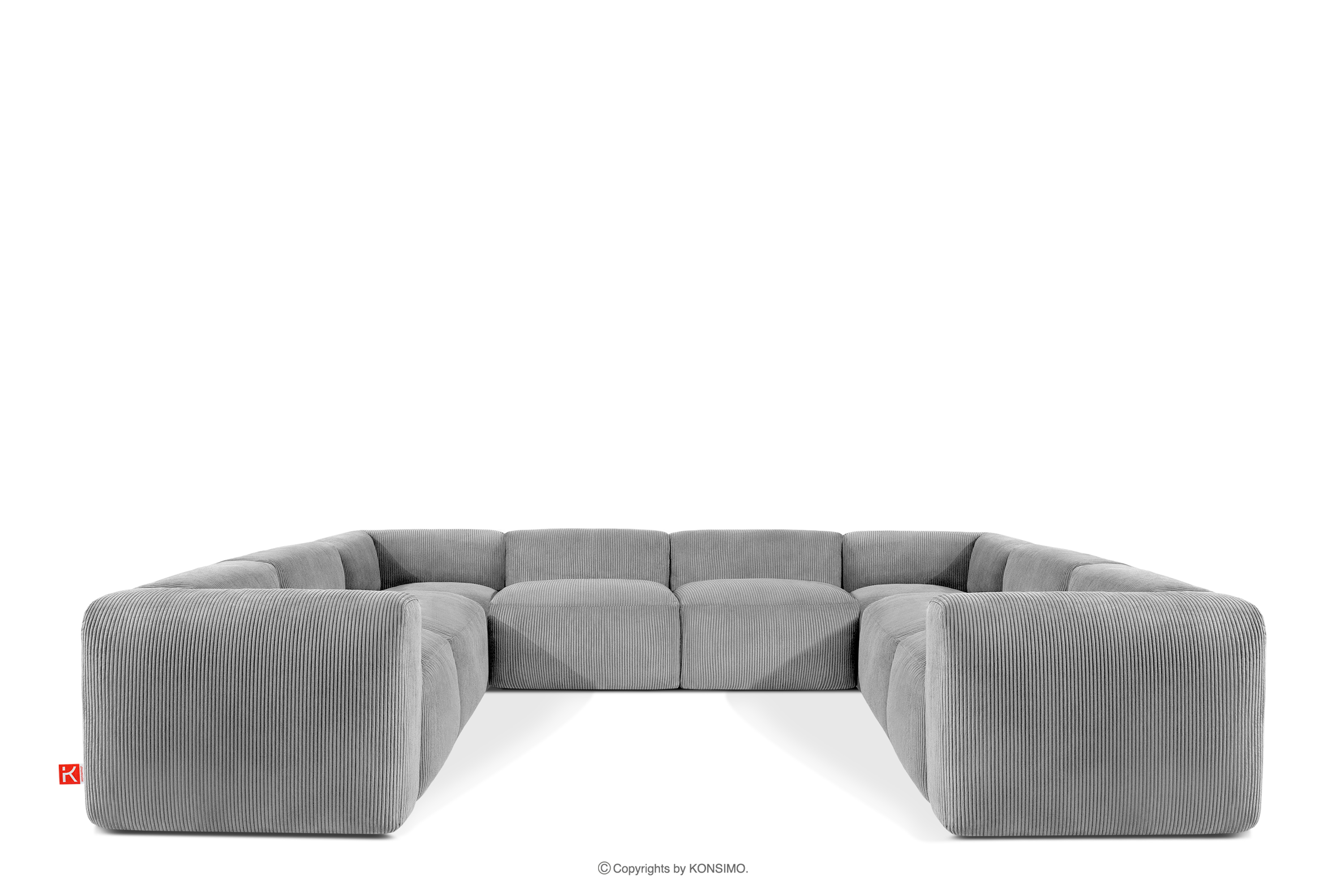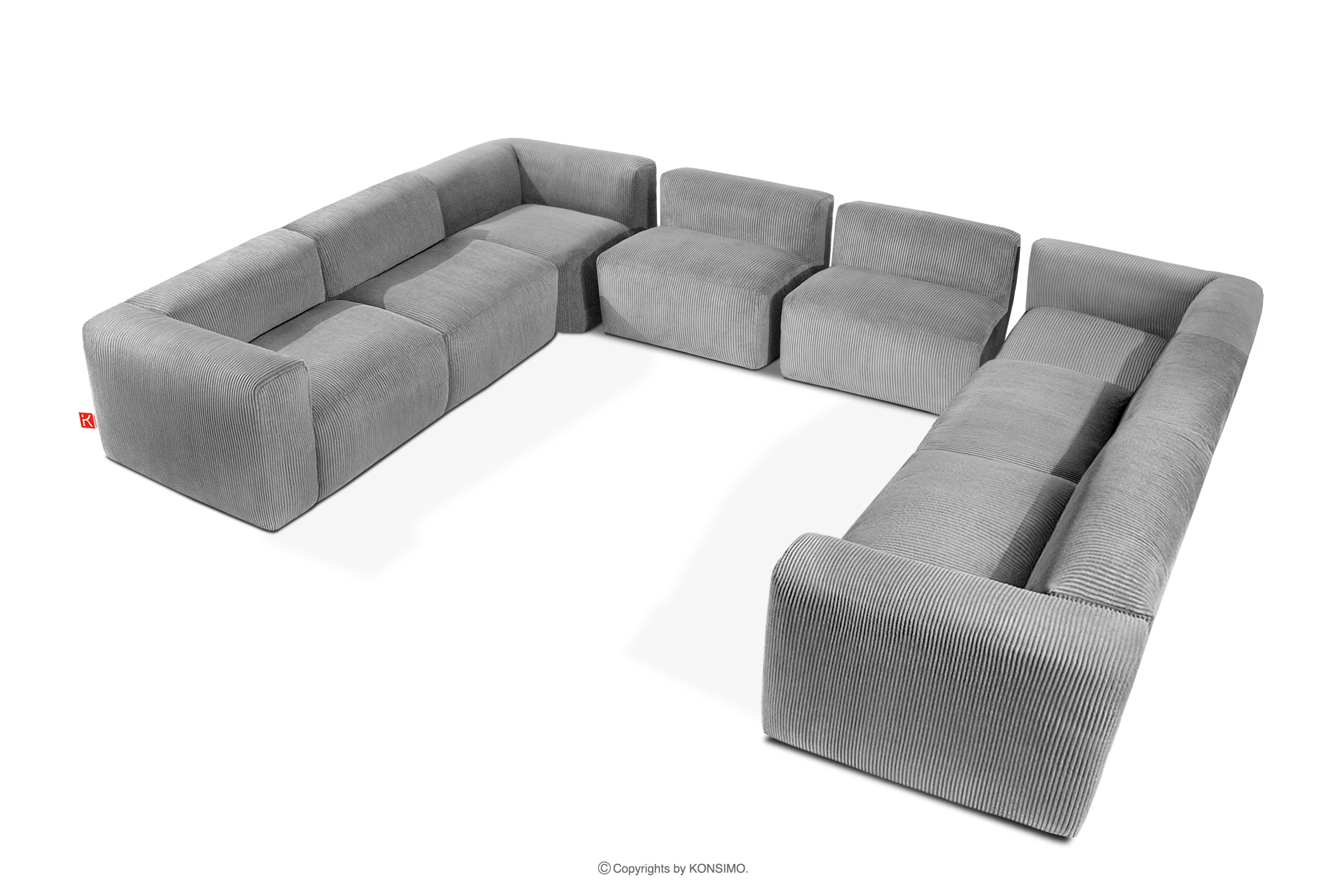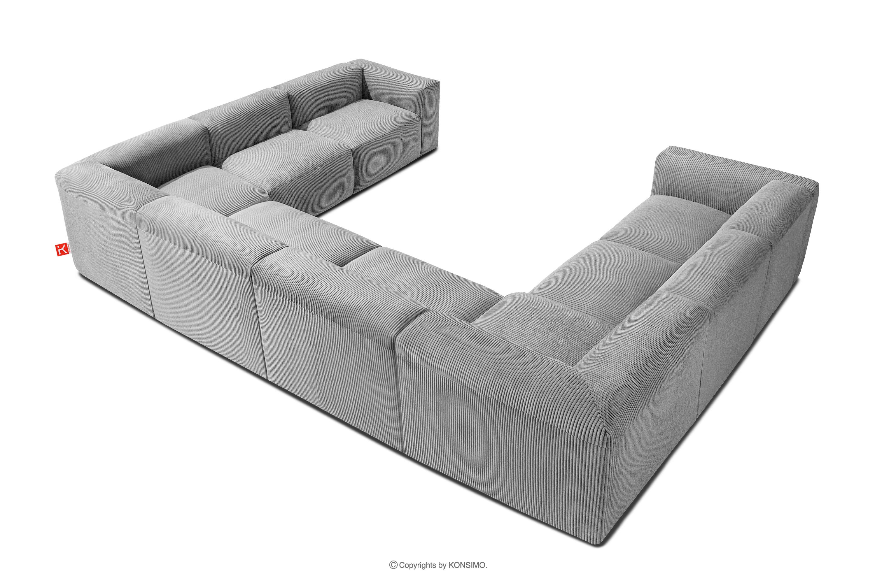 für das Produkt Großes Ecksofa in U-Form aus Kordstoff hellgrau