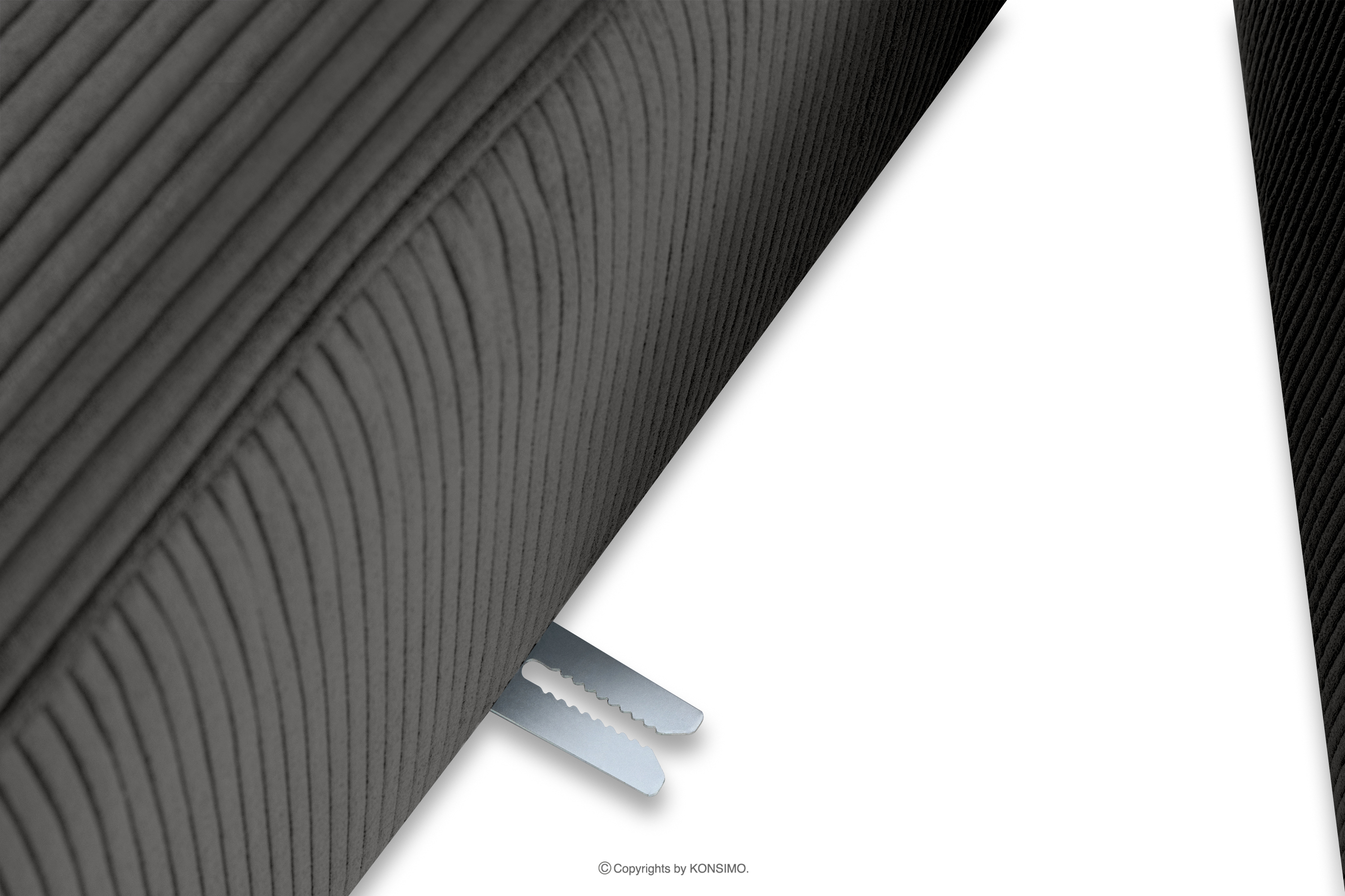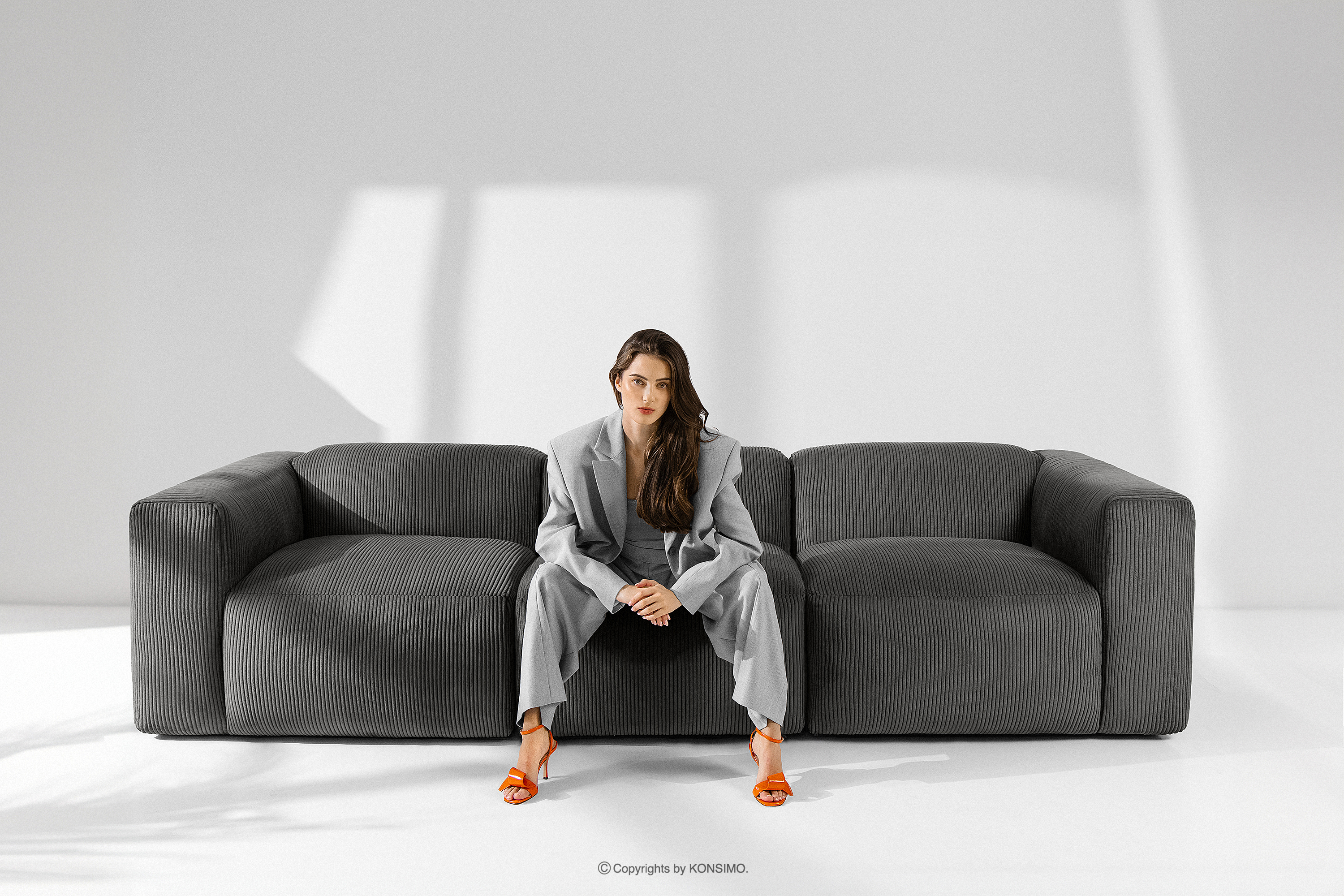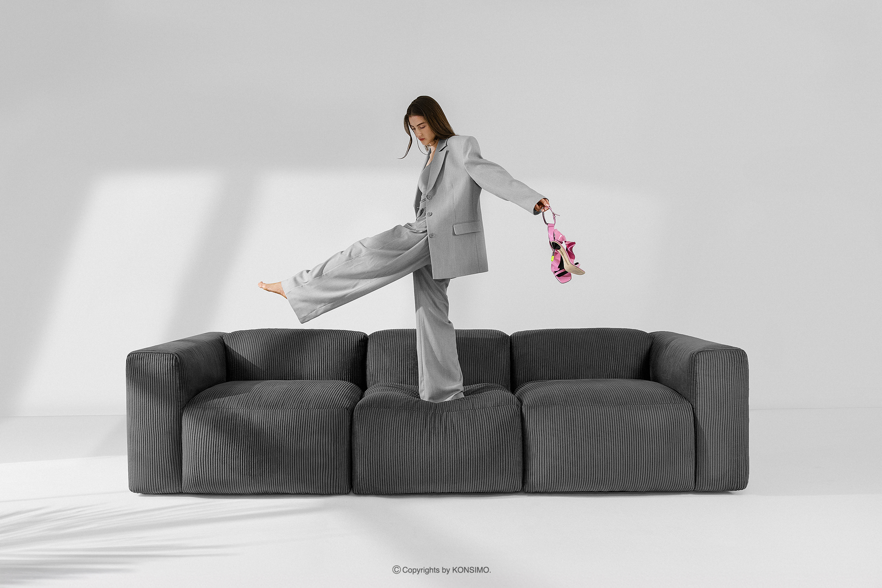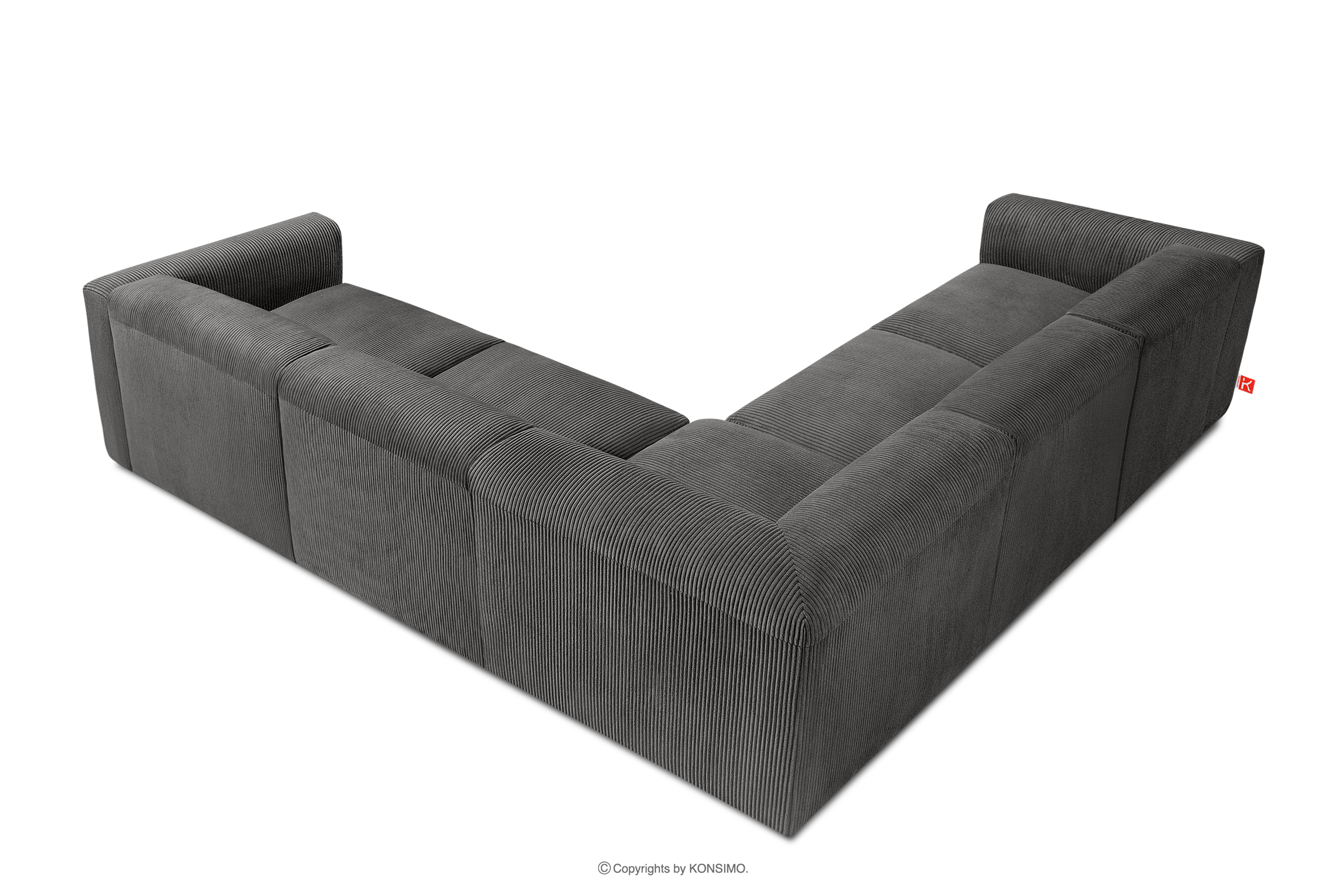 Das große modulare Ecksofa aus grauem Kordstoff wird zum Mittelpunkt eines jeden Wohnzimmers. Das Gestell ist aus langlebigem Kiefern- und Buchenholz gefertigt, das nicht nur für Stabilität, sondern auch für Ästhetik sorgt. Darüber hinaus erhöht die Verwendung von langlebigen Span- und Faserplatten die Stabilität und Haltbarkeit des Möbels. So bleiben sie auch bei intensiver Nutzung formstabil und widerstandsfähig gegen alle Herausforderungen des täglichen Lebens.