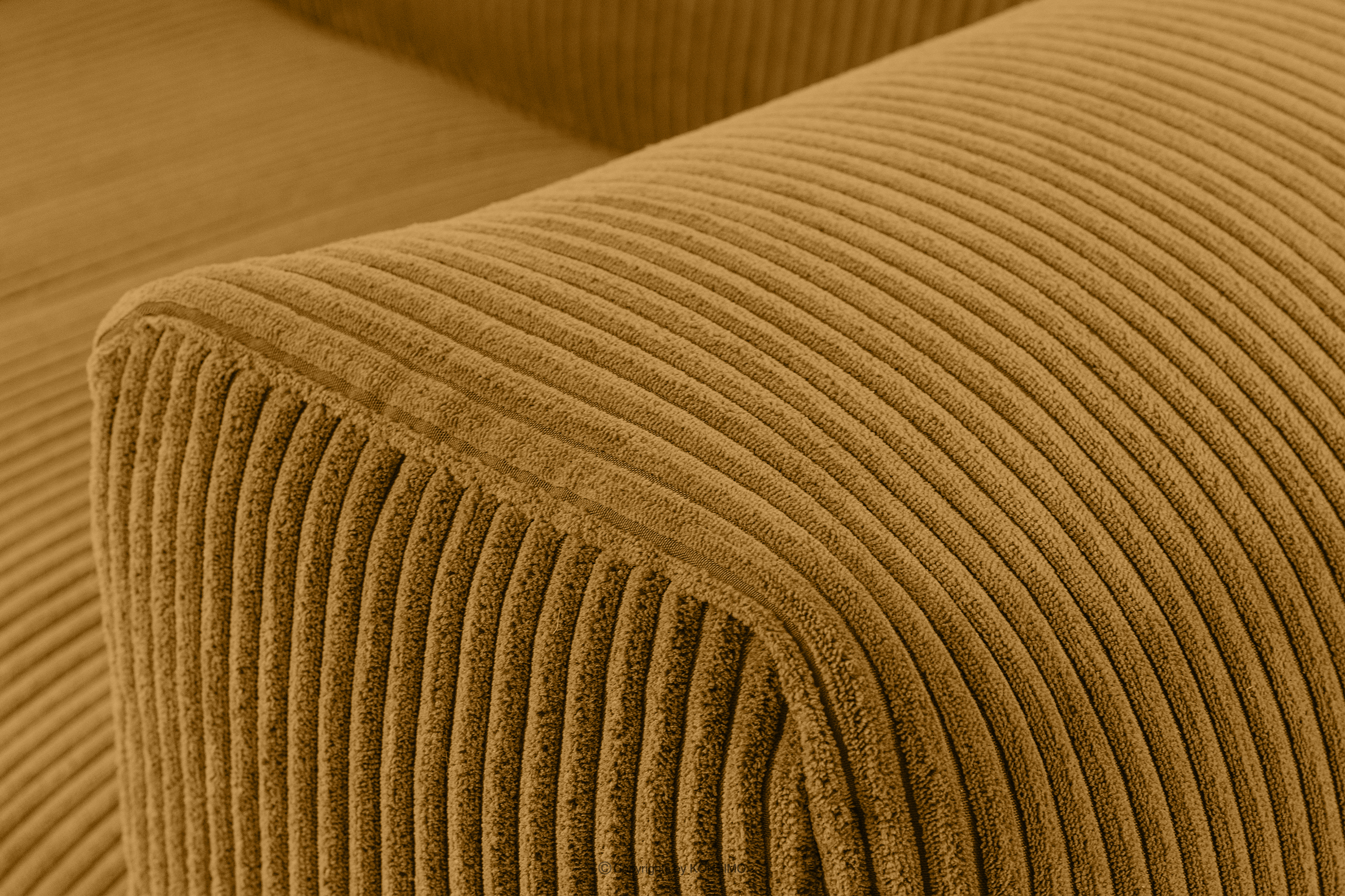 Das große modulare Ecksofa aus gelbem Kordstoff wird zum Mittelpunkt eines jeden Wohnzimmers. Das Gestell ist aus langlebigem Kiefern- und Buchenholz gefertigt, was nicht nur für Stabilität, sondern auch für Ästhetik sorgt. Darüber hinaus erhöht die Verwendung von langlebigen Span- und Faserplatten die Stabilität und Haltbarkeit des Möbels. So bleiben sie auch bei intensiver Nutzung formstabil und widerstandsfähig gegen alle Herausforderungen des täglichen Lebens.