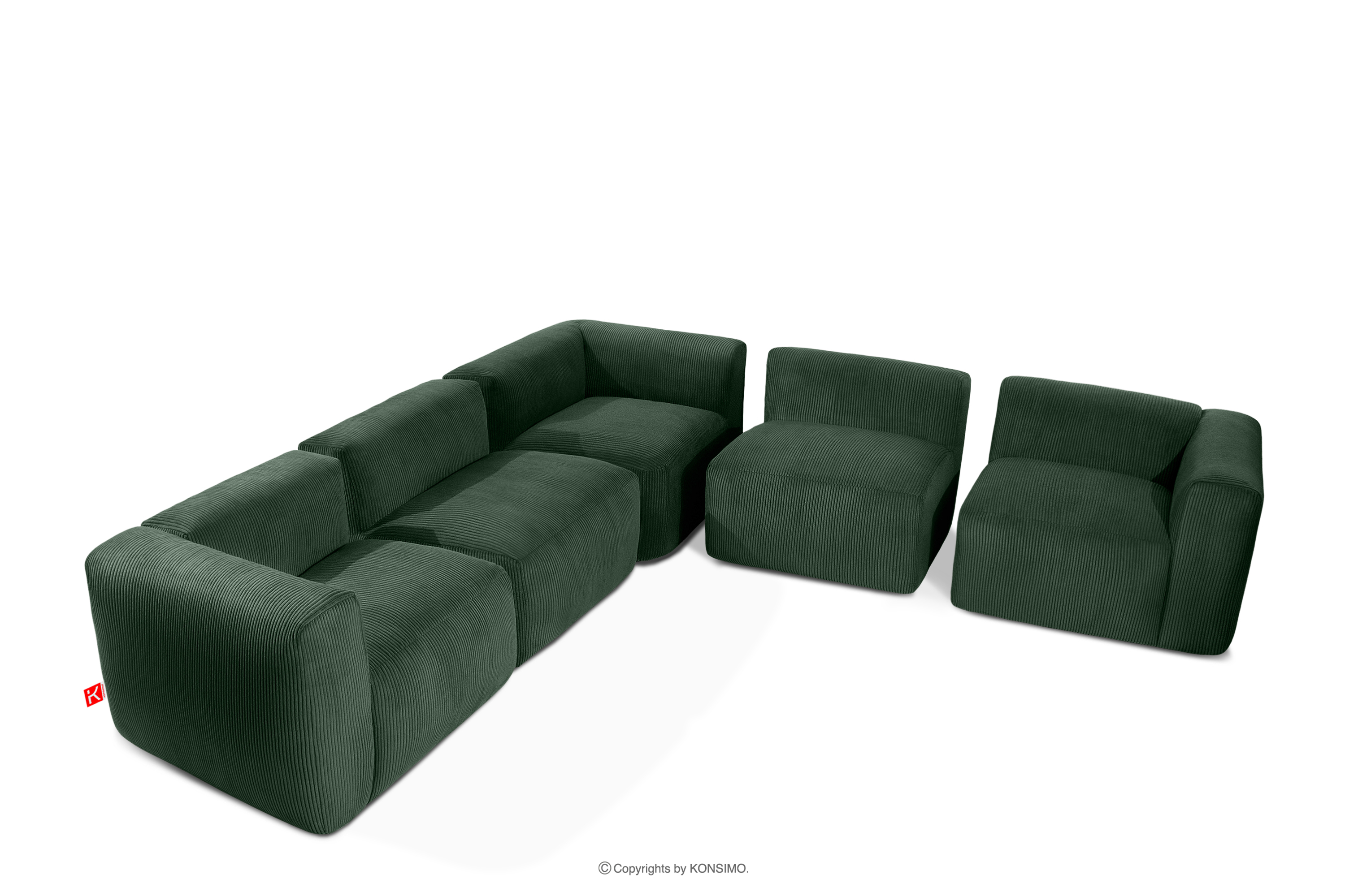 BUFFO Großes modulares Ecksofa aus Kordstoff dunkelgrün