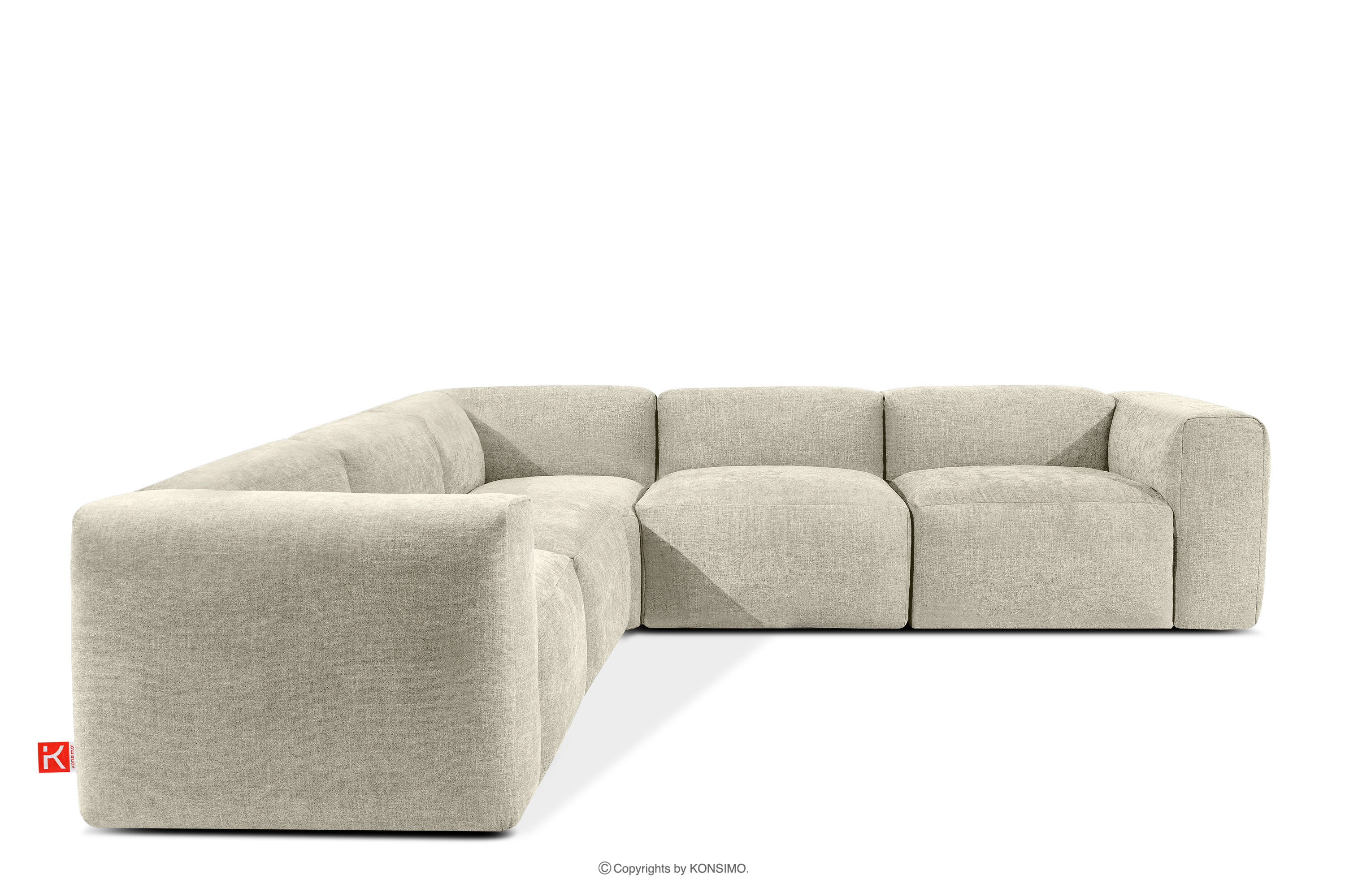 Das große modulare Ecksofa mit ecrufarbenem Gewebestoff wird zum Mittelpunkt jedes Wohnzimmers. Das Gestell ist aus langlebigem Kiefern- und Buchenholz gefertigt, das nicht nur für Stabilität, sondern auch für Ästhetik sorgt. Darüber hinaus erhöht die Verwendung von langlebigen Span- und Faserplatten die Stabilität und Haltbarkeit des Möbels. So bleiben sie auch bei intensiver Nutzung formstabil und widerstandsfähig gegen alle Herausforderungen des täglichen Lebens.